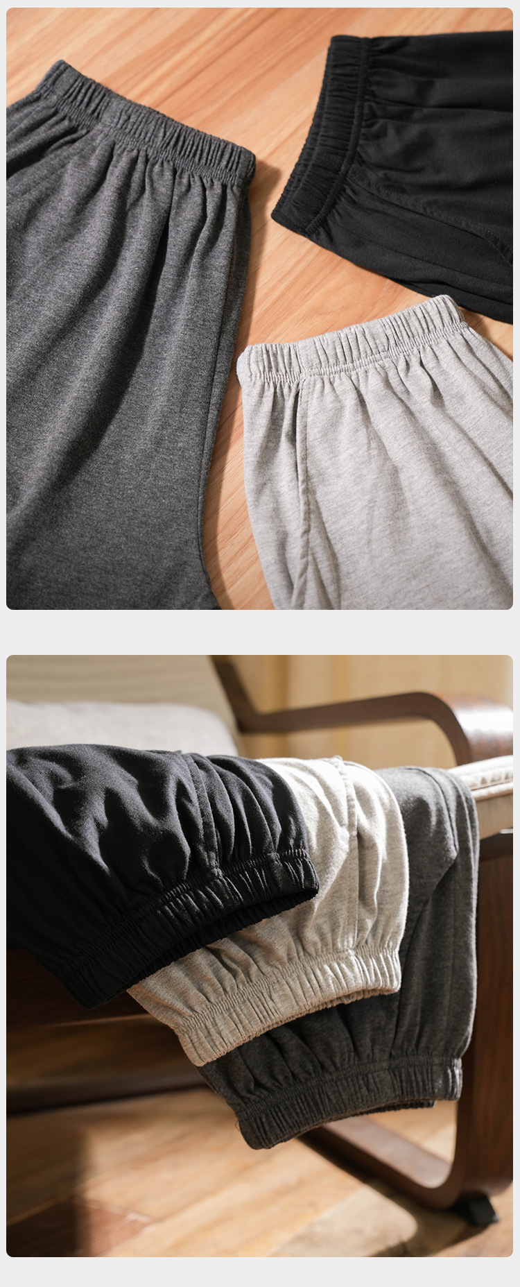 파자마 바지 남성용 여름 순면 반바지 얇은 느슨한 대형 솔리드 컬러 아웃웨어 면 대형 바지 홈 바지