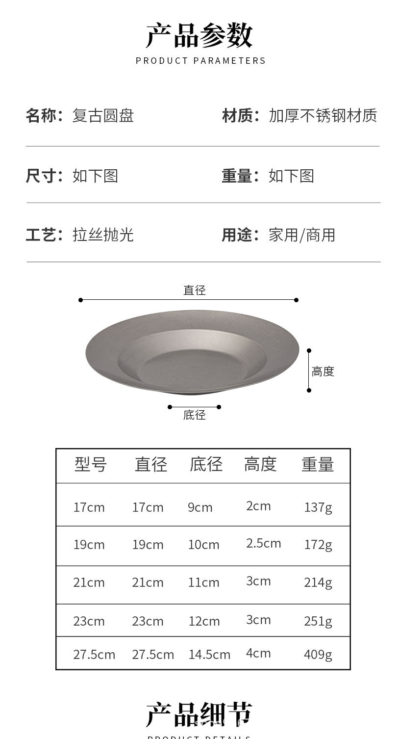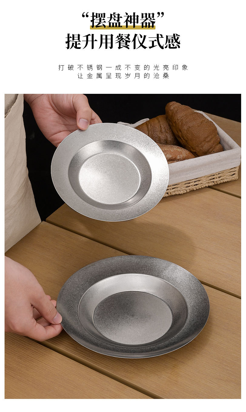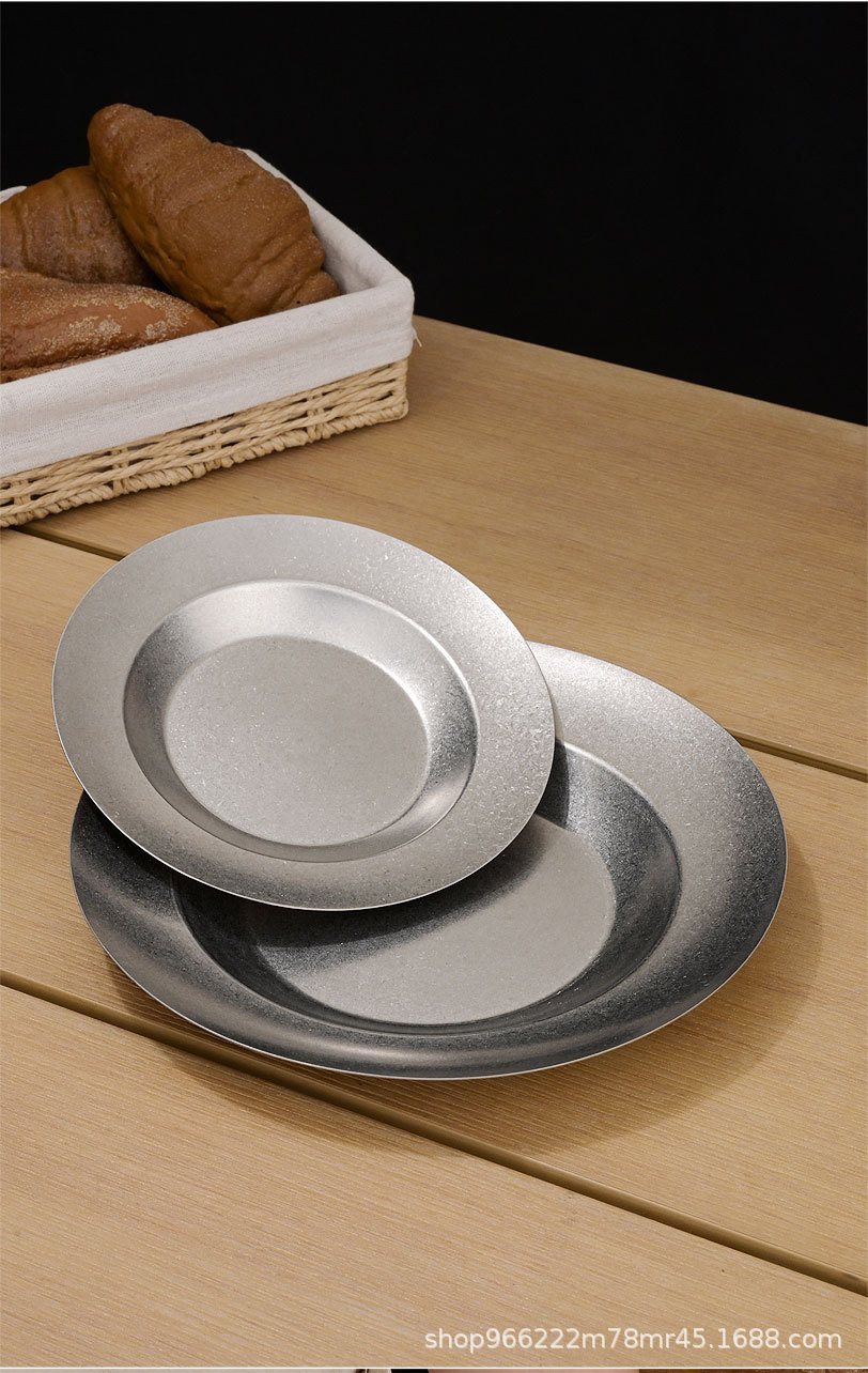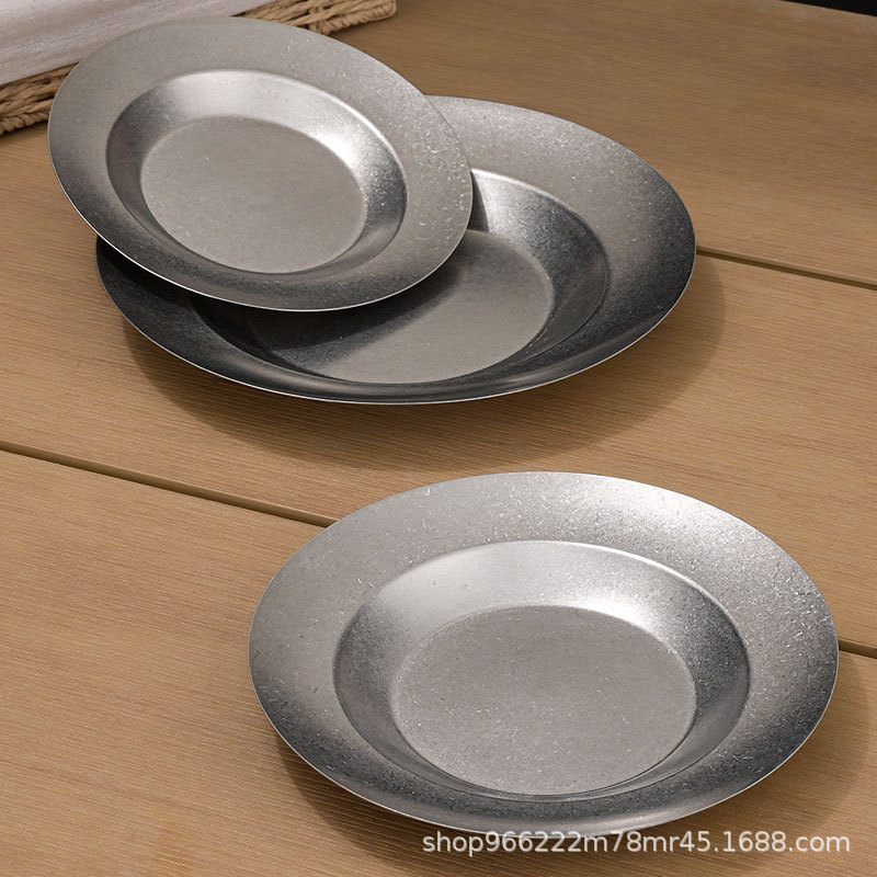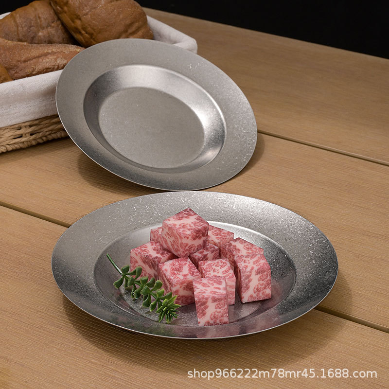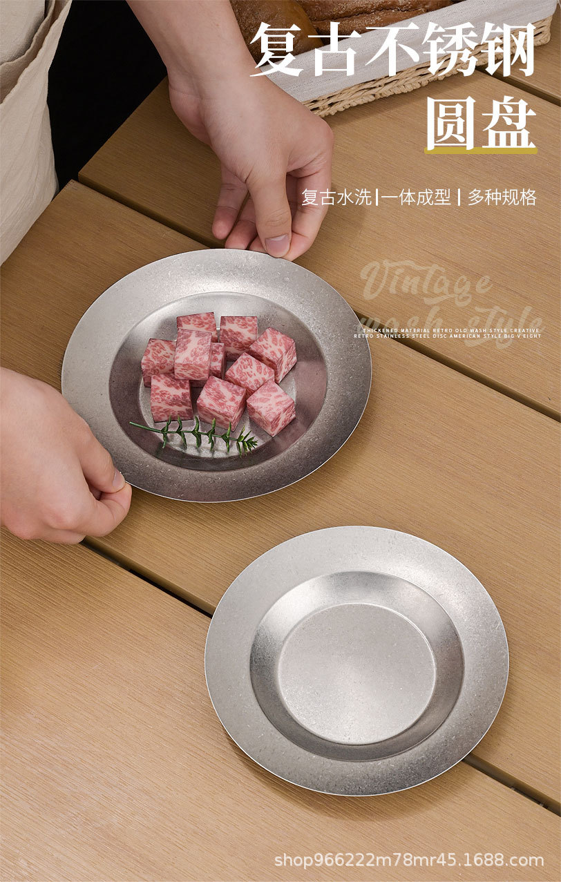 빈티지 스테인레스 스틸 디저트 플레이트 디너 플레이트 향수 식기 산업 스타일 파스타 플레이트 서양 접시 샐러드 플레이트 깊은 요리