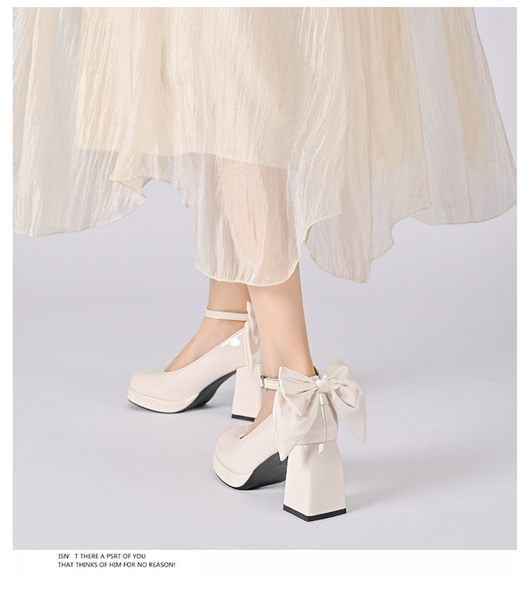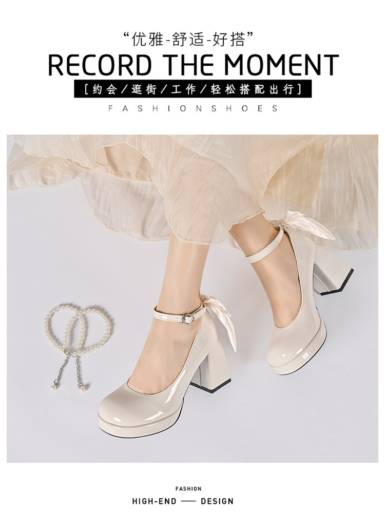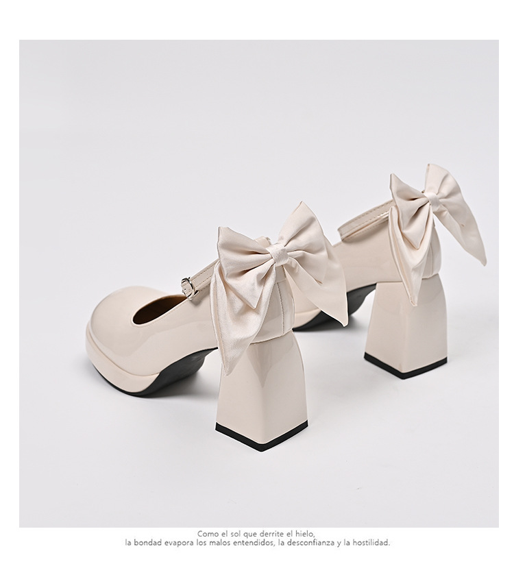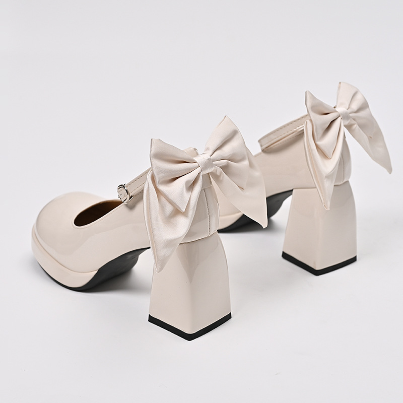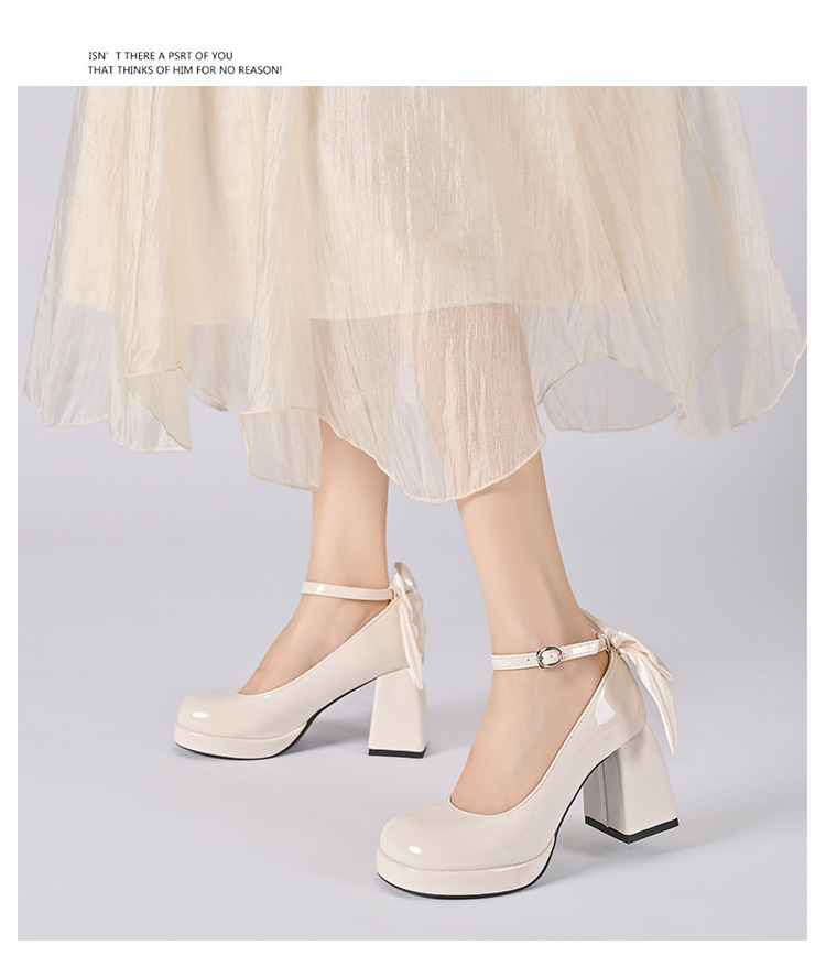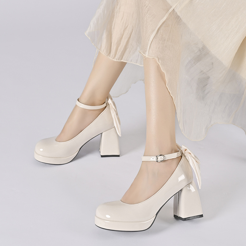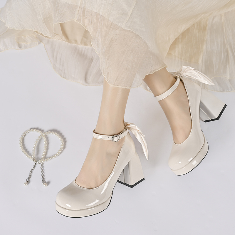 리본 메리제인 슈즈 여성용 라운드 토 2025jk 유니폼 가죽 구두 하이힐 레트로 싱글 슈즈 여성용 레트로 스타일
