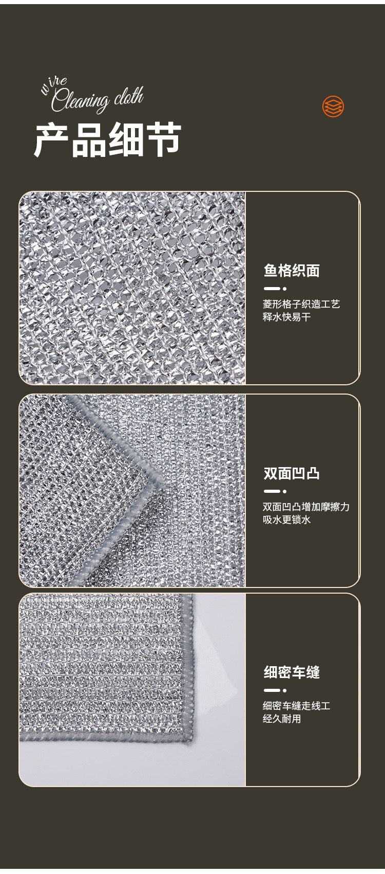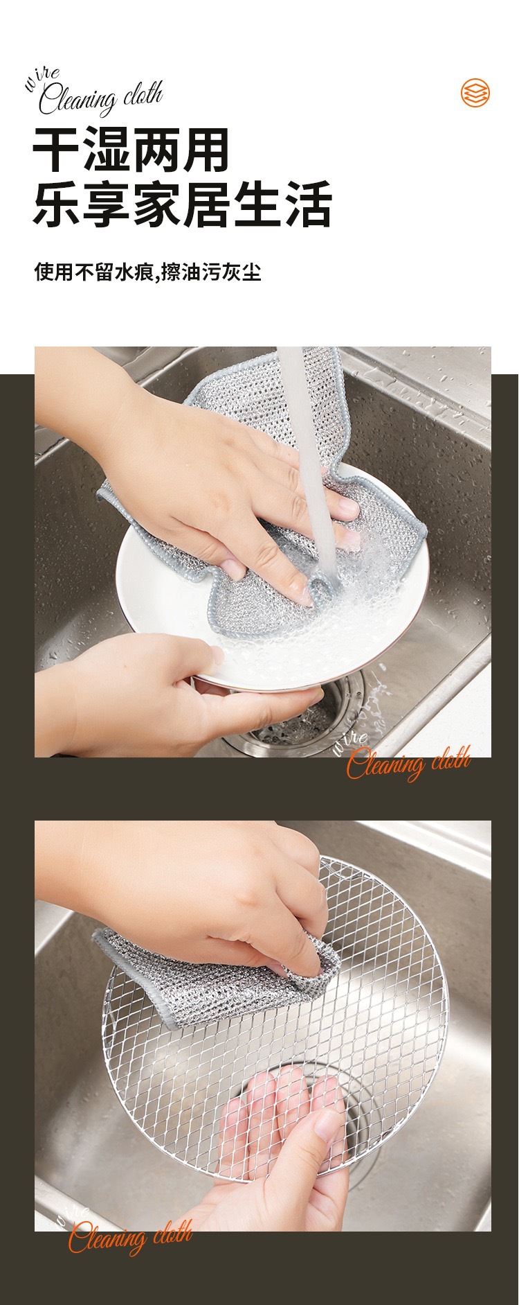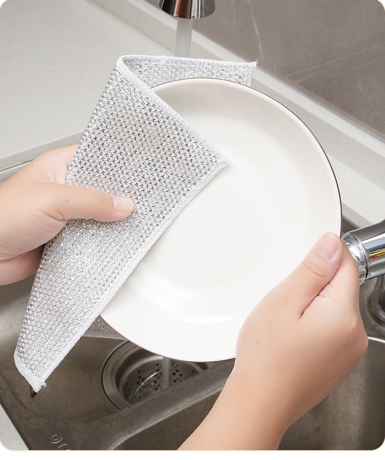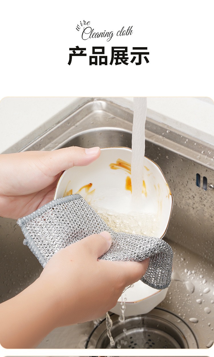 강철 공 부엌 비 기름 접시 타월 금속 와이어 청소 천 대신 양면 실버 와이어 접시 천 강철 와이어 천