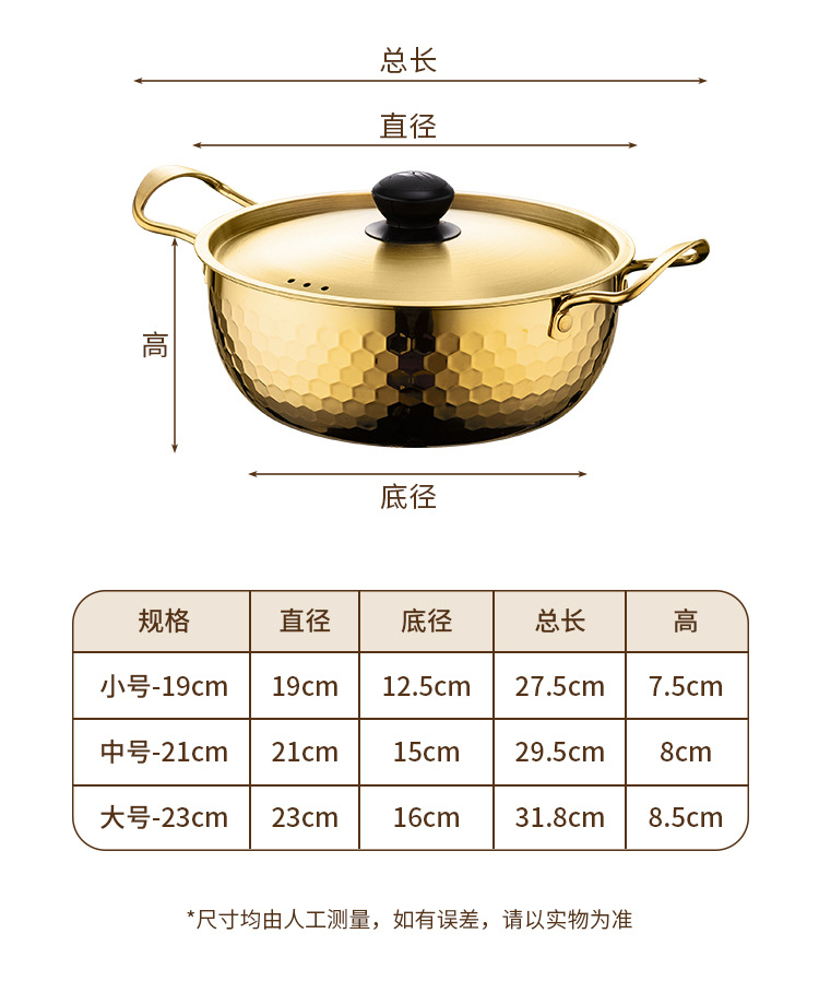 스테인레스 스틸라면 냄비 한국 망치 냄비 황금 국수 냄비 가정용 작은 냄비 멀티 사용 이중 귀 수프 냄비 뚜껑