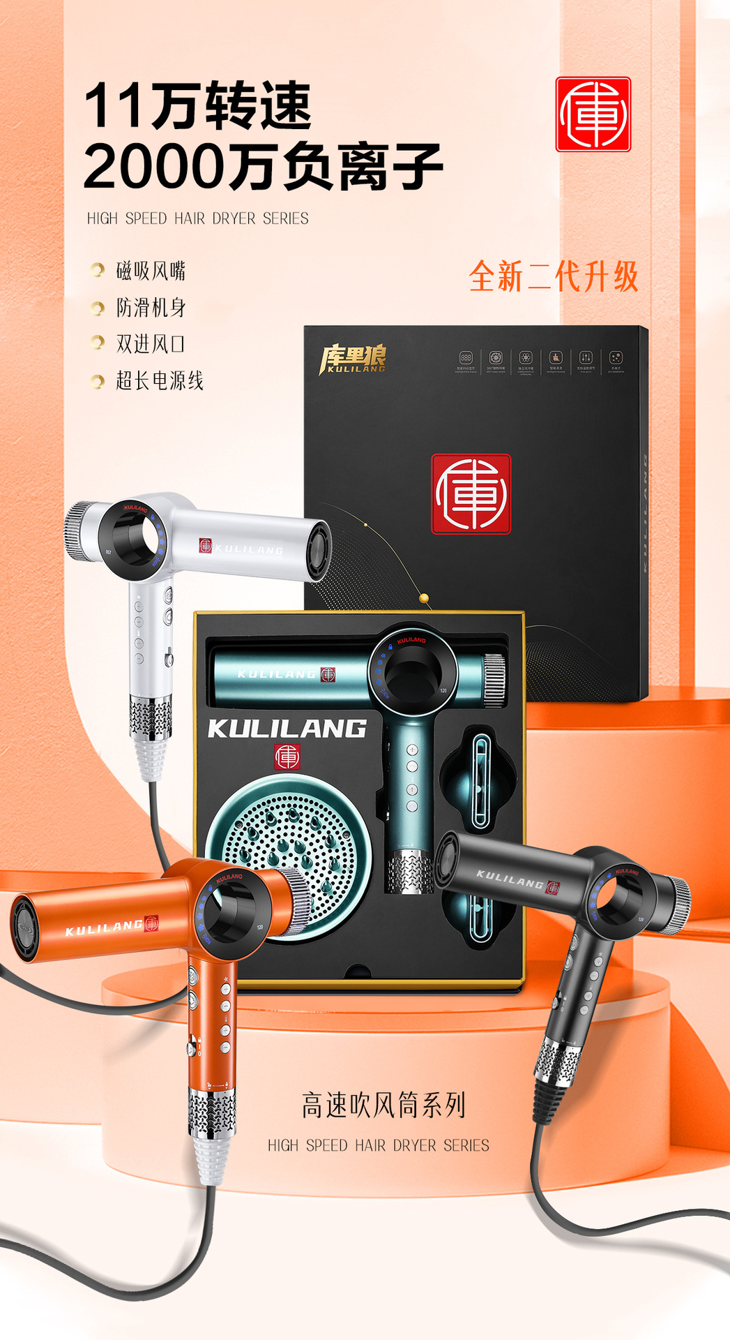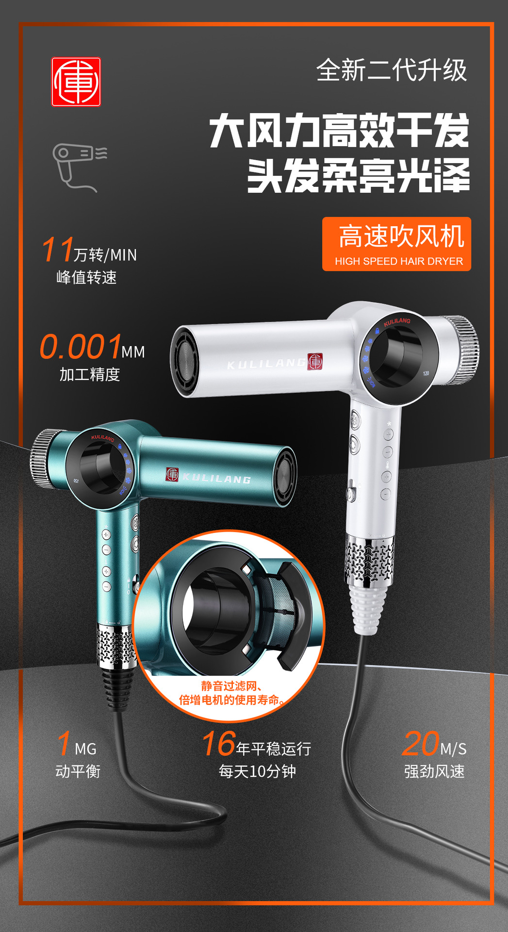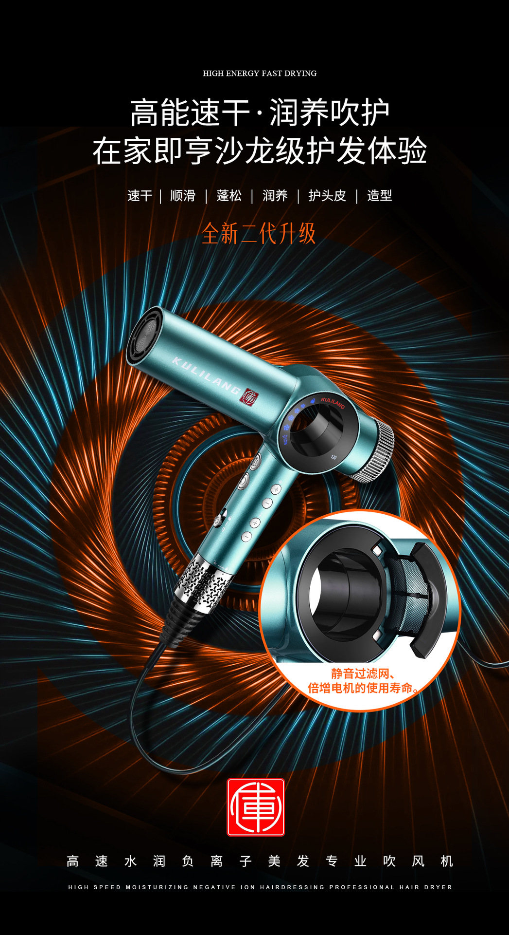 Curry Wolf 헤어 드라이어 이발소 미용실 헤어 스타일리스트 미용 특수 고속 음이온 전문 헤어 케어 헤어 드라이어