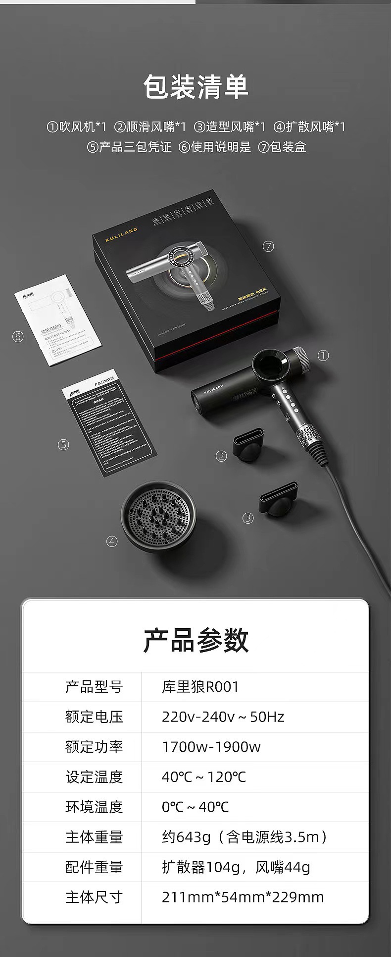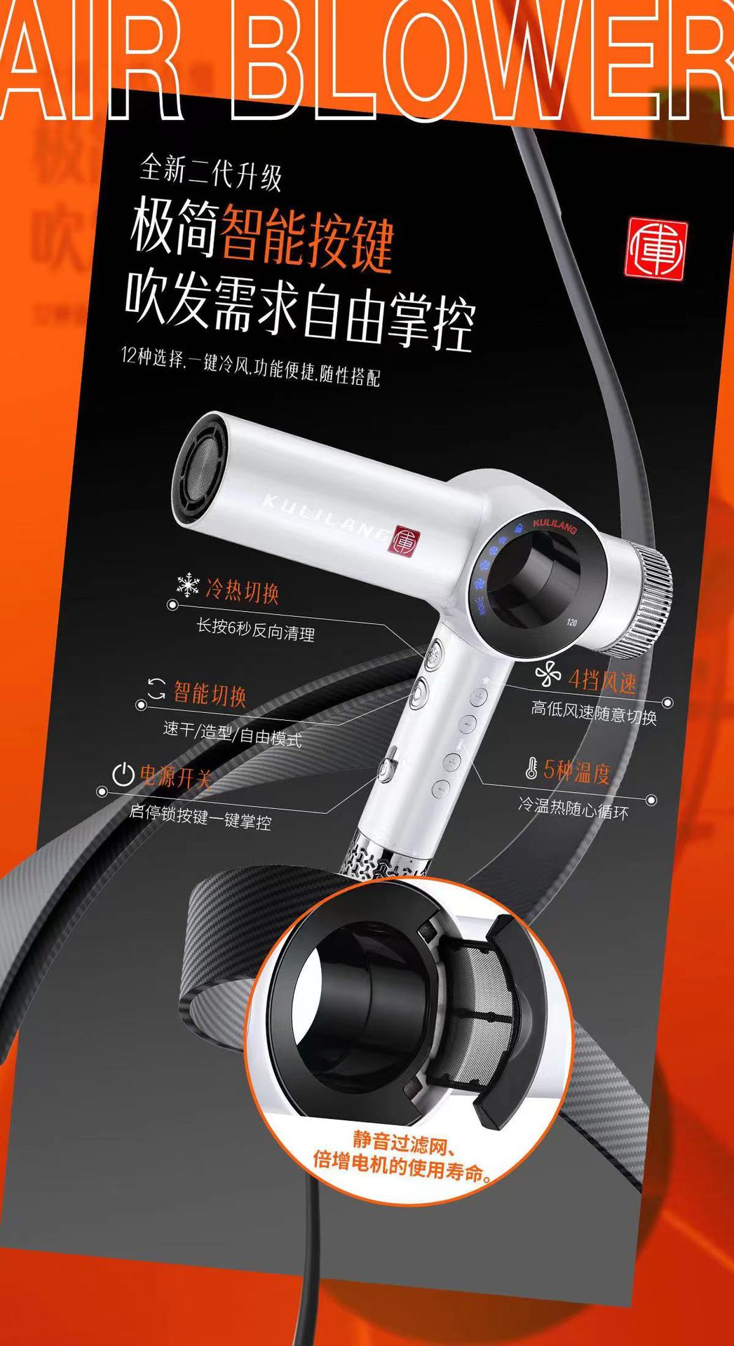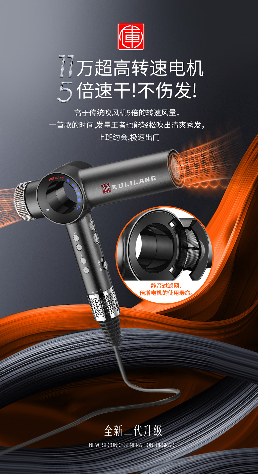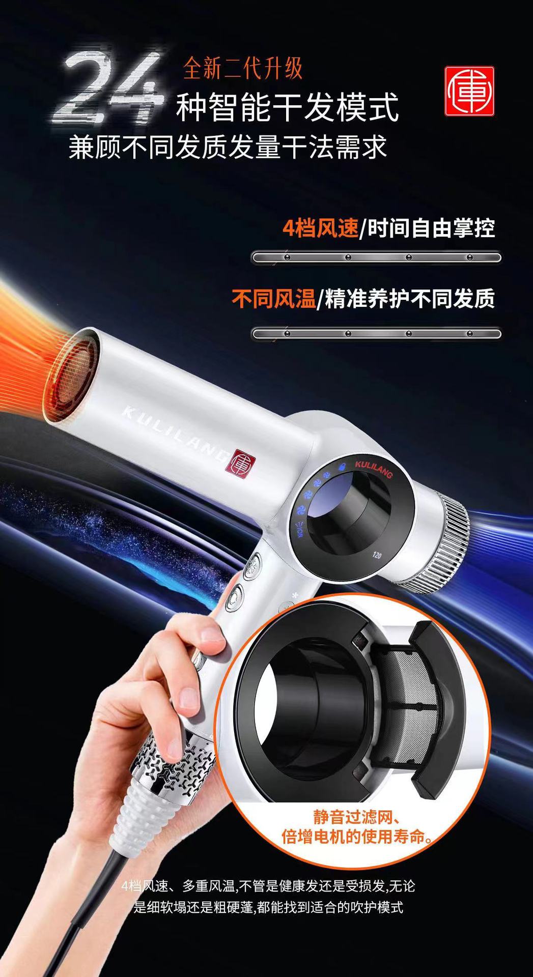 Curry Wolf 헤어 드라이어 이발소 미용실 헤어 스타일리스트 미용 특수 고속 음이온 전문 헤어 케어 헤어 드라이어