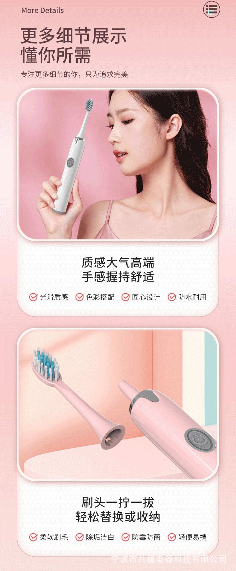 배터리 모델 [핑크] 1 기어 3 브러시 헤드