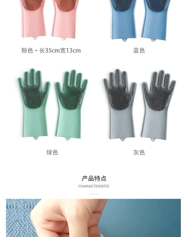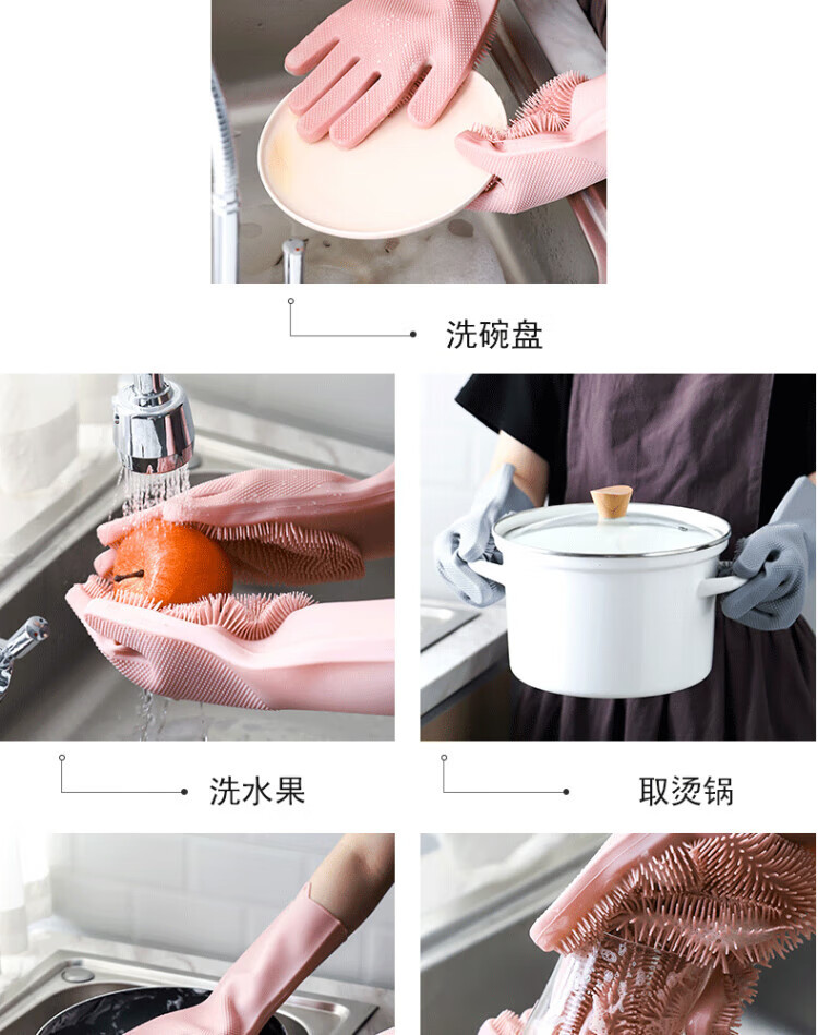 실리콘 장갑 주방 내구성 방수 장갑 브러시 보울 아티팩트 오염 제거 청소 미끄럼 방지 다기능 장갑 도매
