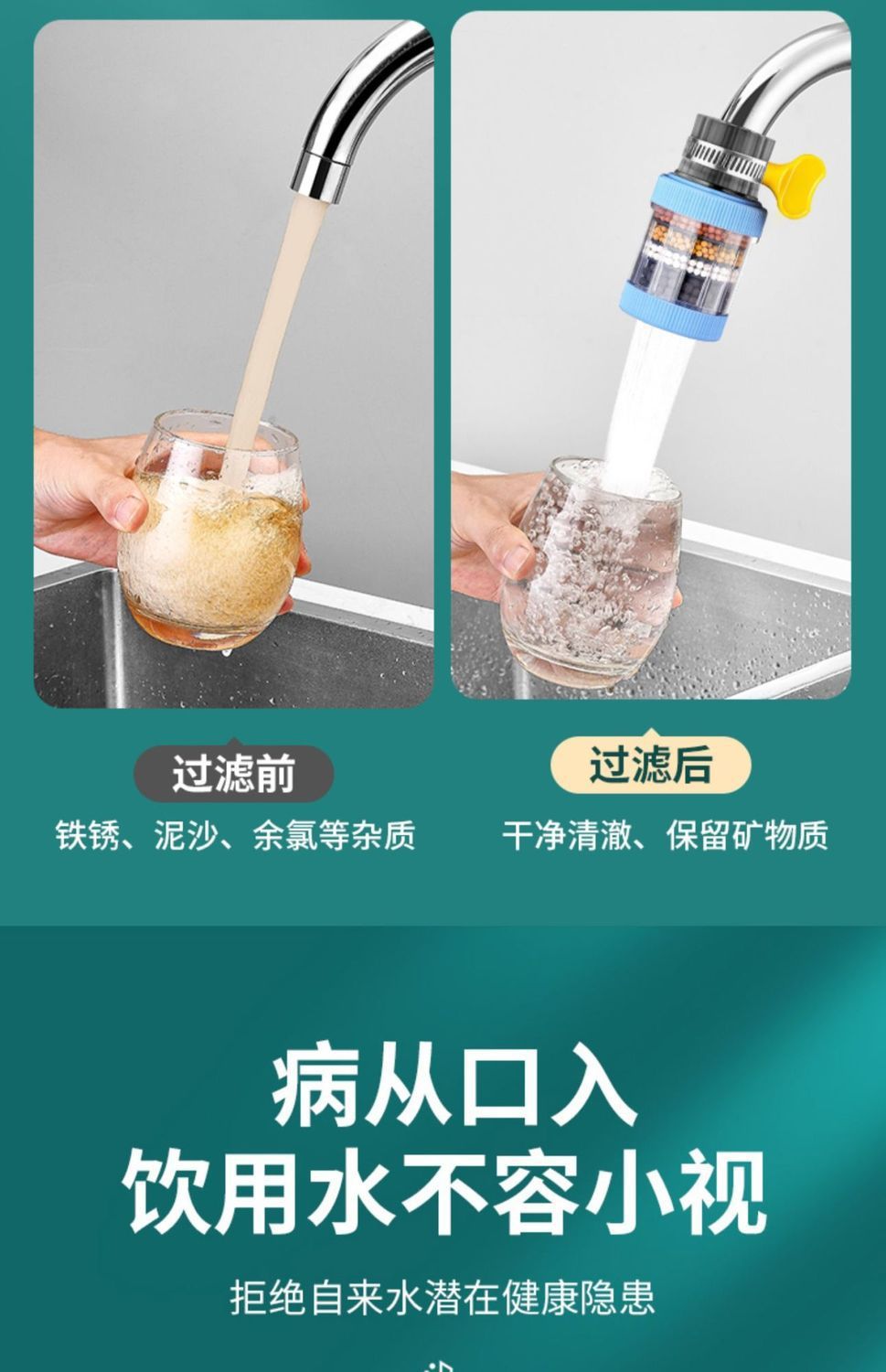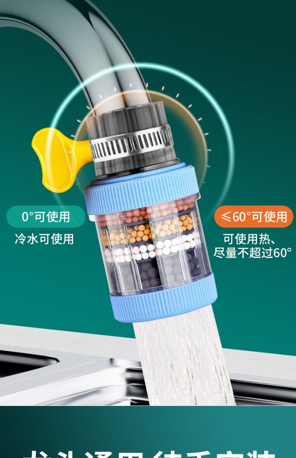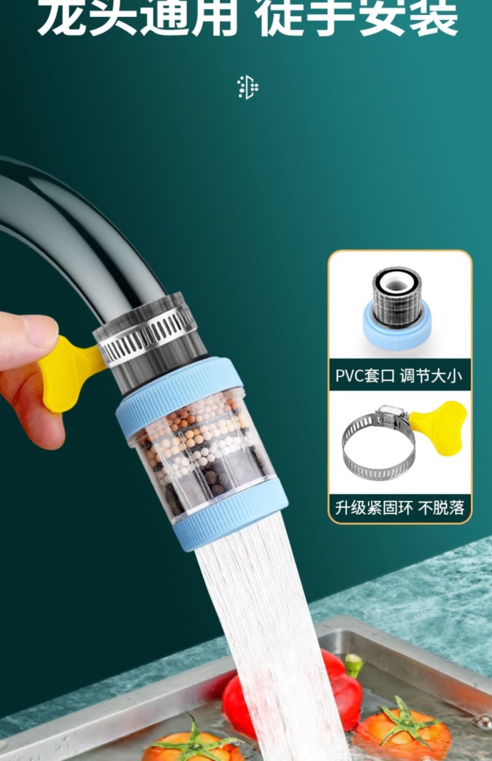 수도꼭지 필터형 정수기, 범용 탈부착식 인터페이스, 수돗물 필터, 필터 노즐, 주방용 물 튀김 방지 샤워기
