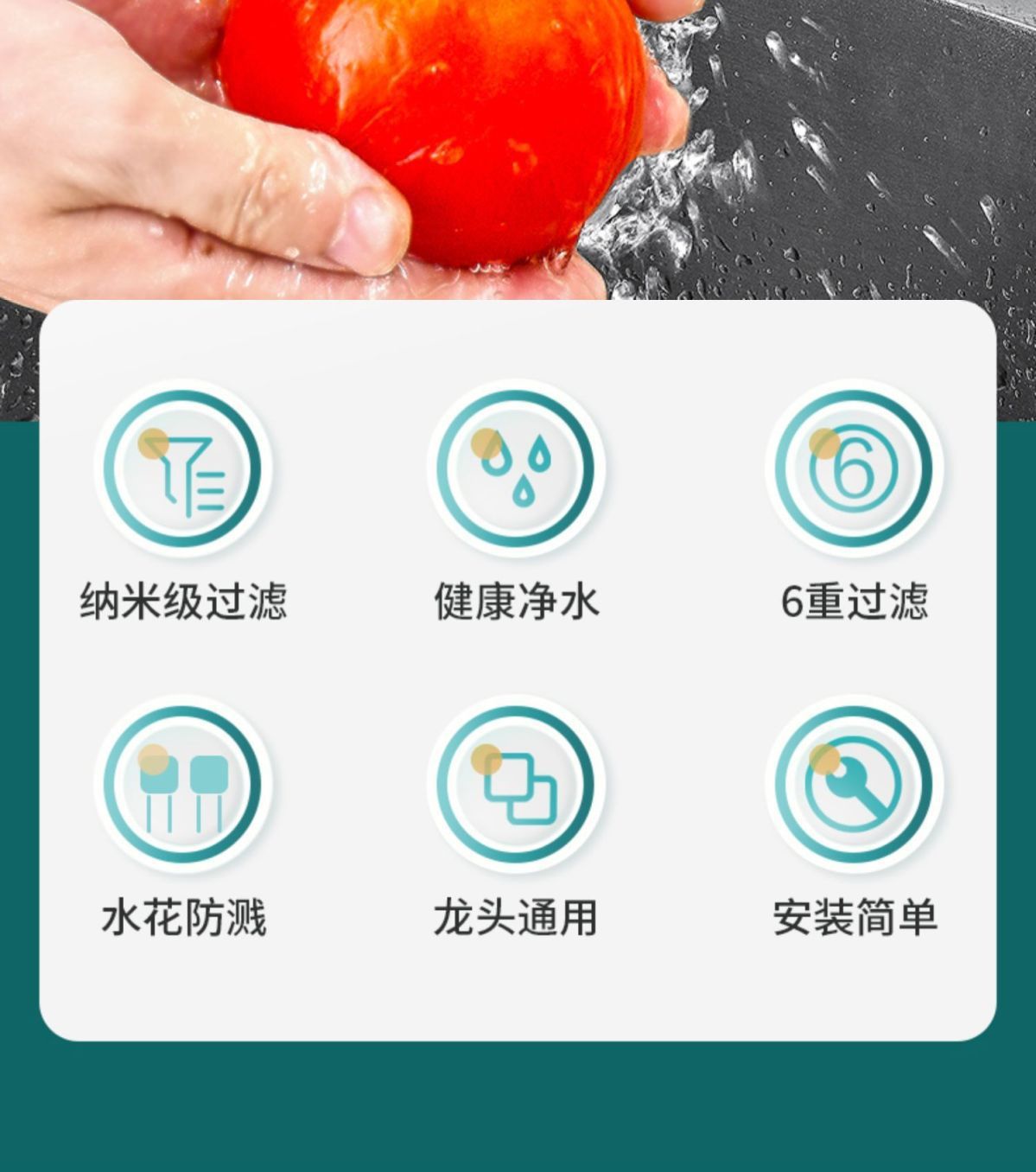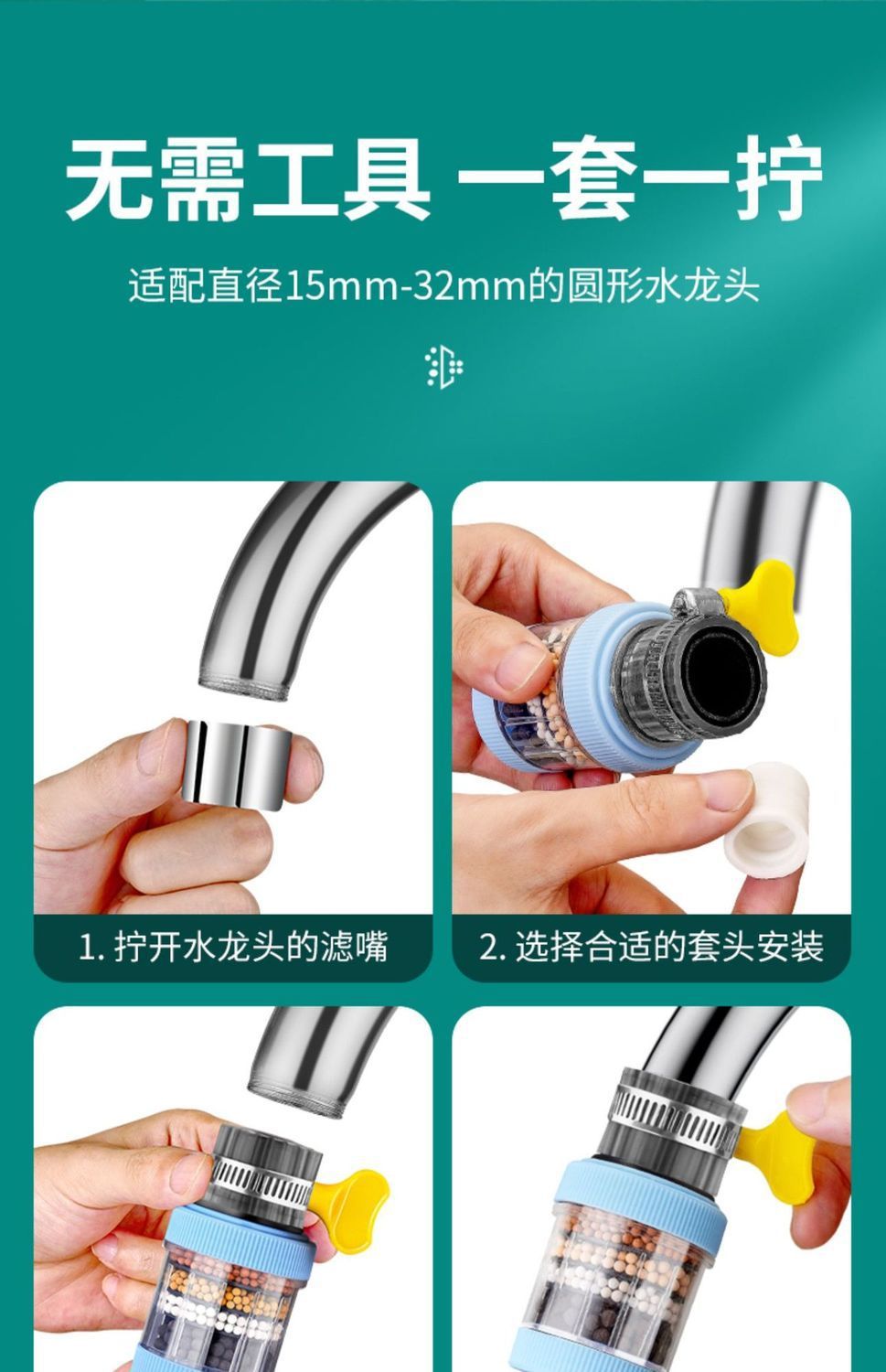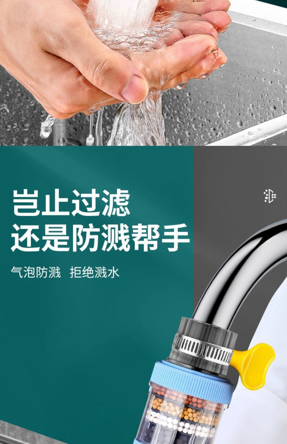수도꼭지 필터형 정수기, 범용 탈부착식 인터페이스, 수돗물 필터, 필터 노즐, 주방용 물 튀김 방지 샤워기