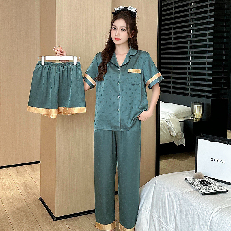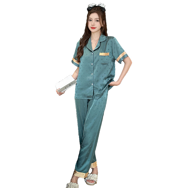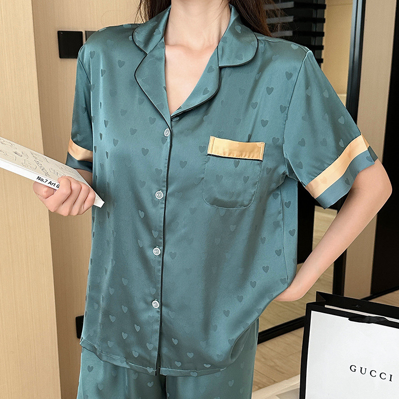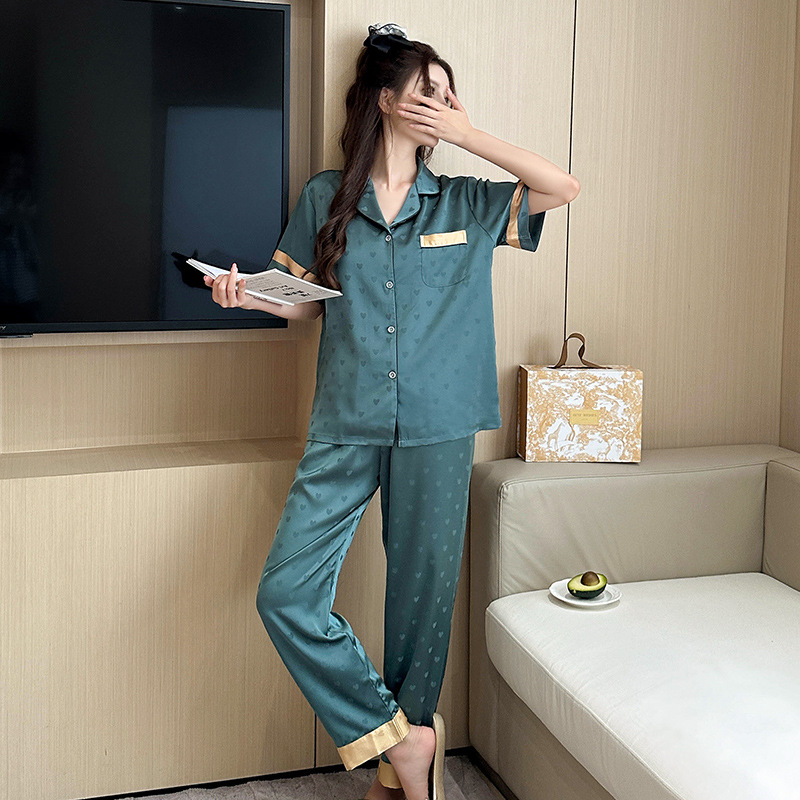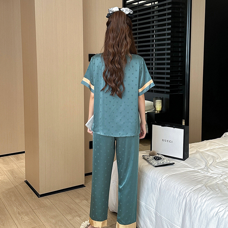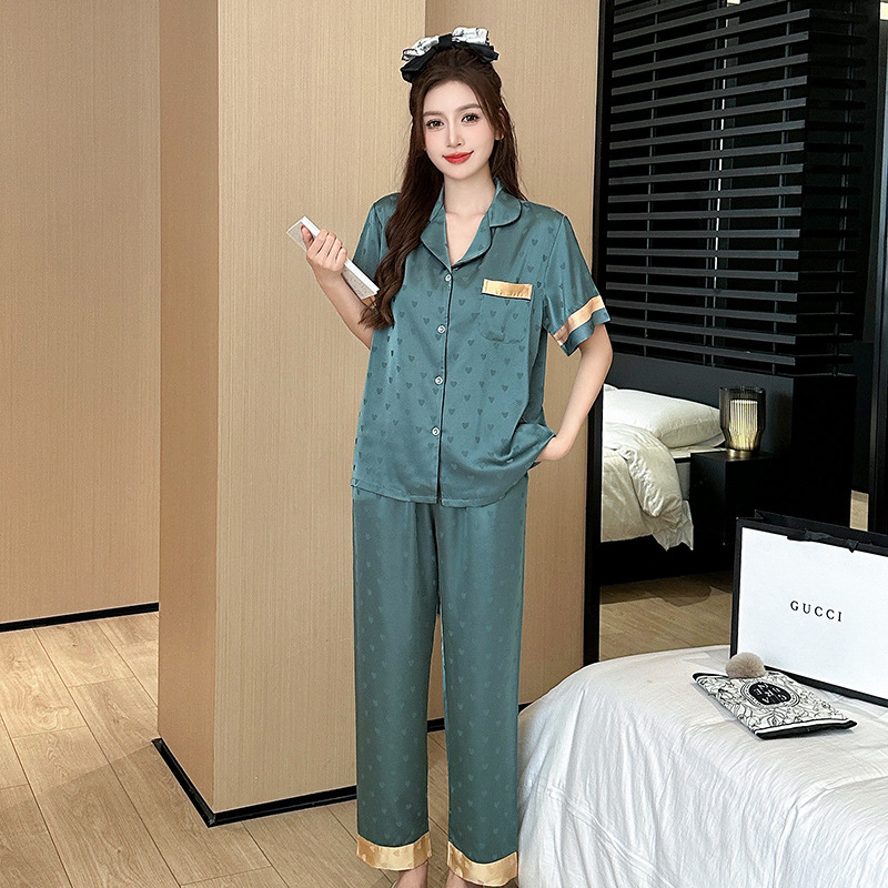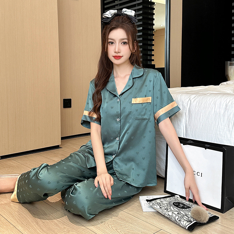 아이스 실크 잠옷 여성의 봄과 가을 얇은 긴팔 세트 2024 새로운 귀여운 봄과 여름 실크 같은 의상 홈 옷