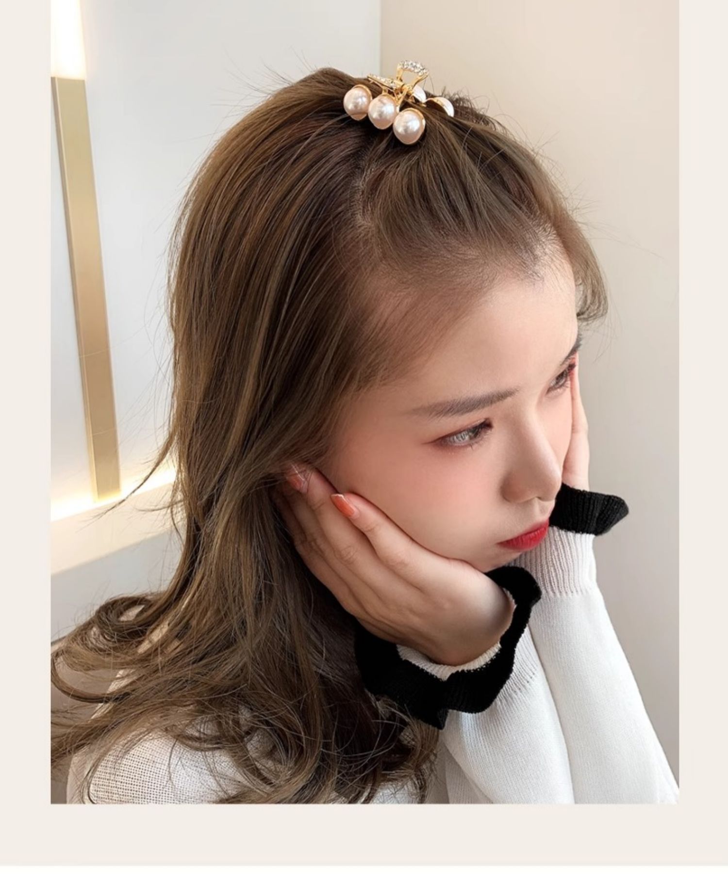 머리 상어 클립 헤어 액세서리 뒤에 반쯤 묶인 머리 금속 작은 측면 깨진 헤어 클립 헤어 클립 헤어 클립 헤어 클립 모조 진주 질감 기질