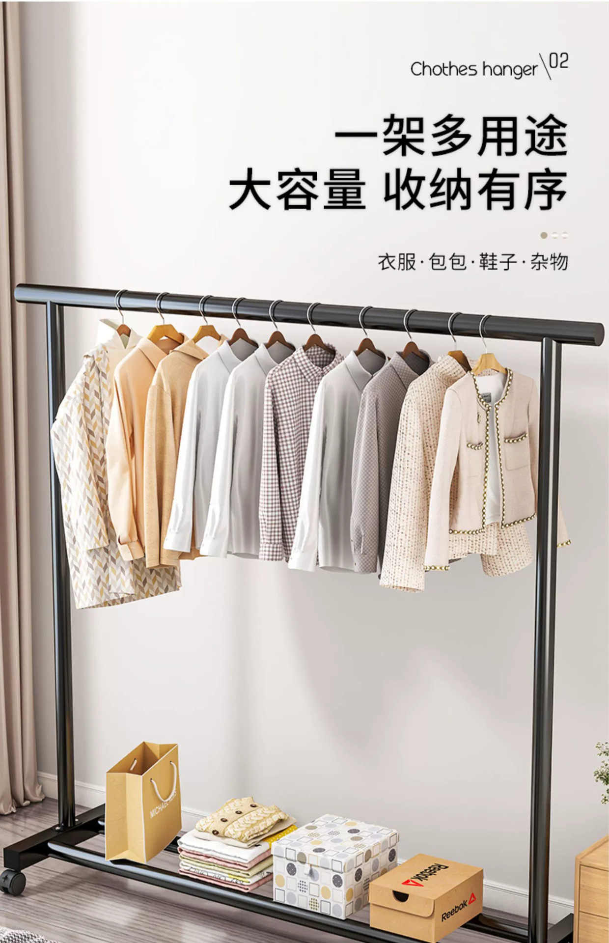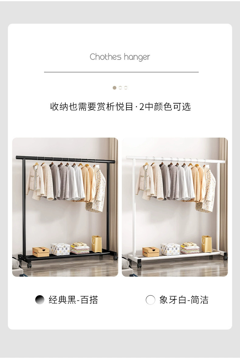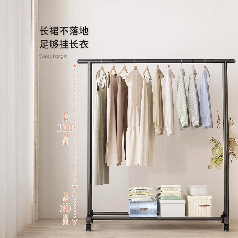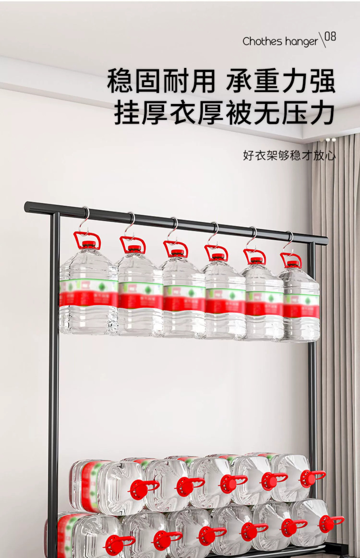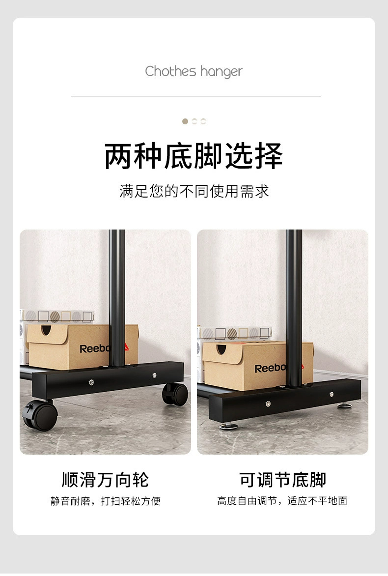 가정용 침실 발코니용 금속 옷걸이, 두꺼운 이동식 바닥형 옷걸이, 이중 봉