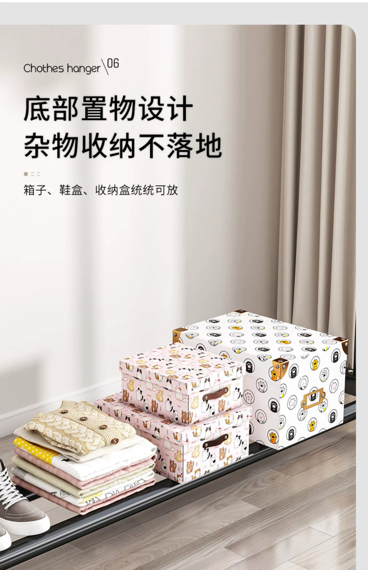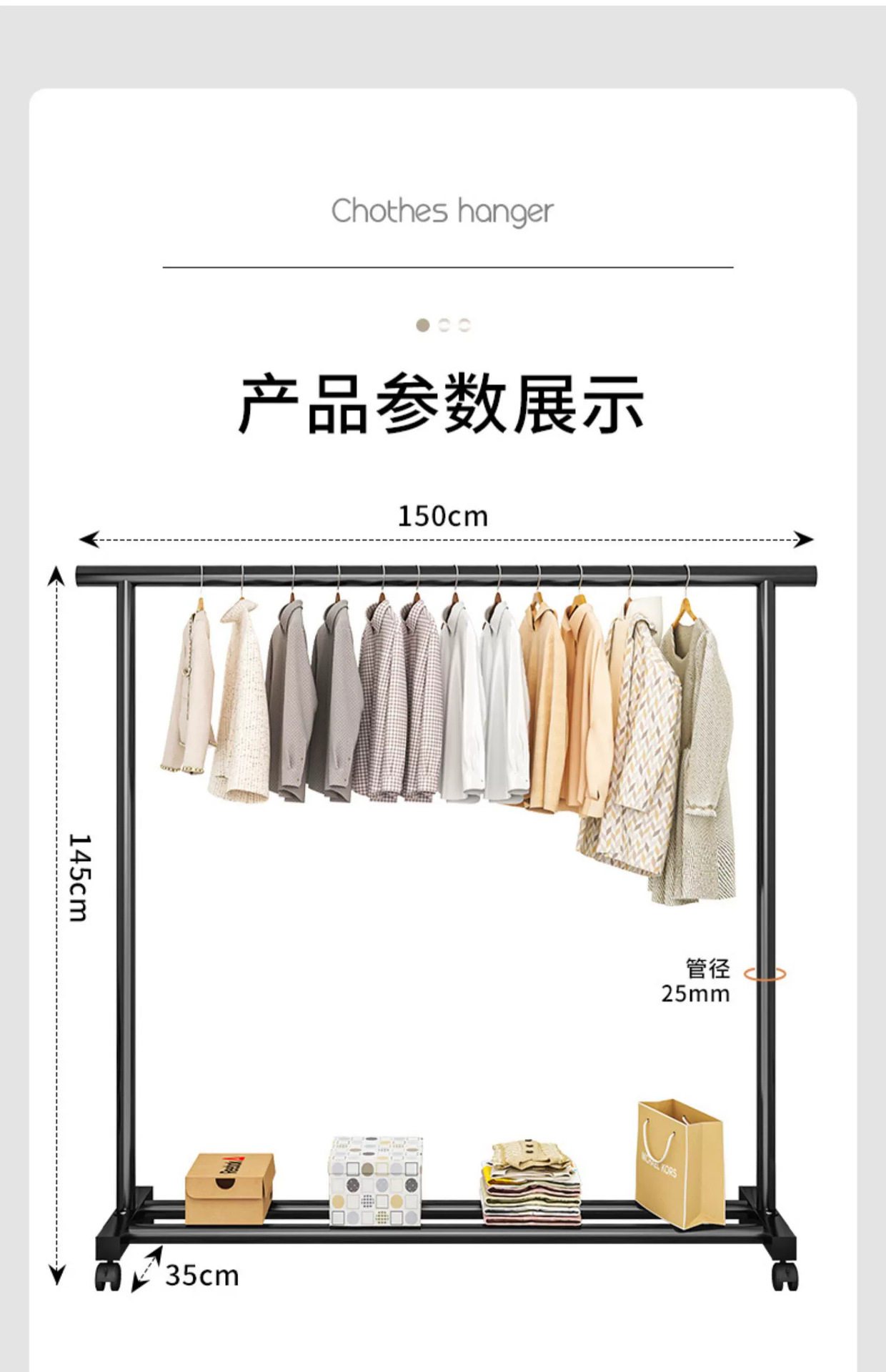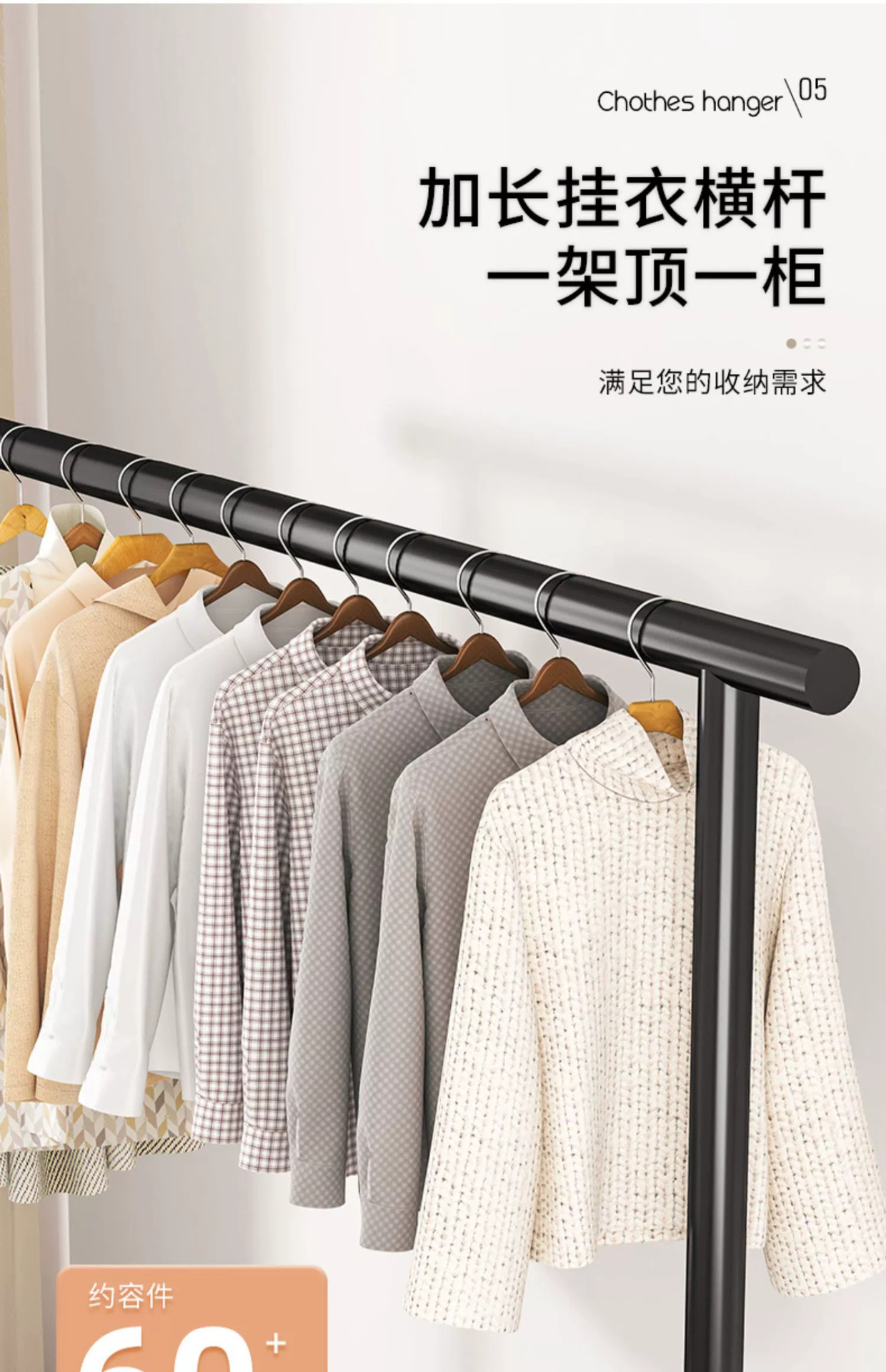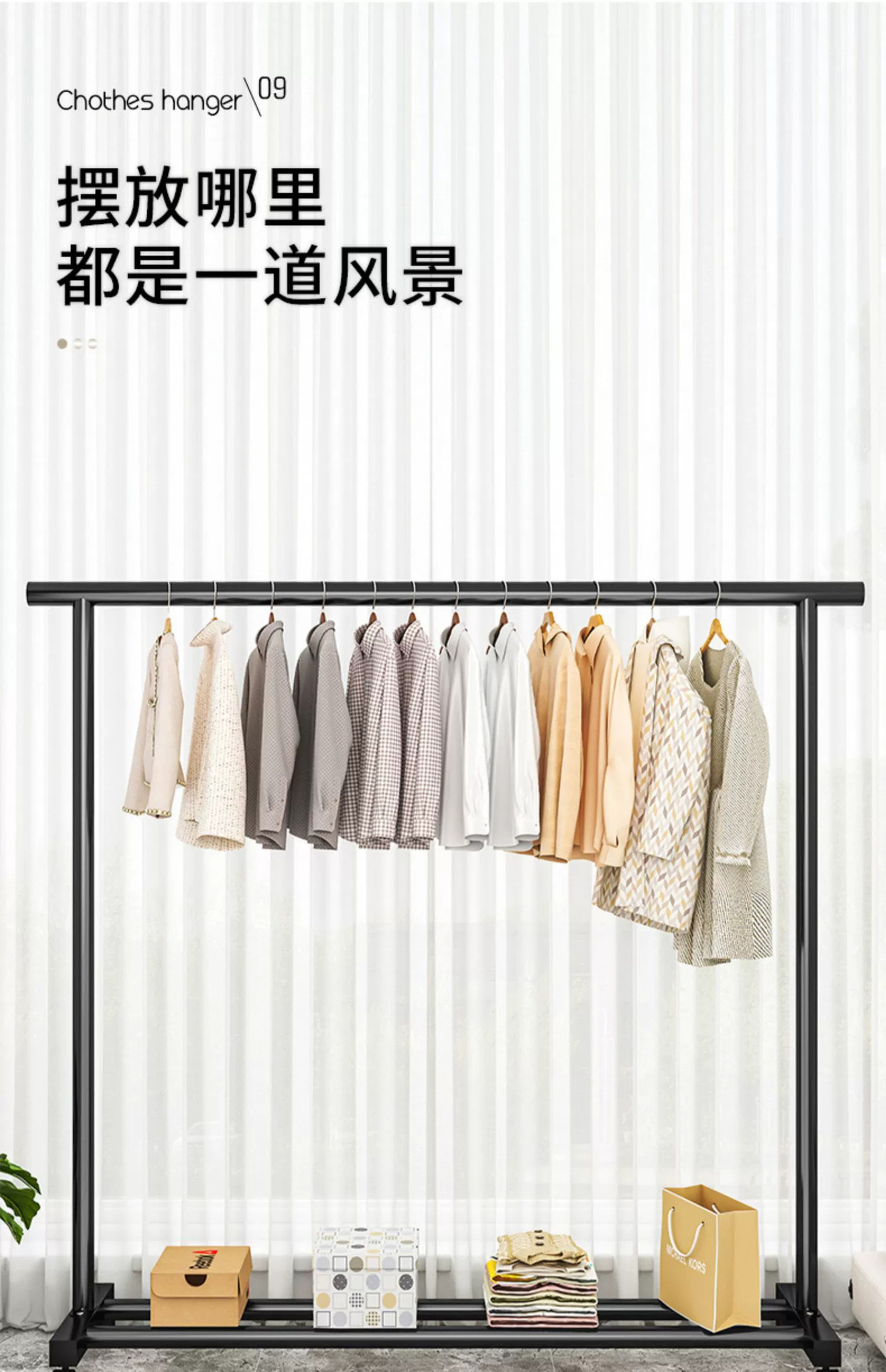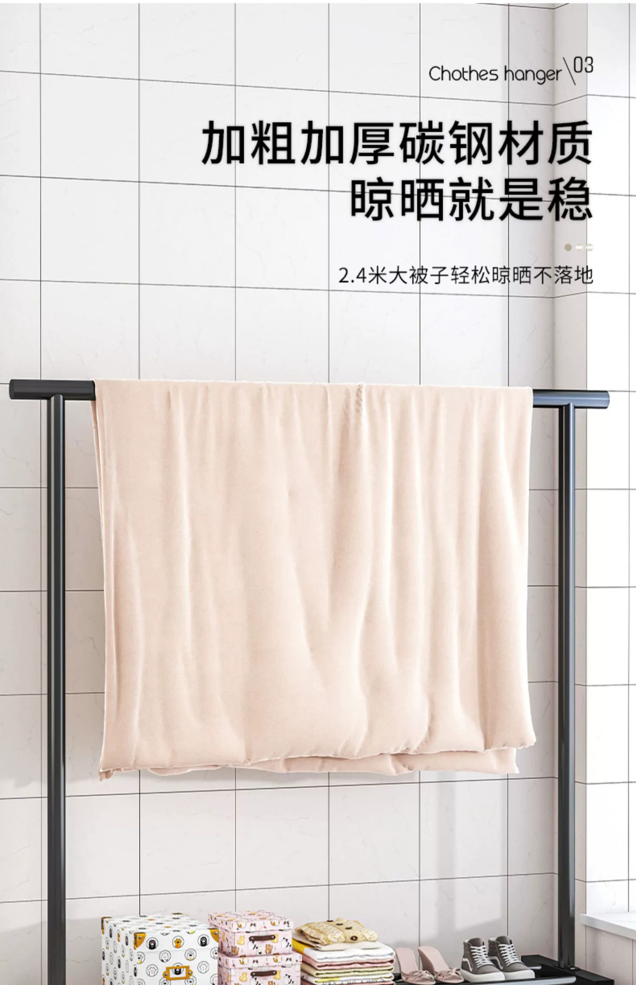 가정용 침실 발코니용 금속 옷걸이, 두꺼운 이동식 바닥형 옷걸이, 이중 봉