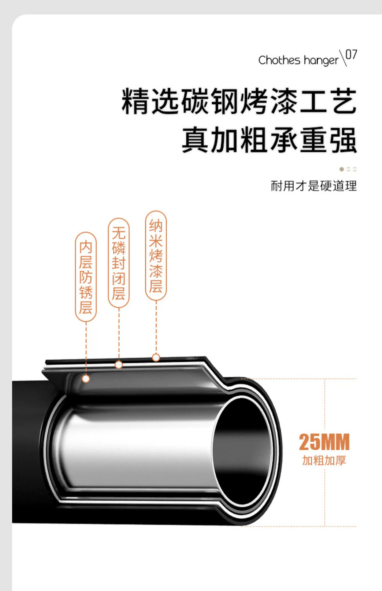 1m Black-25 튜브 이중 극 두꺼운 풀리|두 배 매달린 옷