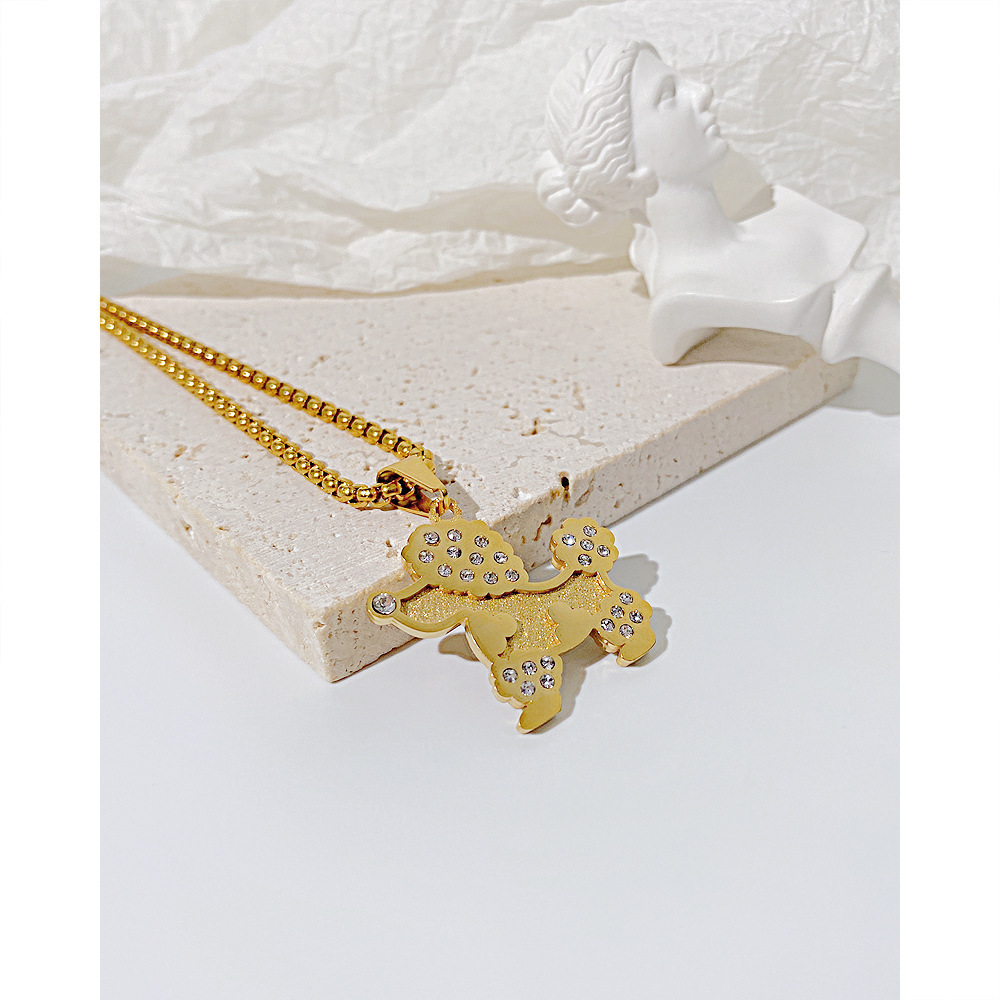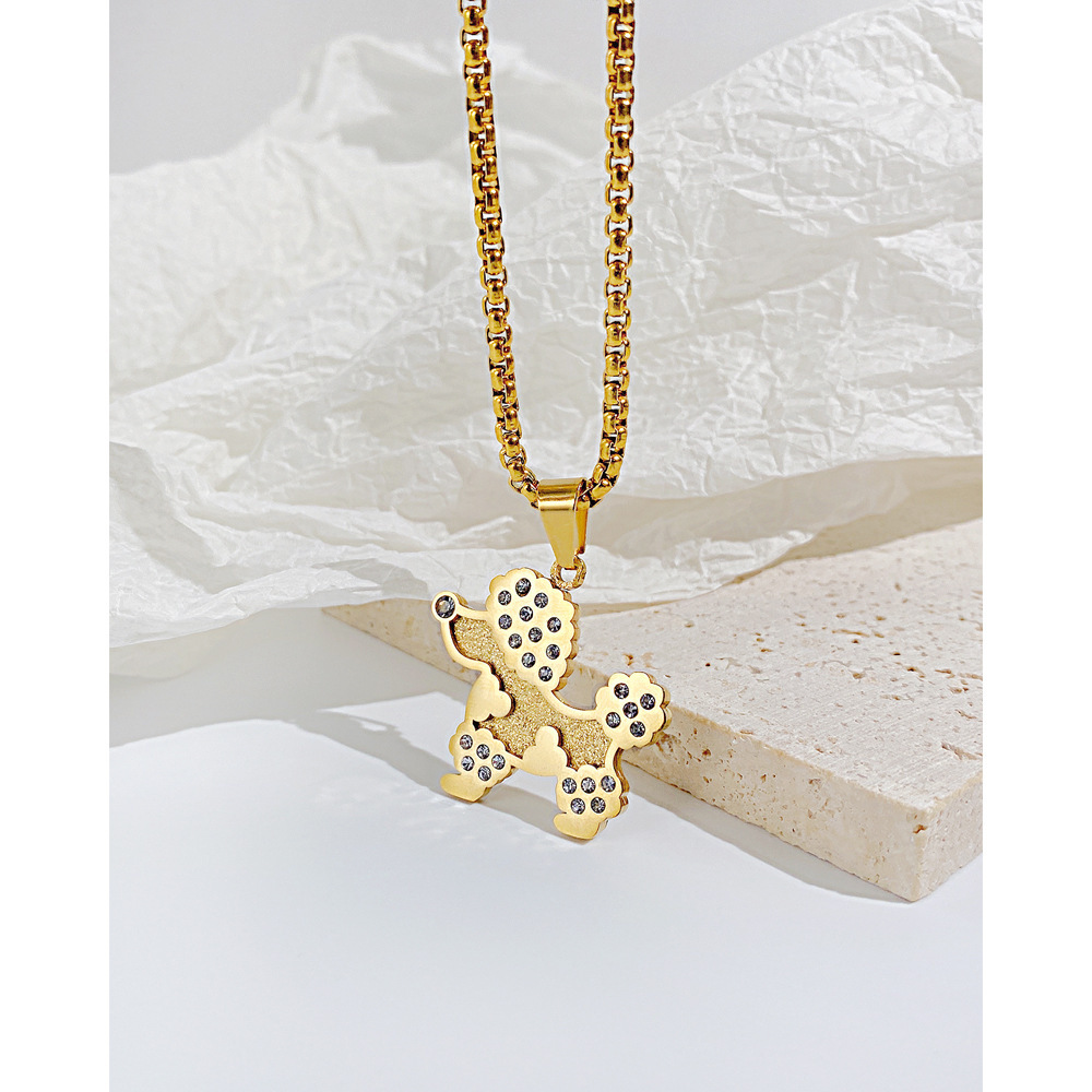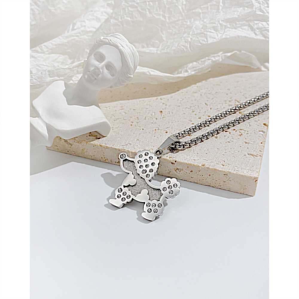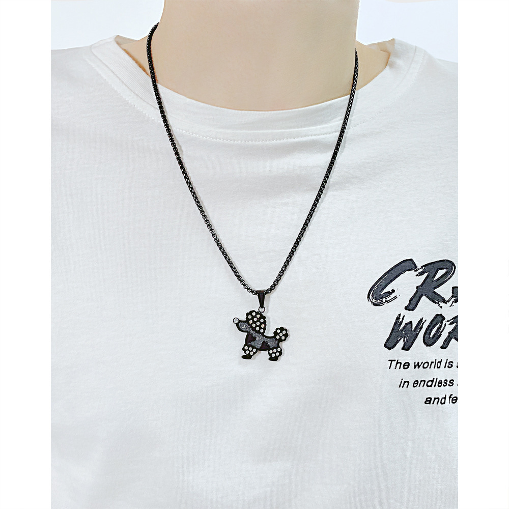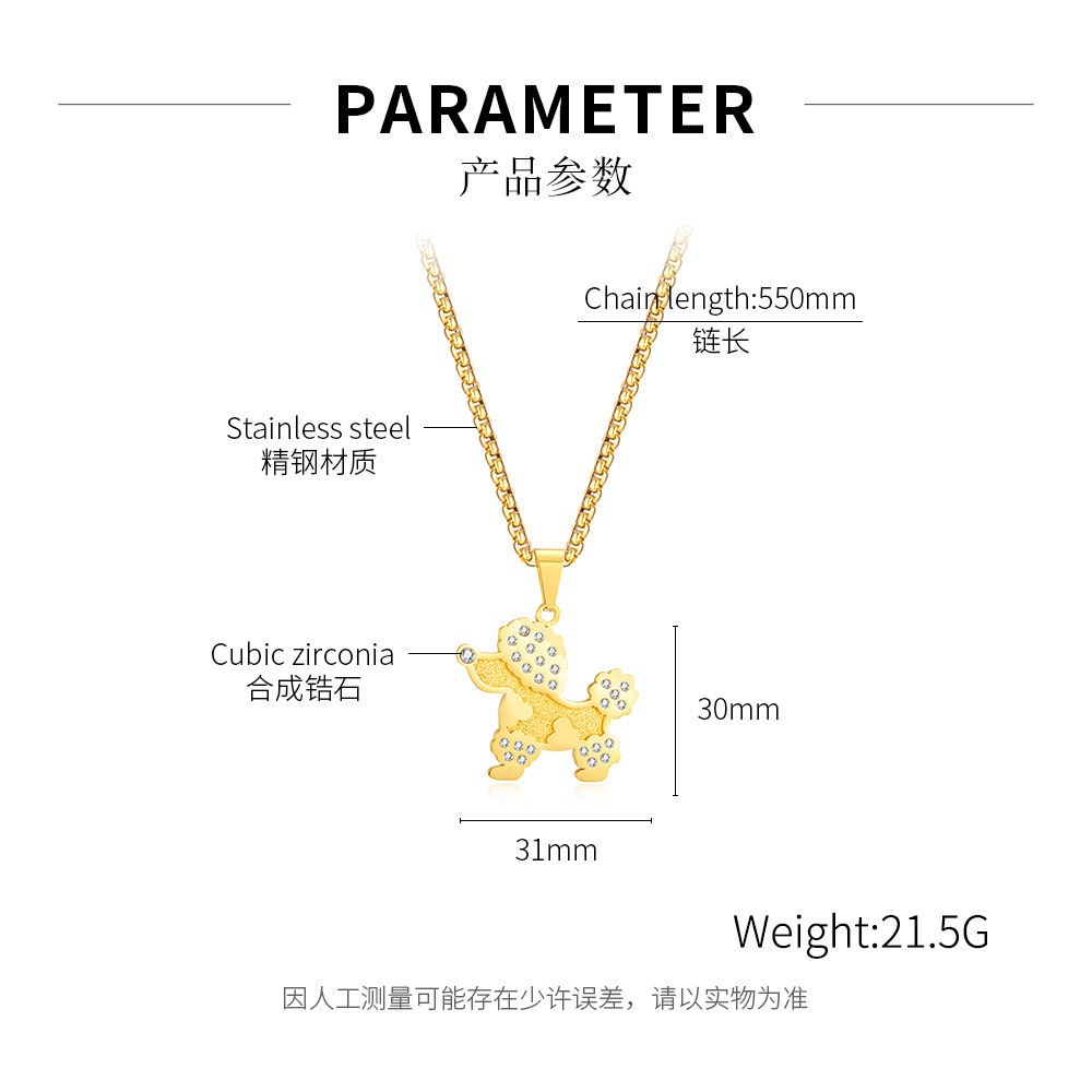 OPK 보석 유럽과 미국의 패션 트렌드 성격 디자인 3 차원 애완 동물 개 상감 지르콘 펜던트 스테인레스 스틸 목걸이