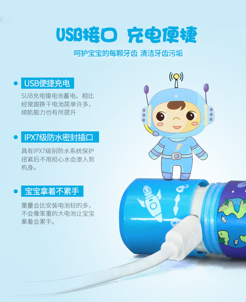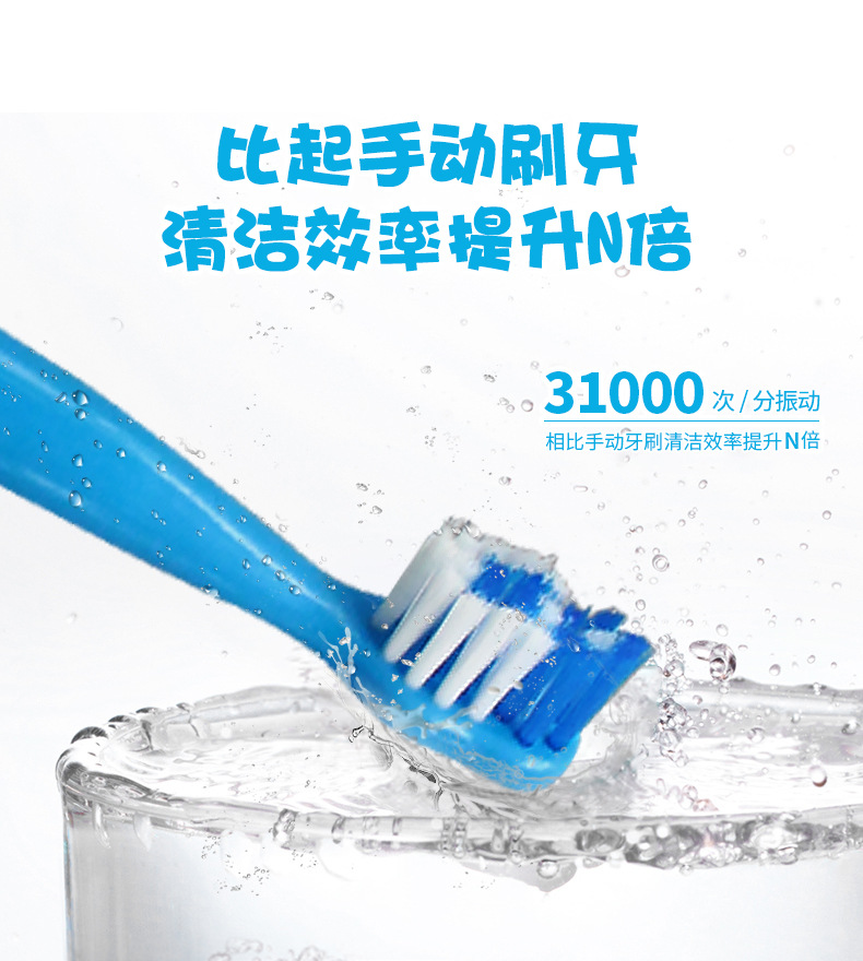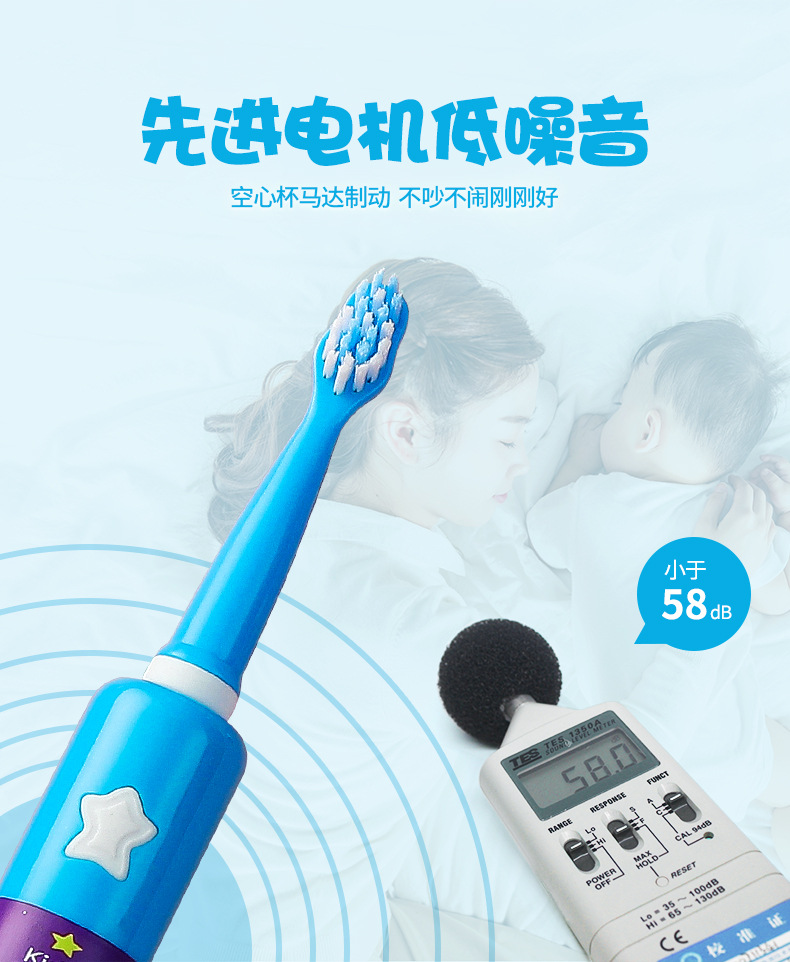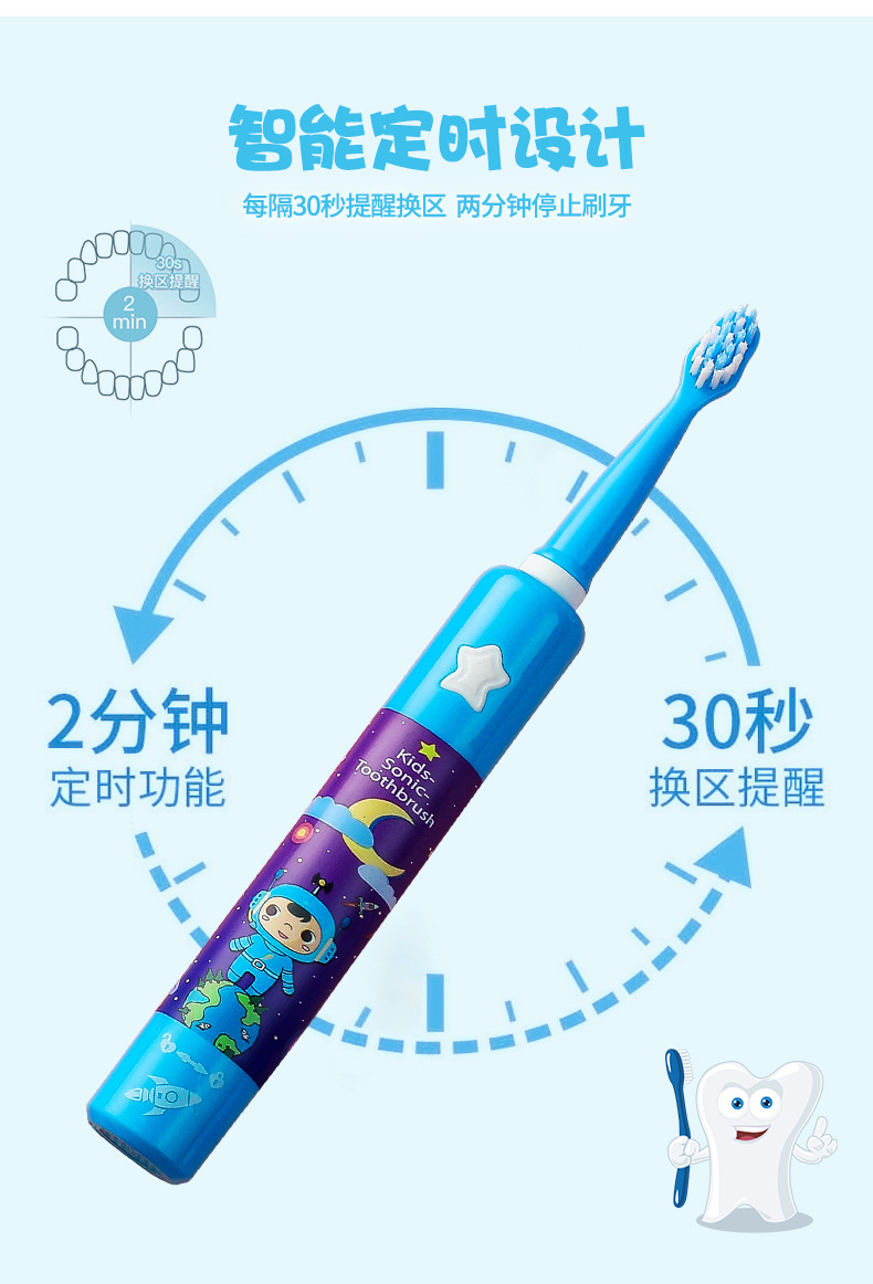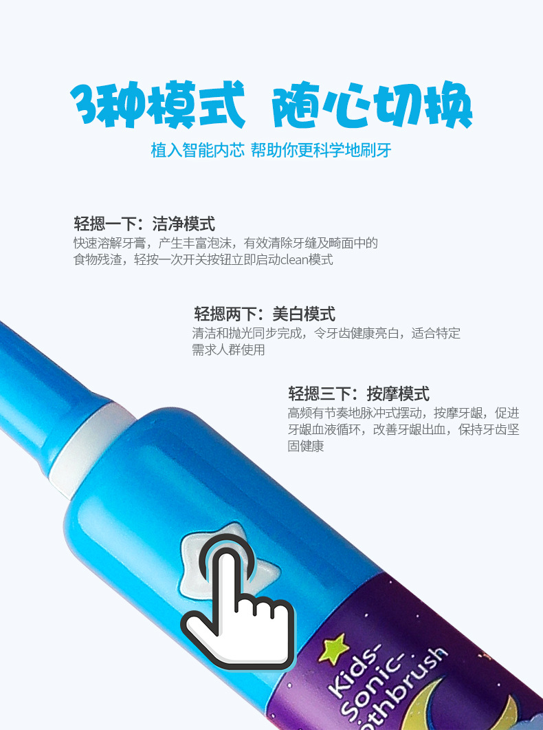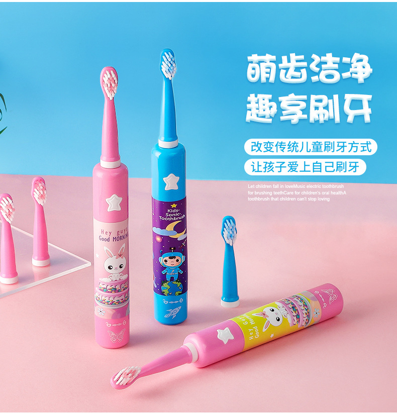 어린이 전동 칫솔 IPX7 3단 버튼 유형 USB 충전 미끄럼 방지 방수 어린이 음악 전동 칫솔