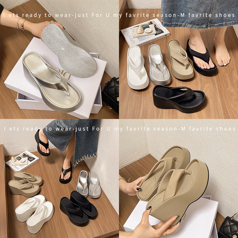 키 작은 여성용 여름 2024 신상 두꺼운 밑창 슬리퍼, 외출용 샌들, 실크 새틴 플랫폼 슬리퍼, 웨지힐 샌들