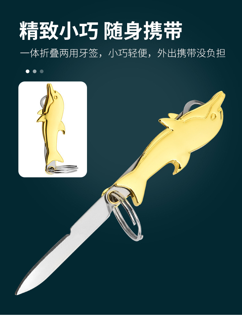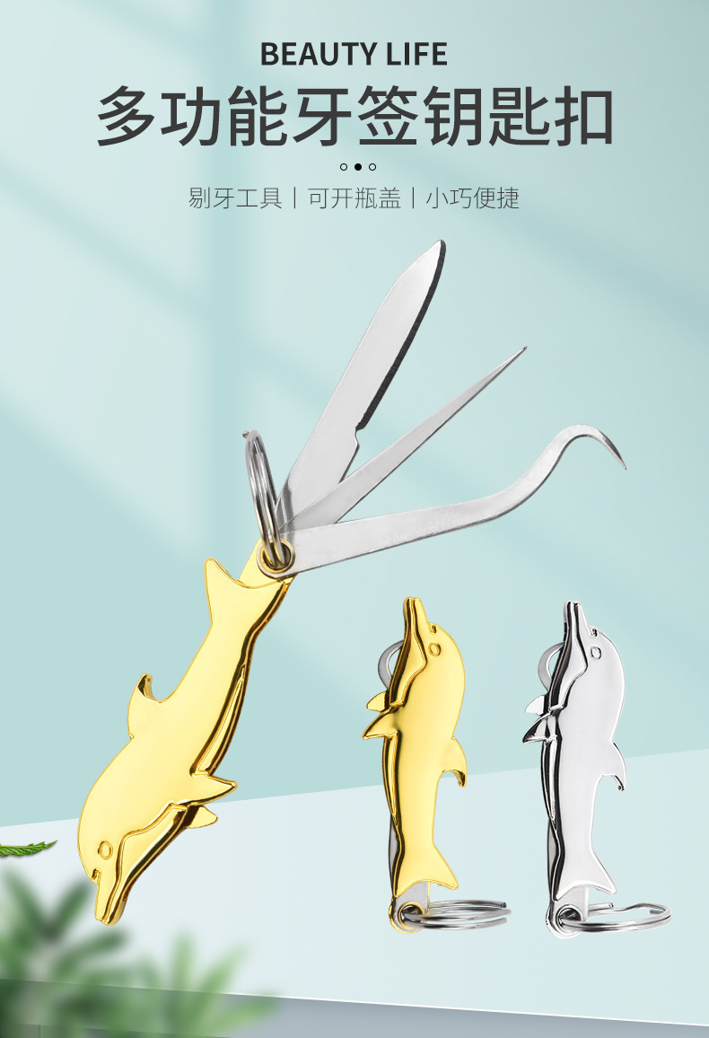 공장 스팟 스테인레스 스틸 다기능 키 체인 나이프 이쑤시개 치실 병 오프너 익스프레스 나이프