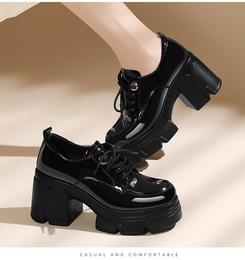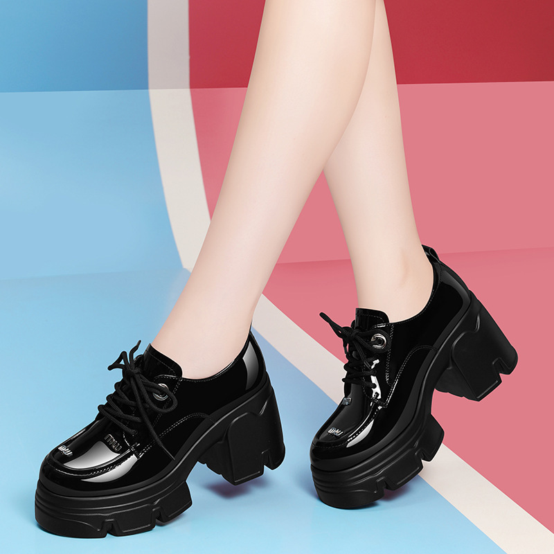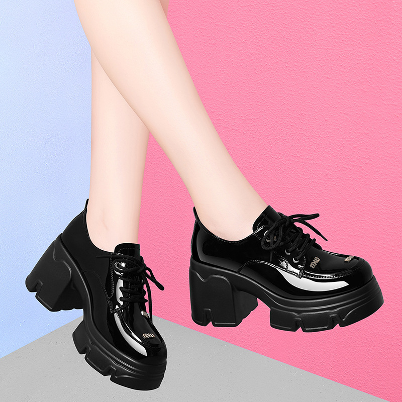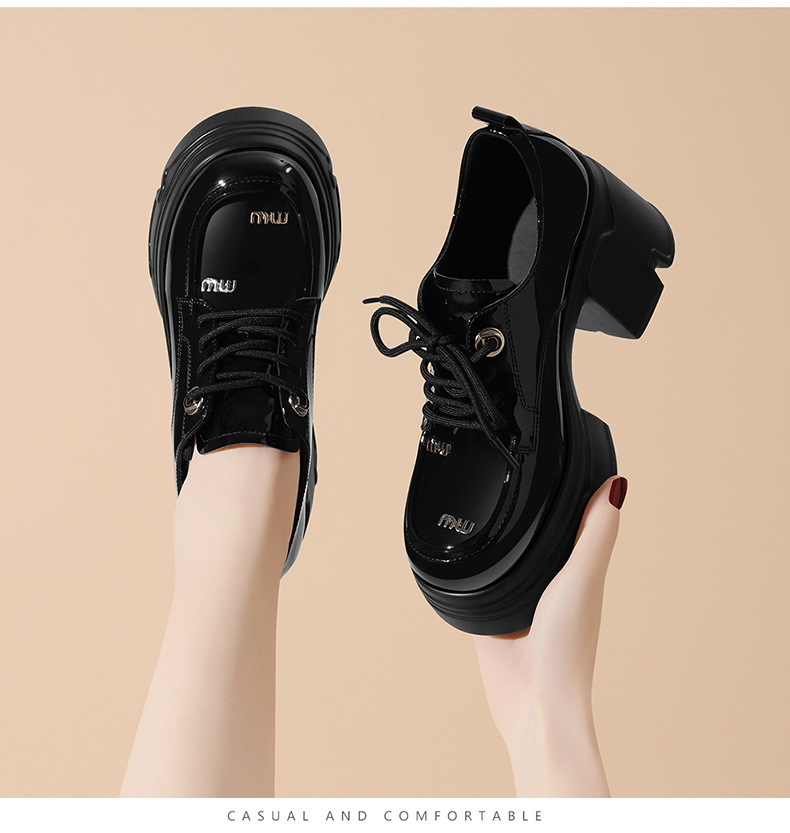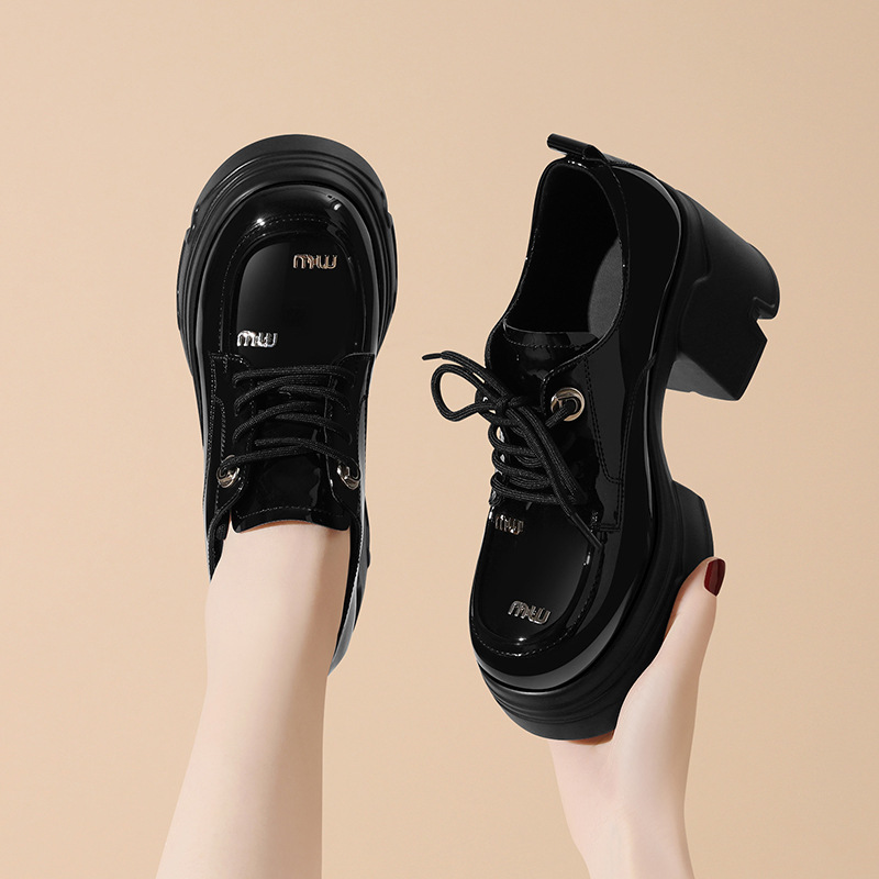 블랙 로퍼 영국 스타일 여성용 다용도 소형 가죽 신발 2024 신작 봄 두꺼운 밑창 신발 부드러운 가죽 두꺼운 굽 여성 신발
