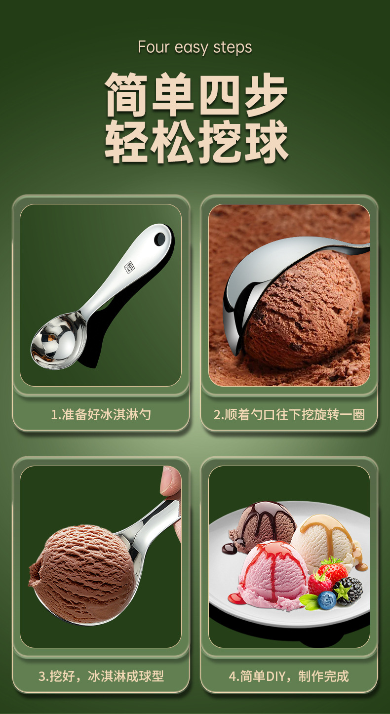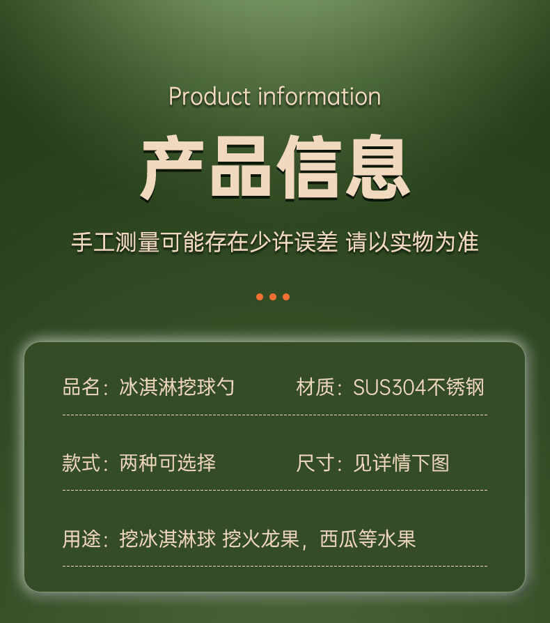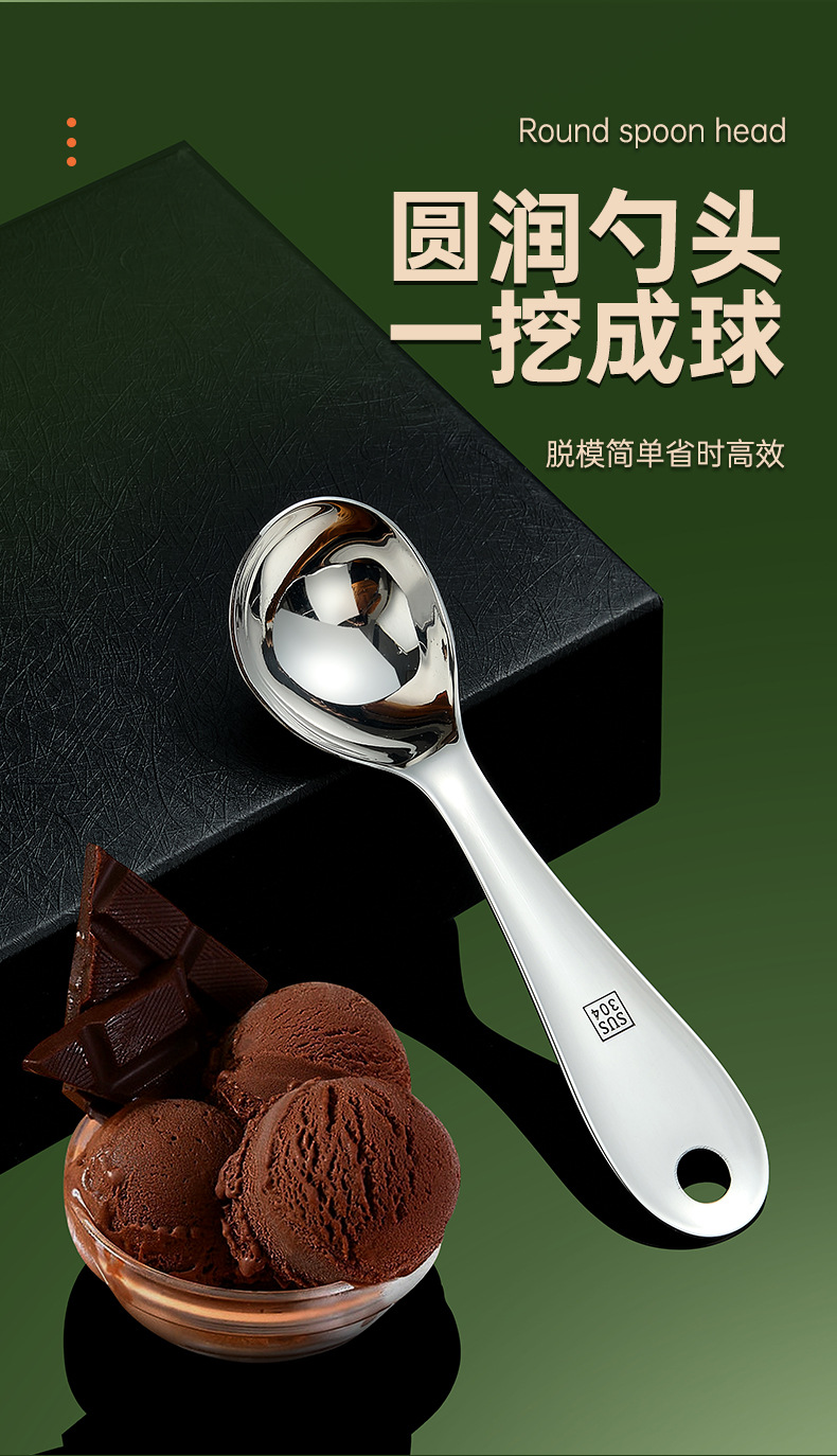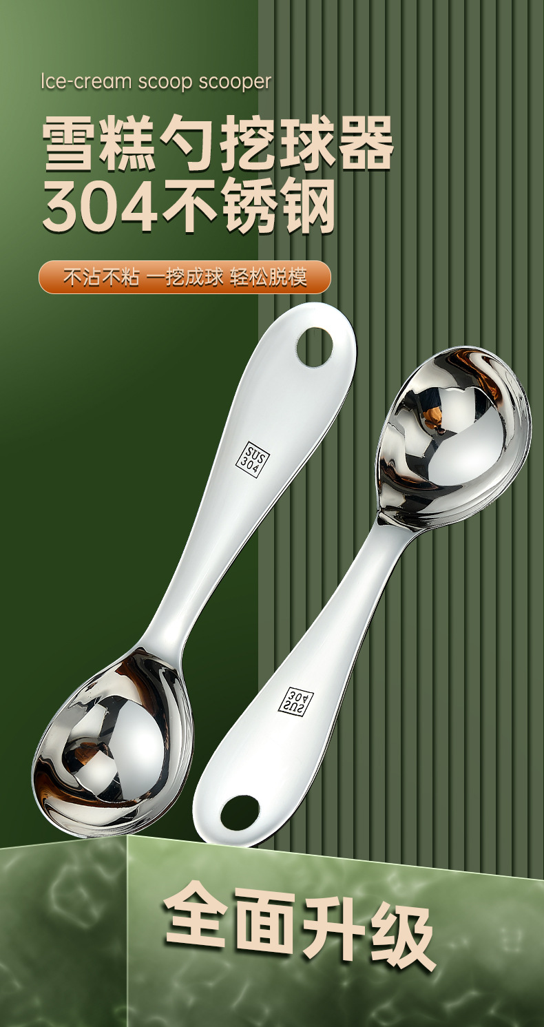 304 스테인레스 스틸 아이스크림 스푼 두꺼운 과일 공 파는 아이스크림 스푼 가정용 수박 스푼 아이스크림 스푼