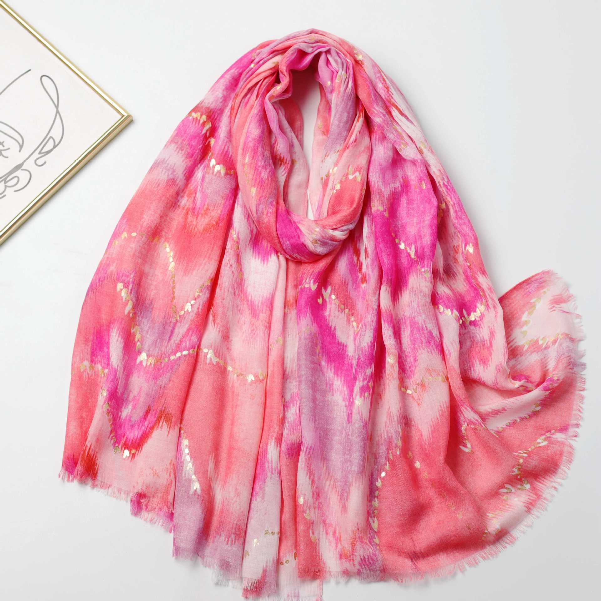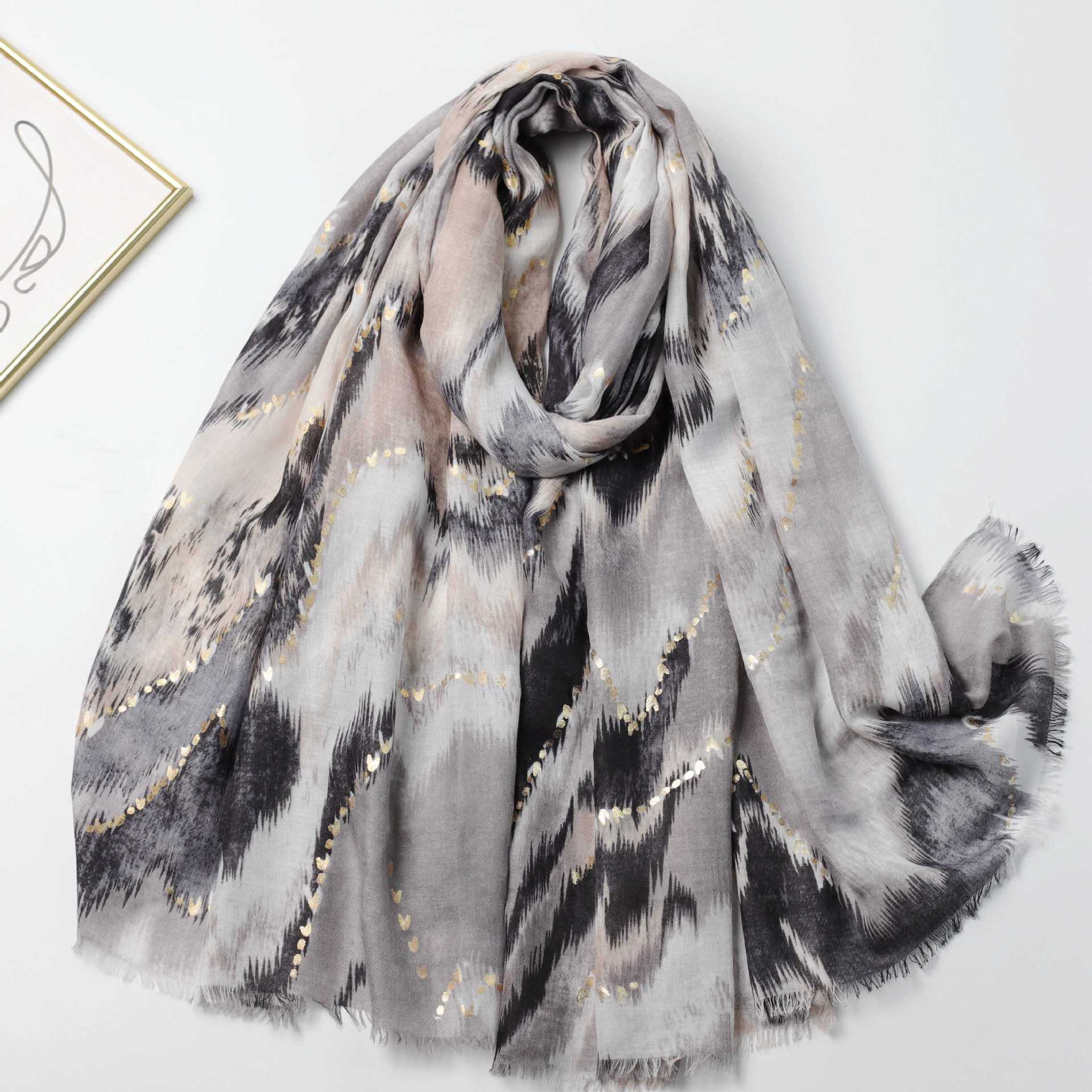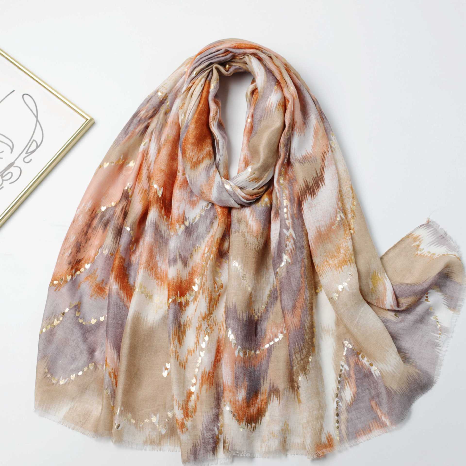 烫金山60수 공장 직판 수출용 추상 새틴 프린트 롱 스카프 여행 휴가용 자외선 차단 보온 숄