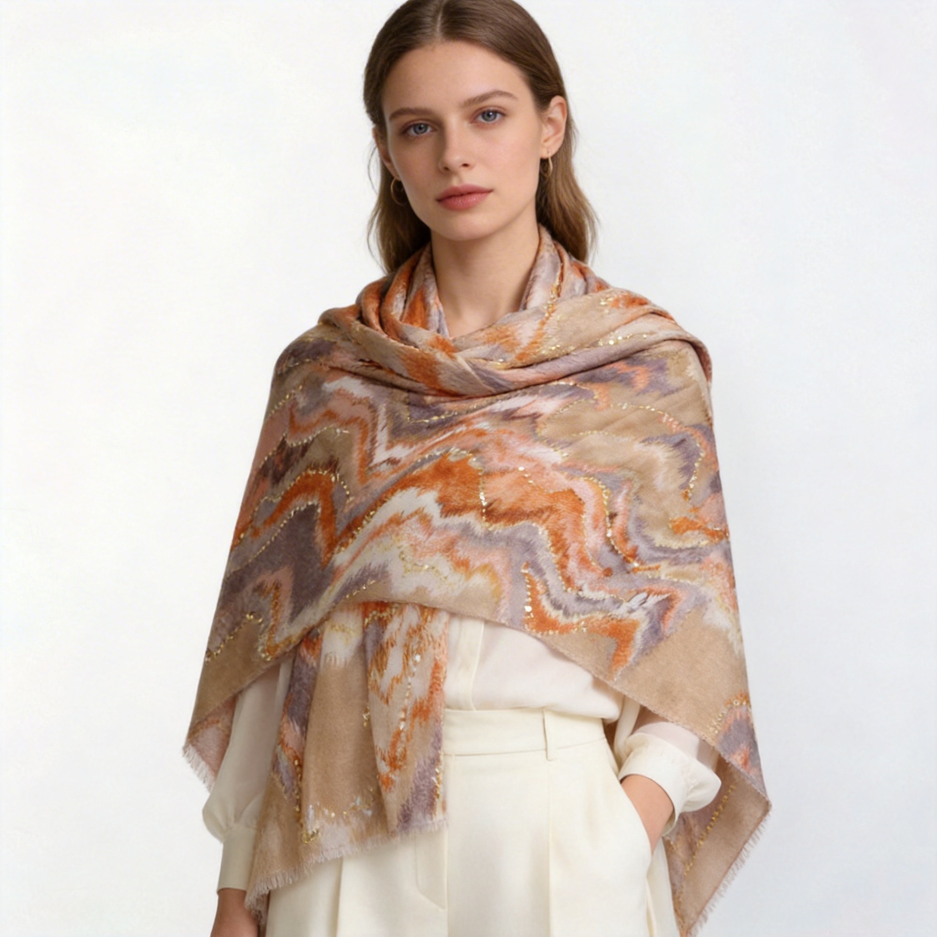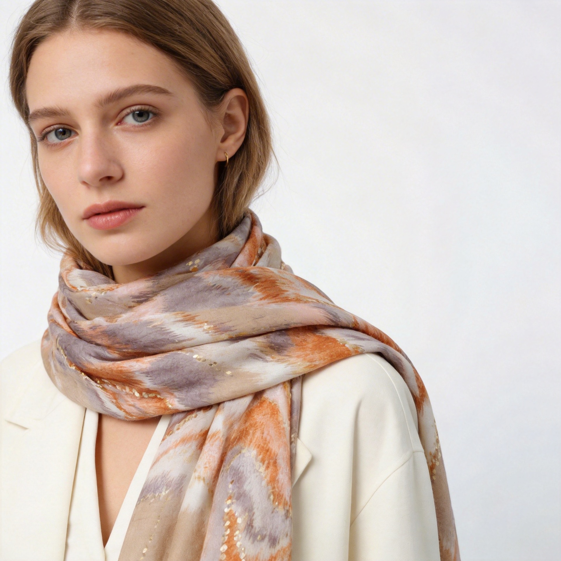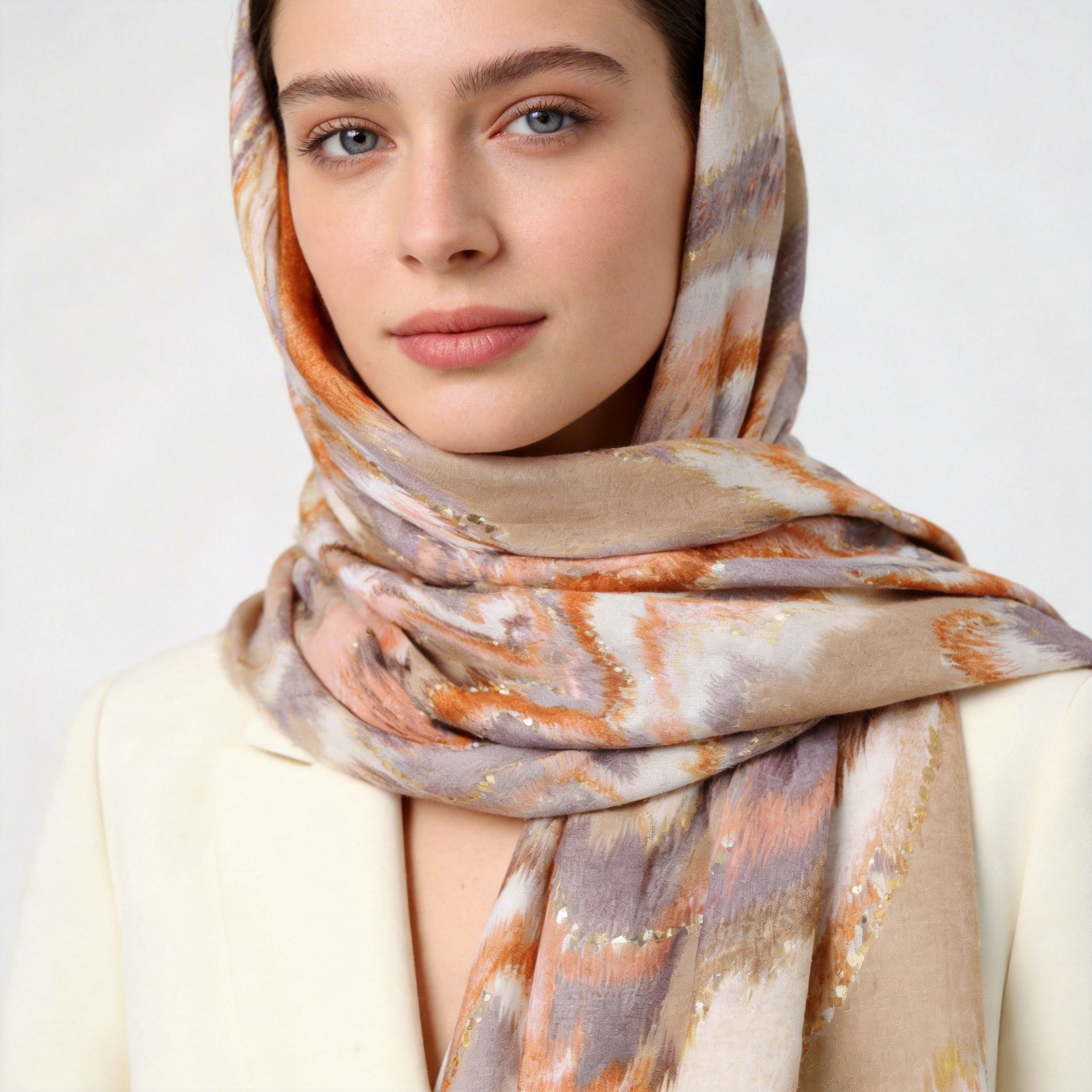 烫金山60수 공장 직판 수출용 추상 새틴 프린트 롱 스카프 여행 휴가용 자외선 차단 보온 숄