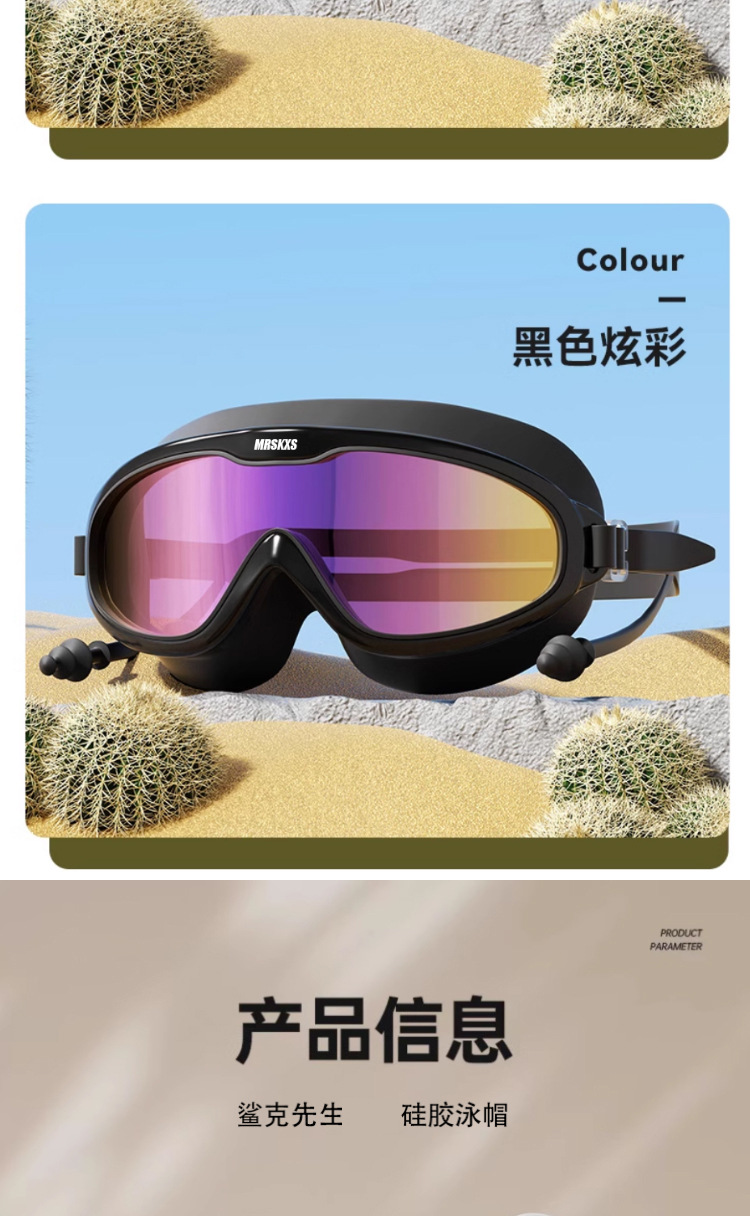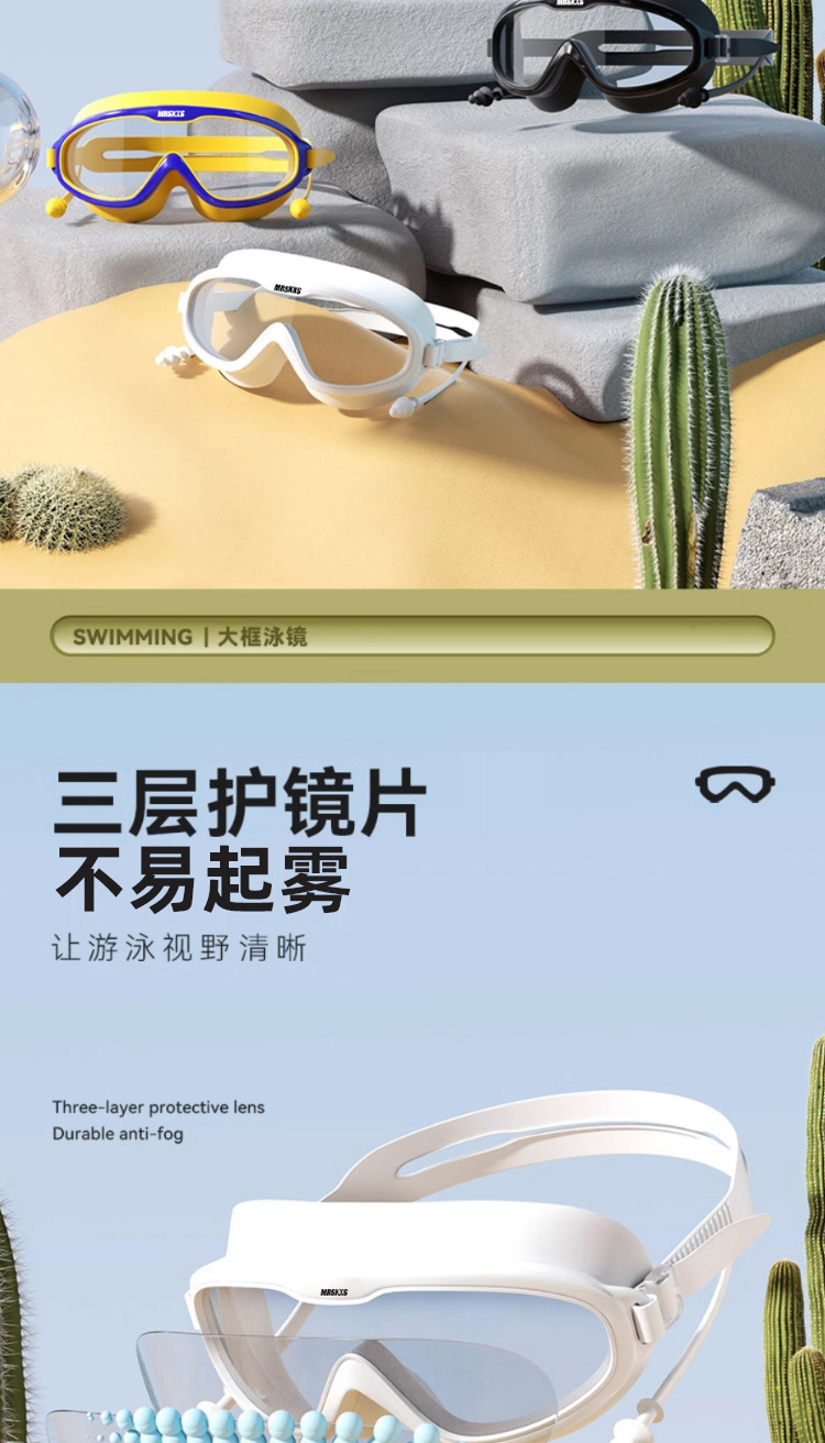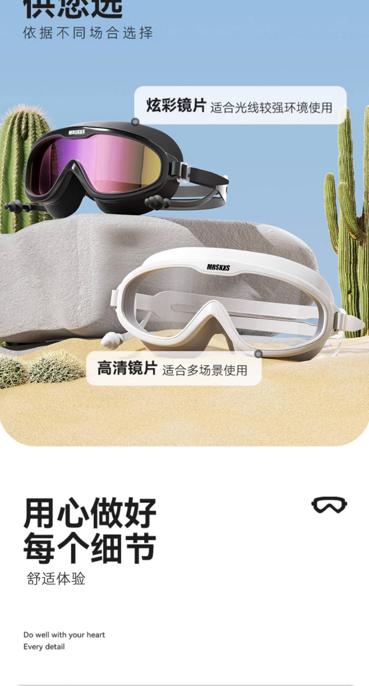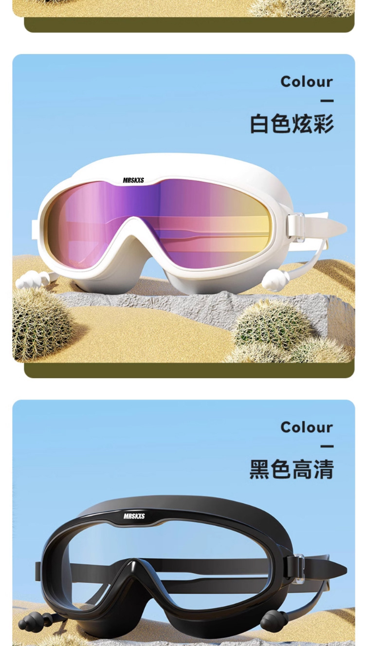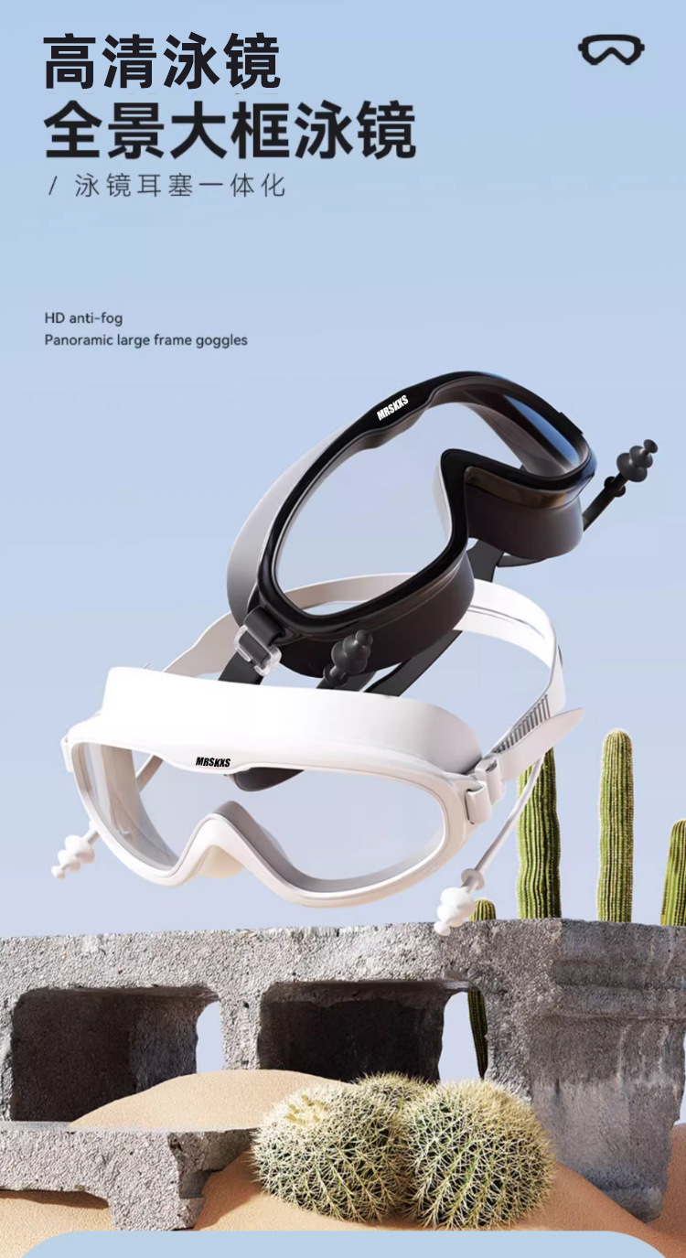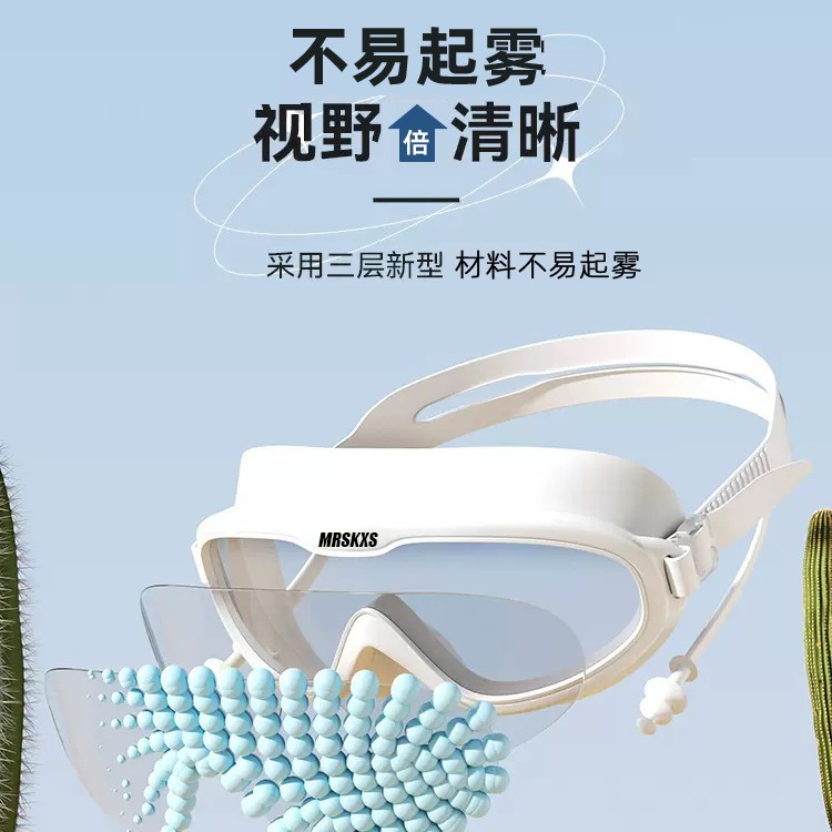 성인 대형 프레임 수영 고글 수영 캡 귀마개 원피스 고화질 수영 안경 남성과 여성의 투명한 안개 방지 실리콘 고글