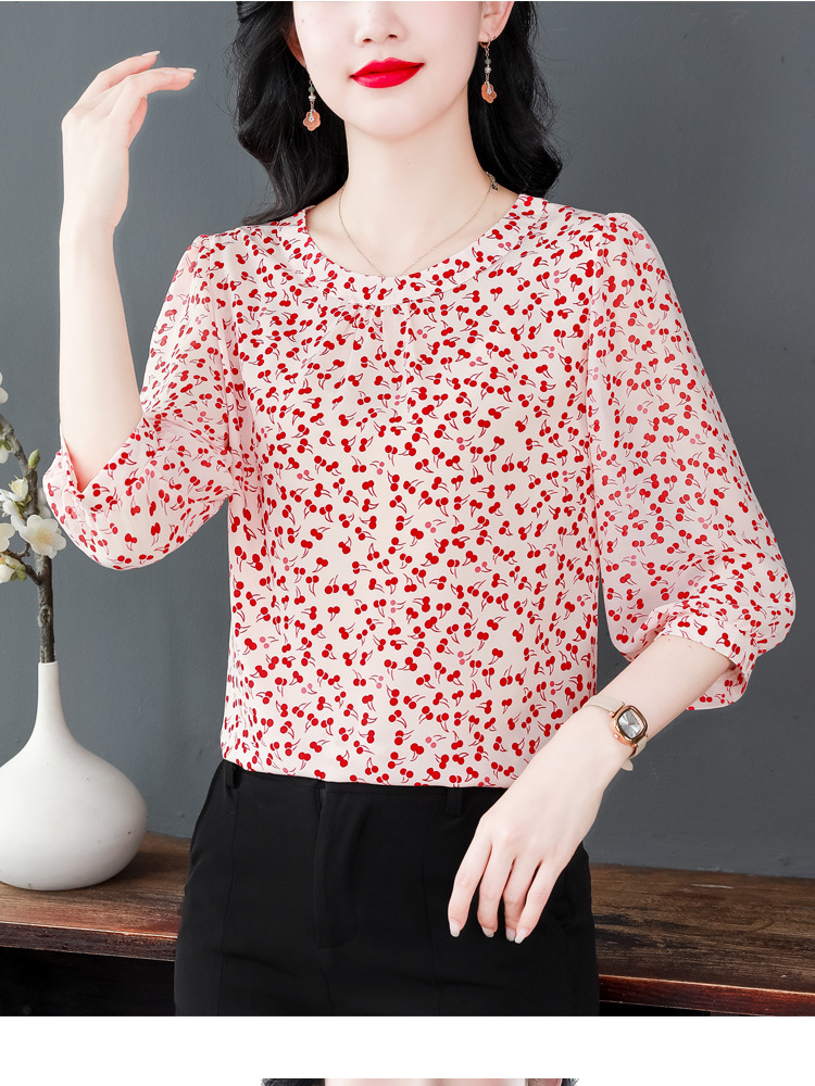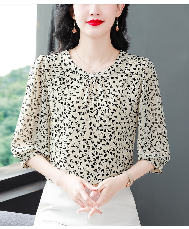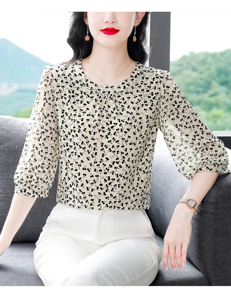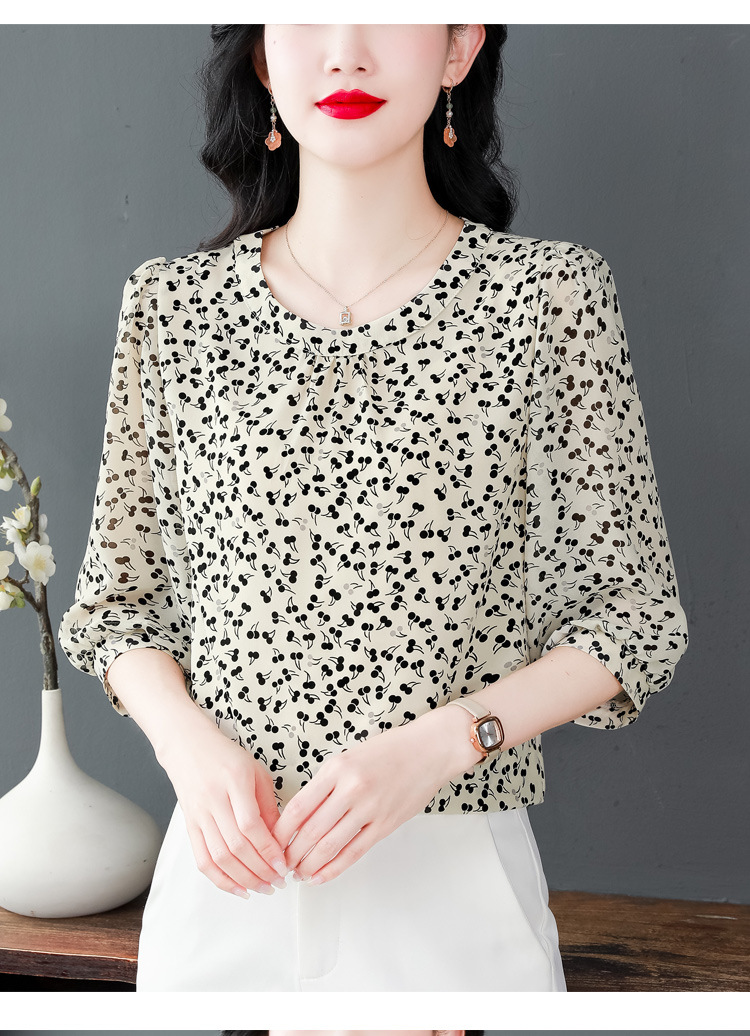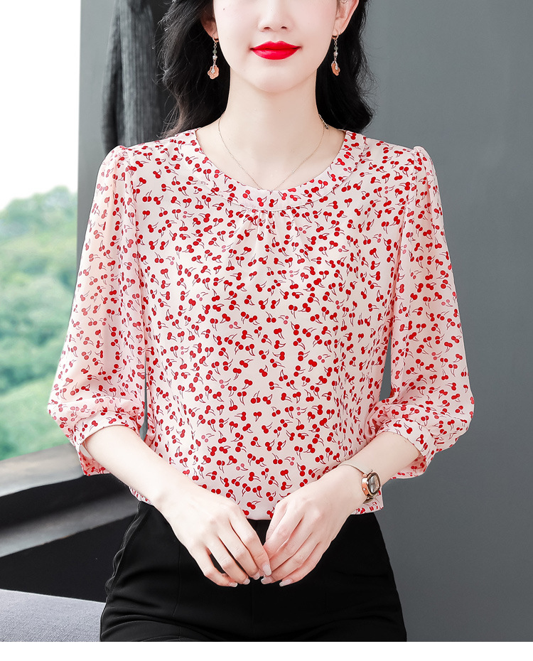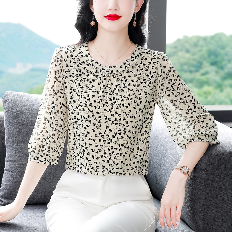 공장 아울렛 인쇄 쉬폰 셔츠 여성의 2024 년 봄과 여름 새로운 작은 셔츠 슬림 웨스턴 스타일 시대 감소 탑 올 매치 셔츠