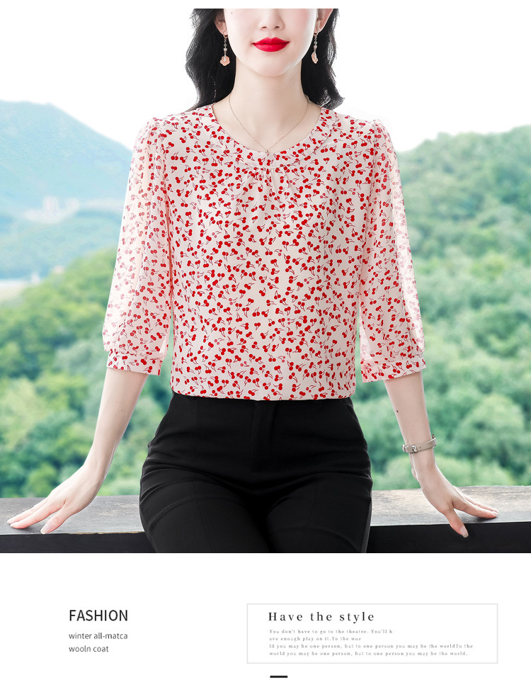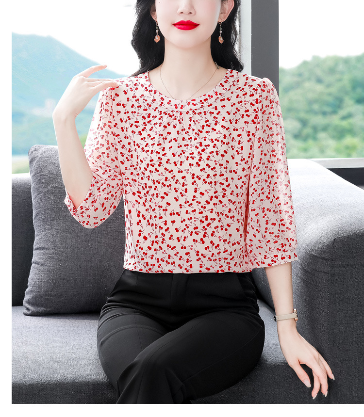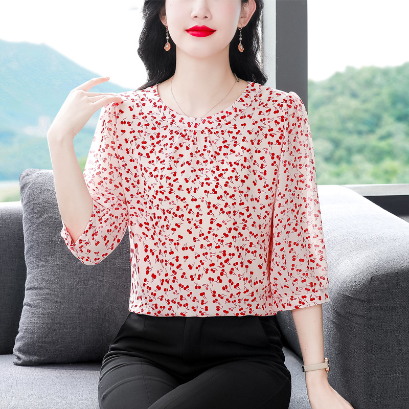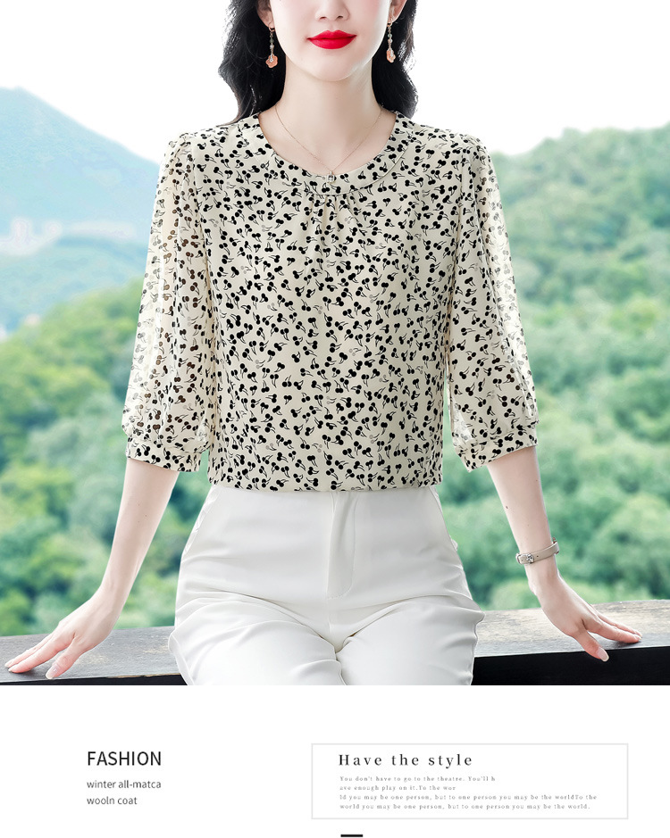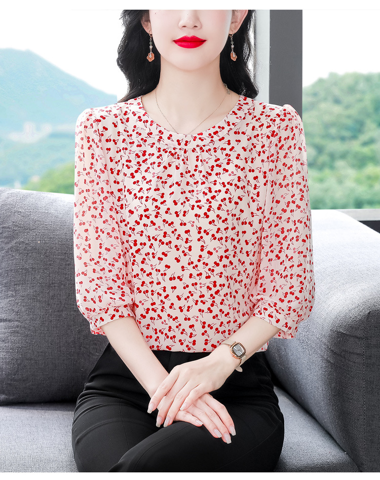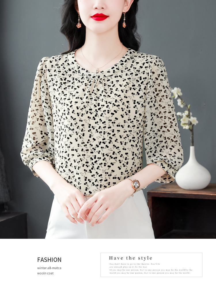 공장 아울렛 인쇄 쉬폰 셔츠 여성의 2024 년 봄과 여름 새로운 작은 셔츠 슬림 웨스턴 스타일 시대 감소 탑 올 매치 셔츠