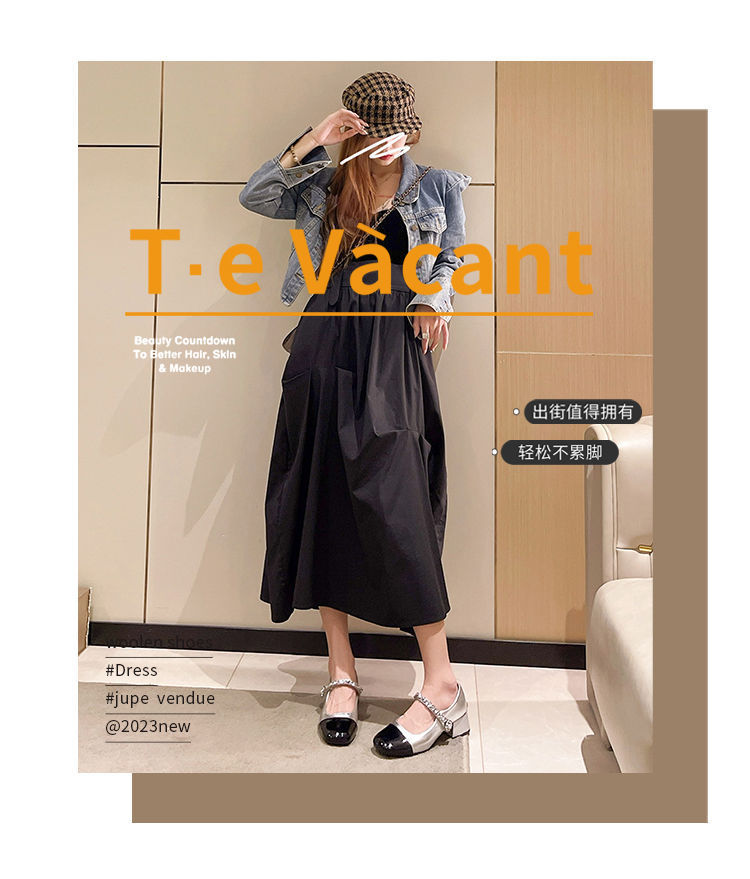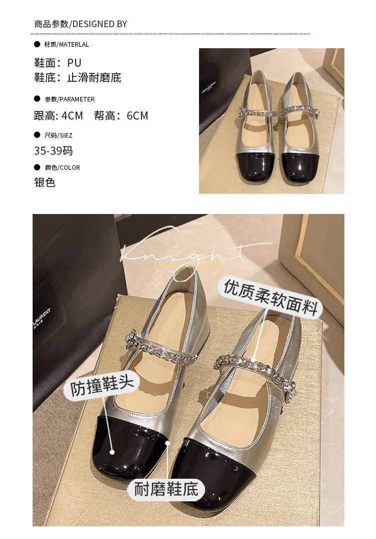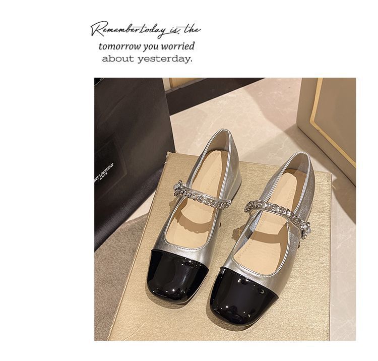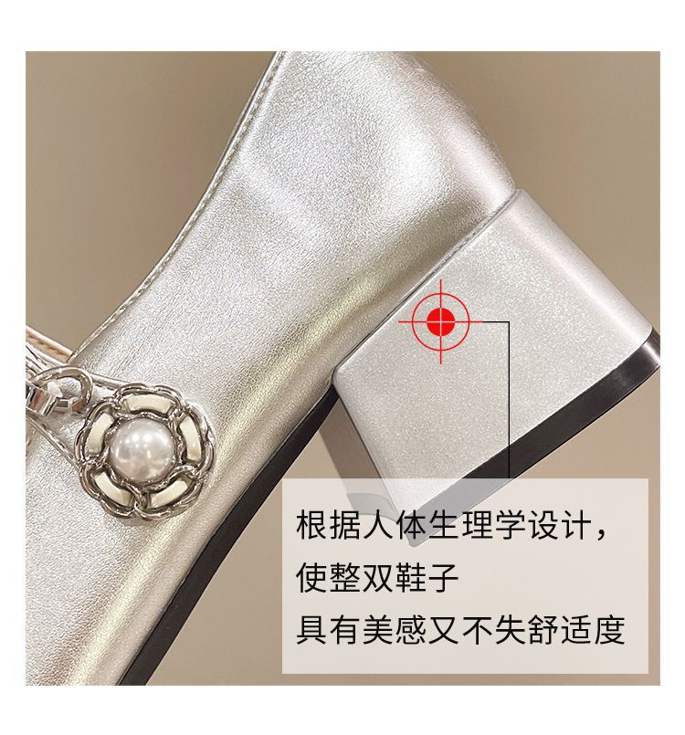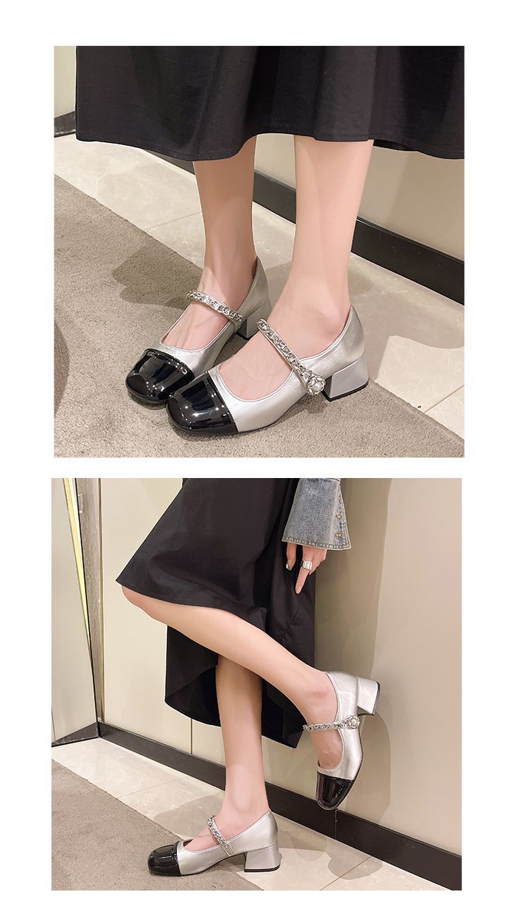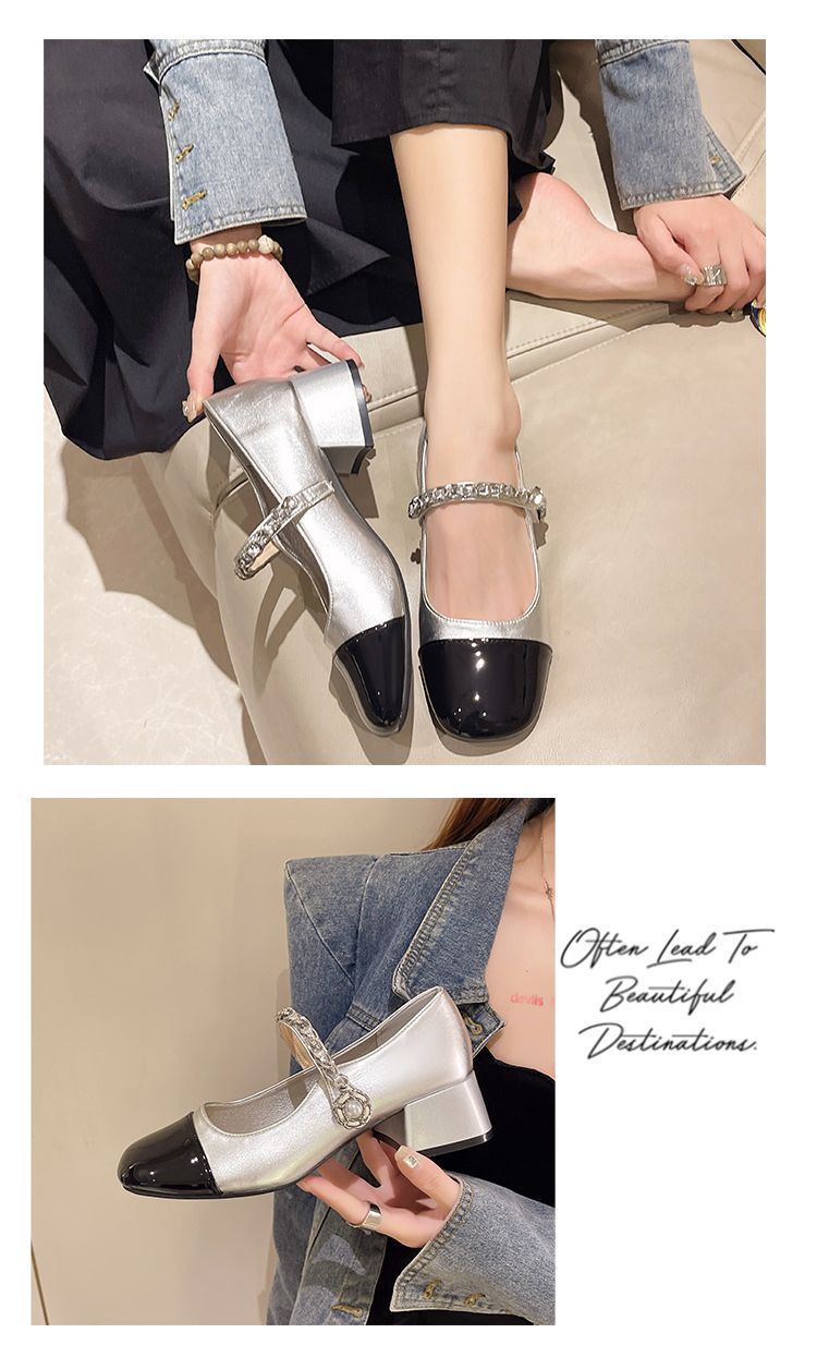 리틀 샤넬 스타일 메리 제인 신발 프렌치 스퀘어 발가락 하이힐 페어리 스타일 가죽 신발 진주 특허 가죽 두꺼운 힐 얕은 입 싱글 레이어 신발