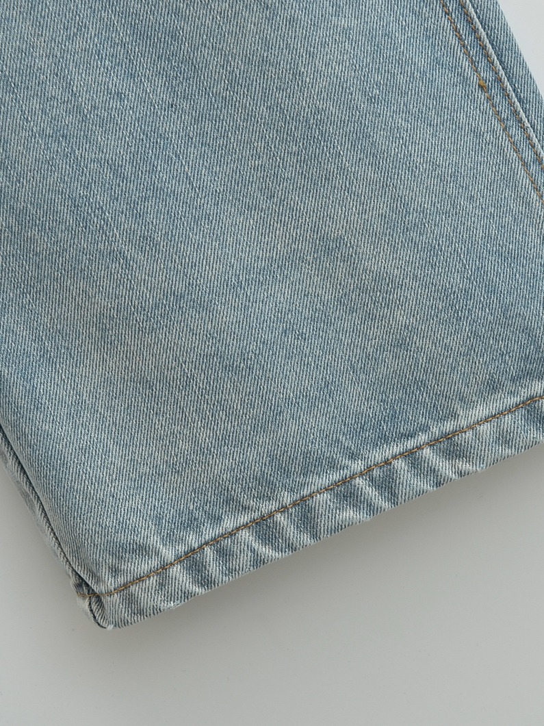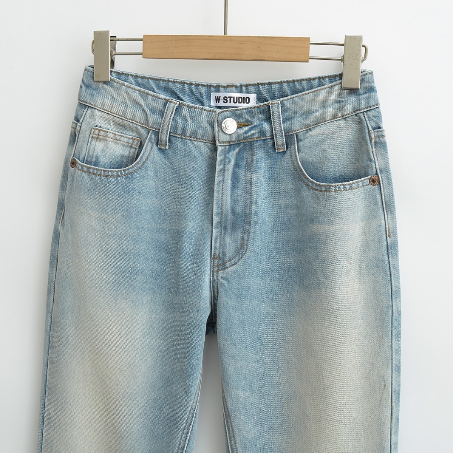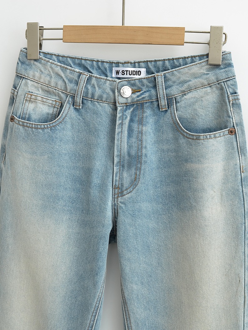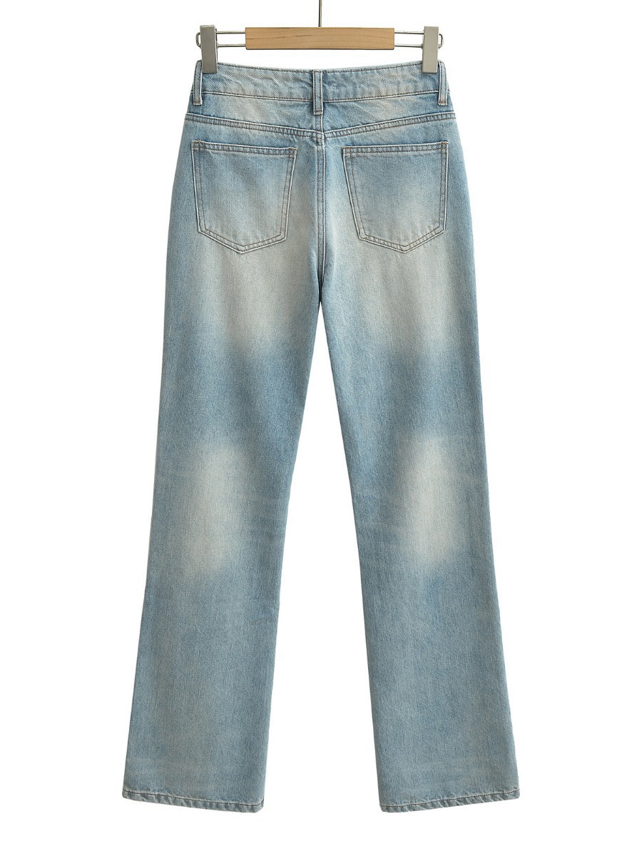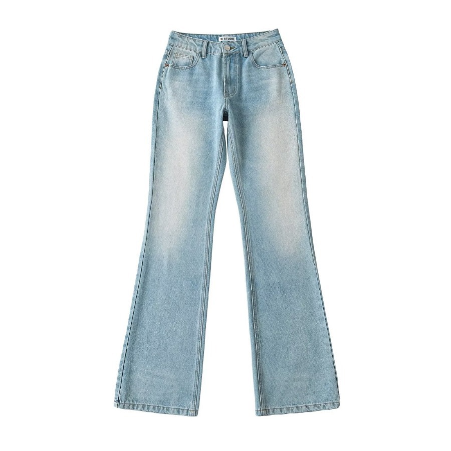 2025 신상 INS 유럽풍 워싱 화이트 미드웨이스트 플레어 팬츠 롱 레그 여성 하이웨이스트 슬림 데님 팬츠