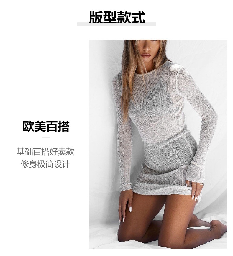 유럽과 미국의 봄과 여름 관점 원피스 여성의 새로운 섹시한 속이 빈 해변 원피스 선 스크린 블라우스 긴 소매 라운드 넥 스커트 여성