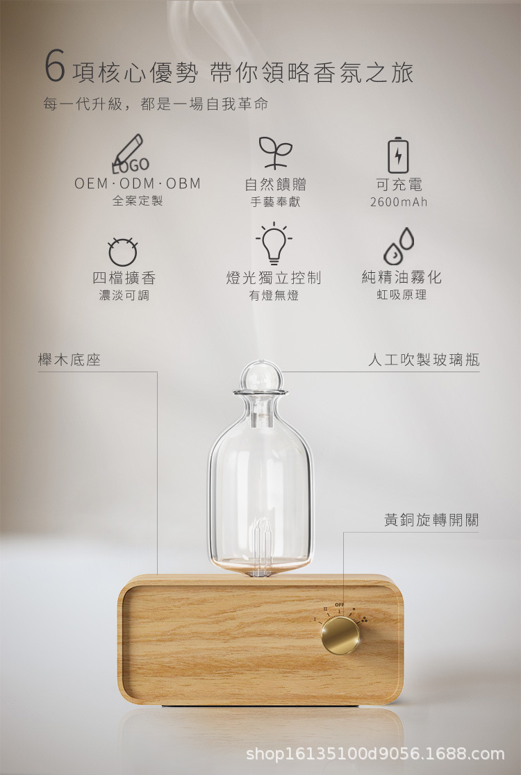 AM02 아로마 테라피 기계 단단한 나무 유리 충전식 내구성 사무실 가정용 에센셜 오일 분무 공기 정화 아로마 테라피 기계