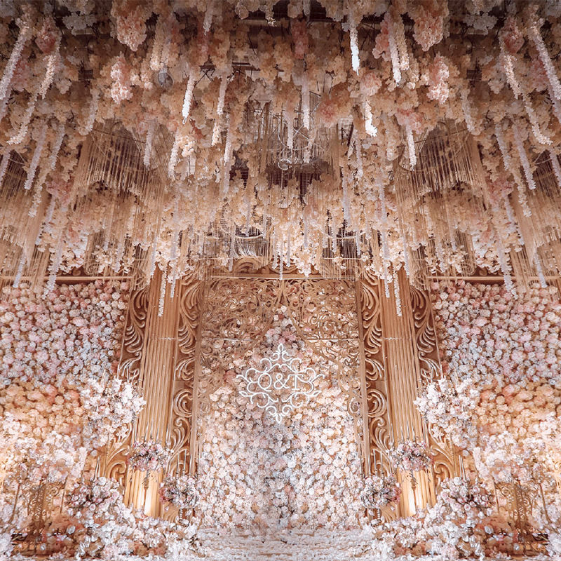 양란 문자열 결혼식 등나무 꽃 스트립 수국 문자열 웨딩 홀 천장 장식 양란 꽃 문자열 시뮬레이션