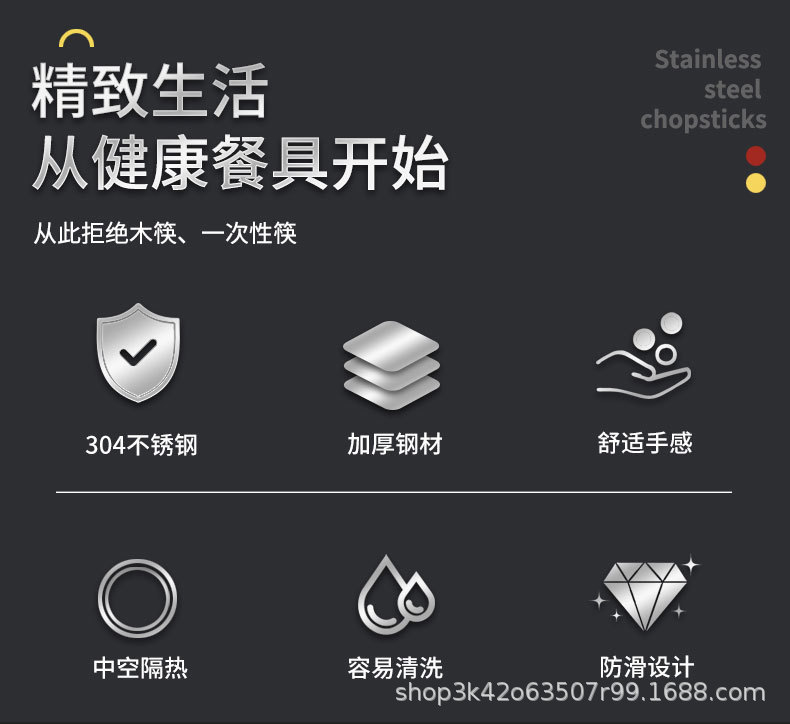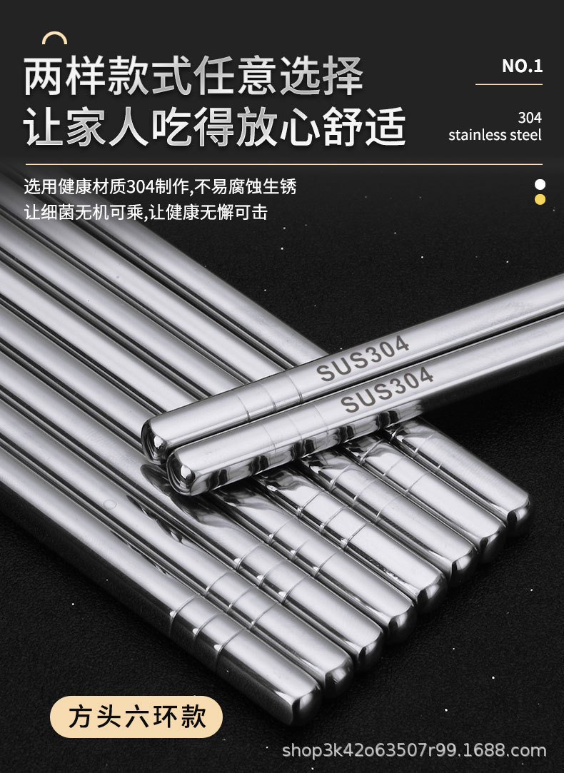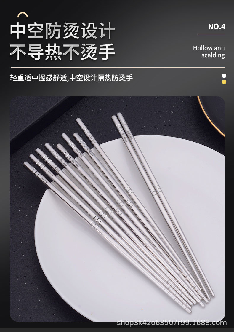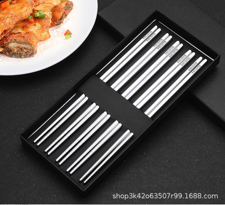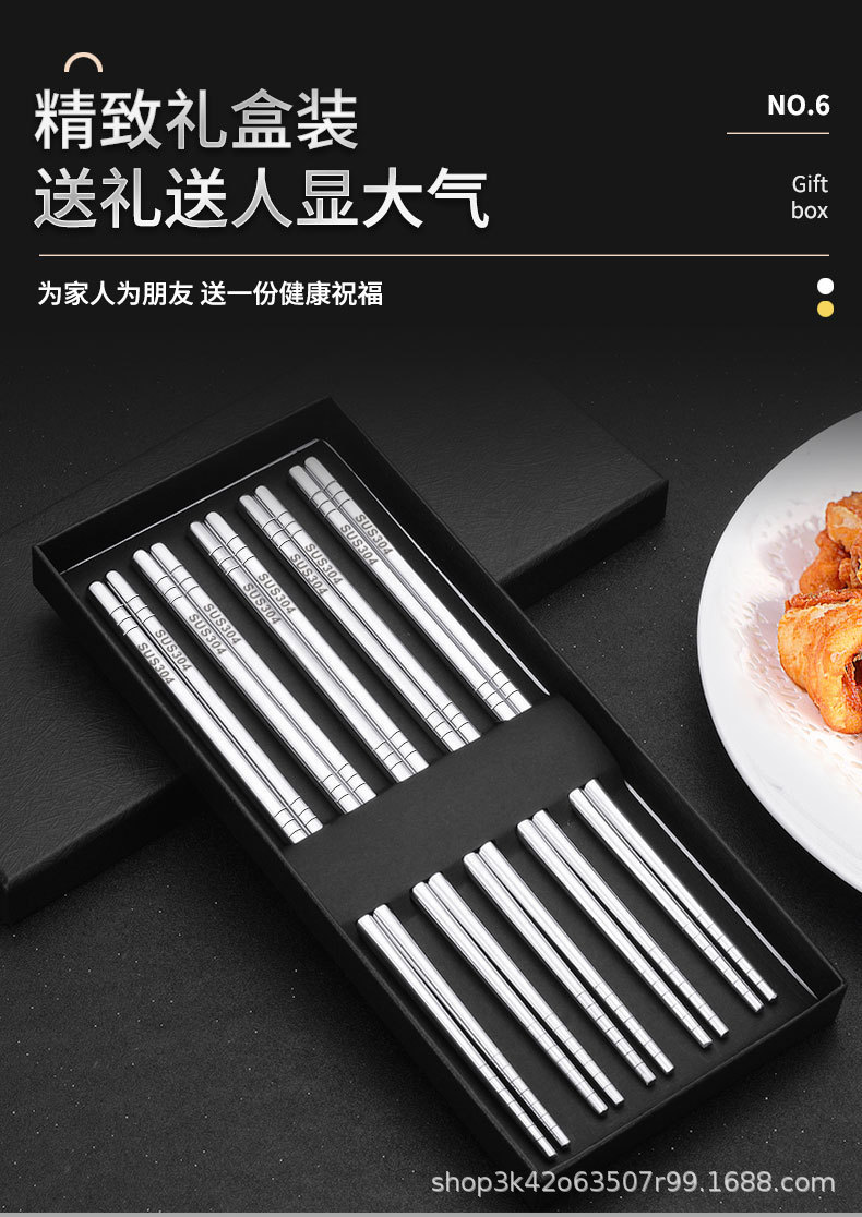 304 스테인리스 젓가락 6링 레이저 미끄럼 방지 및 곰팡이 방지 가정용 호텔 식기 세트 선물 상자