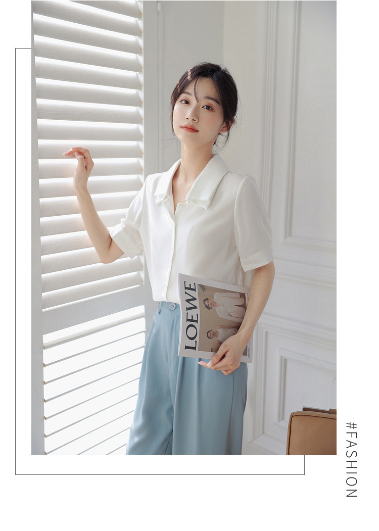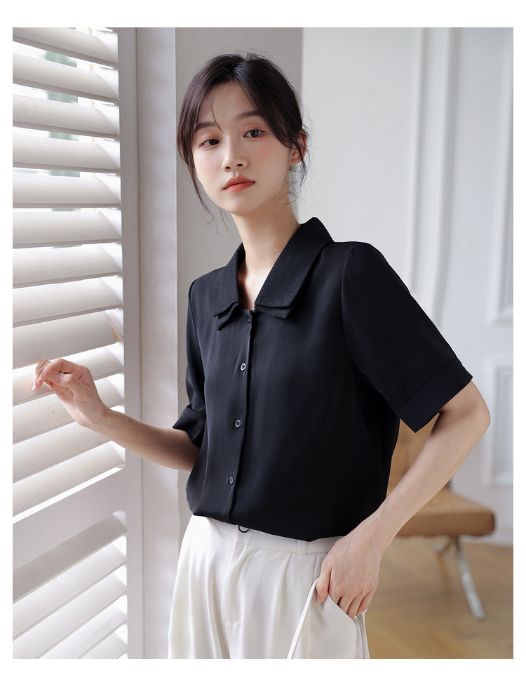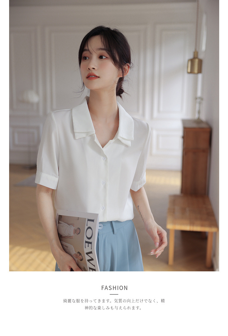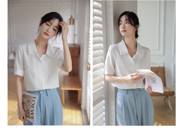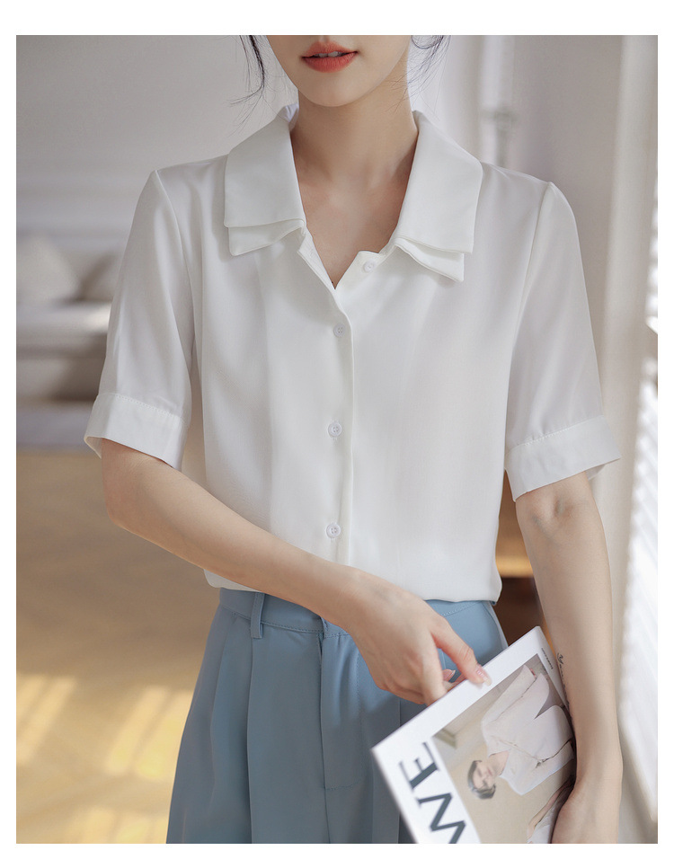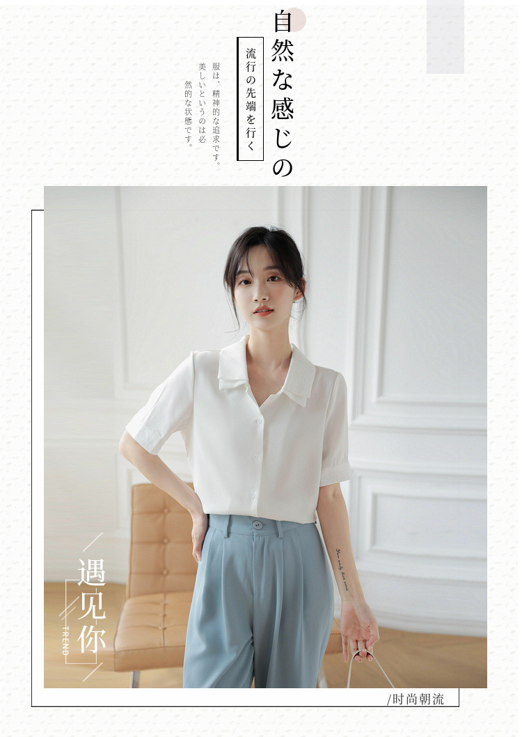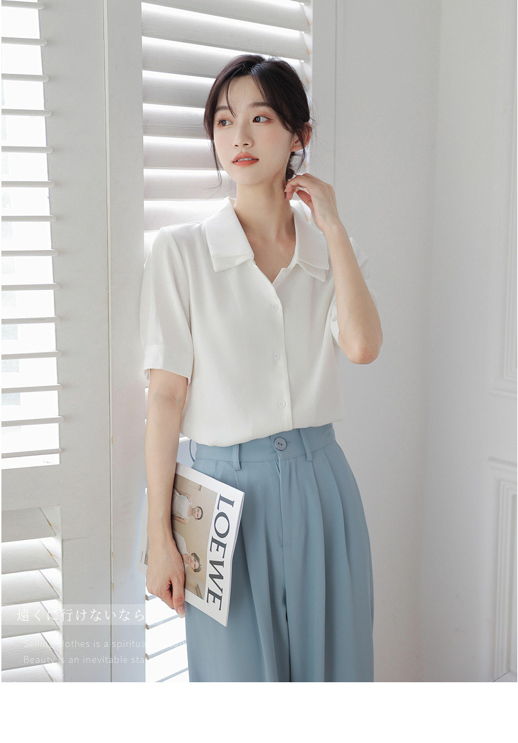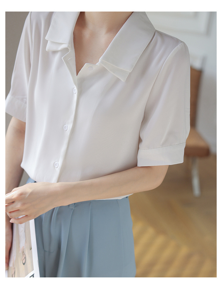 빈티지 라 세련된 우아한 슬림 핏 세련된 셔츠 디자인 틈새 여름 얇은 반팔 쉬폰 셔츠