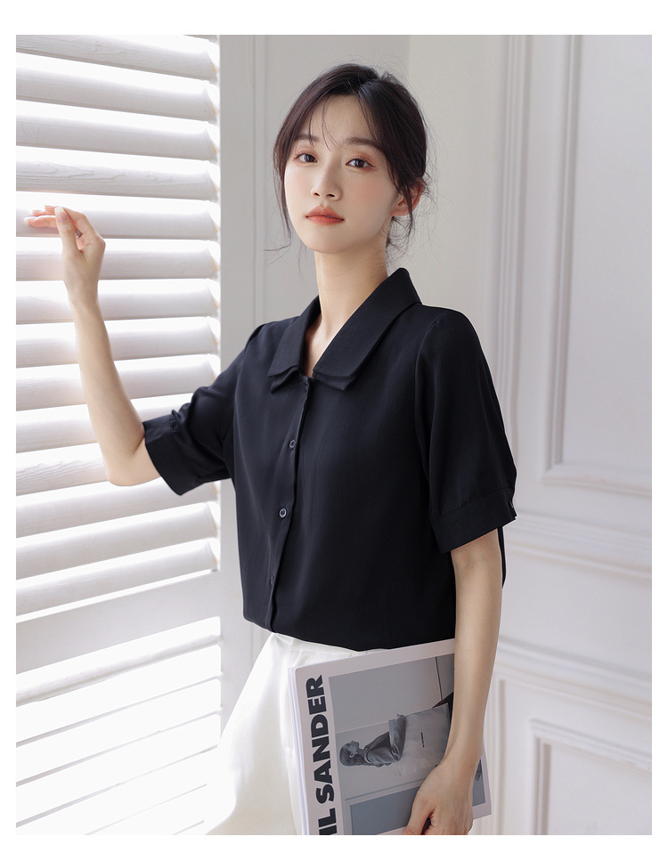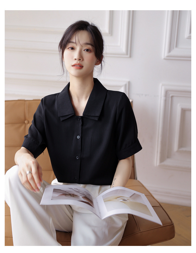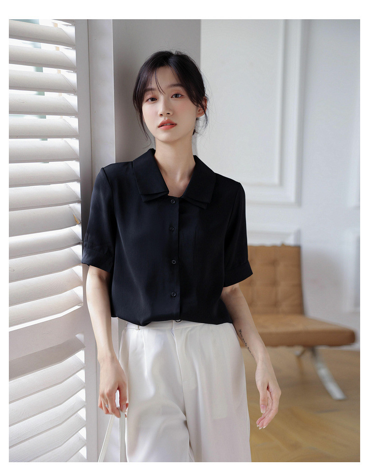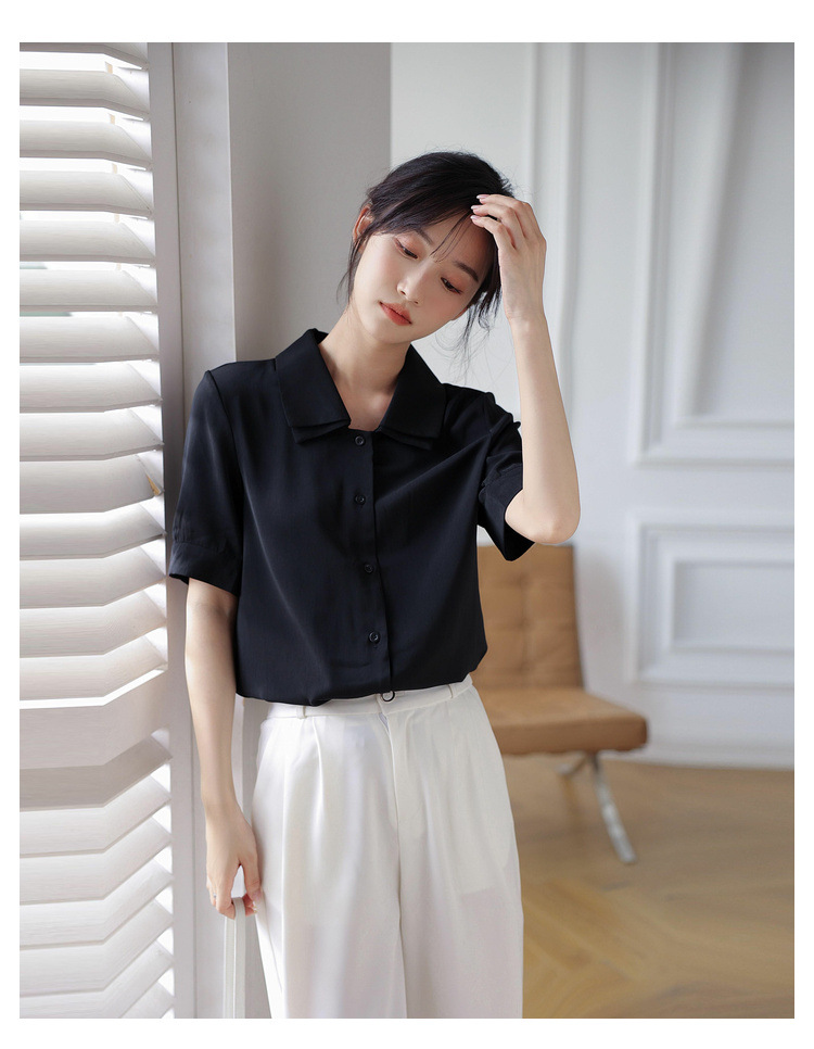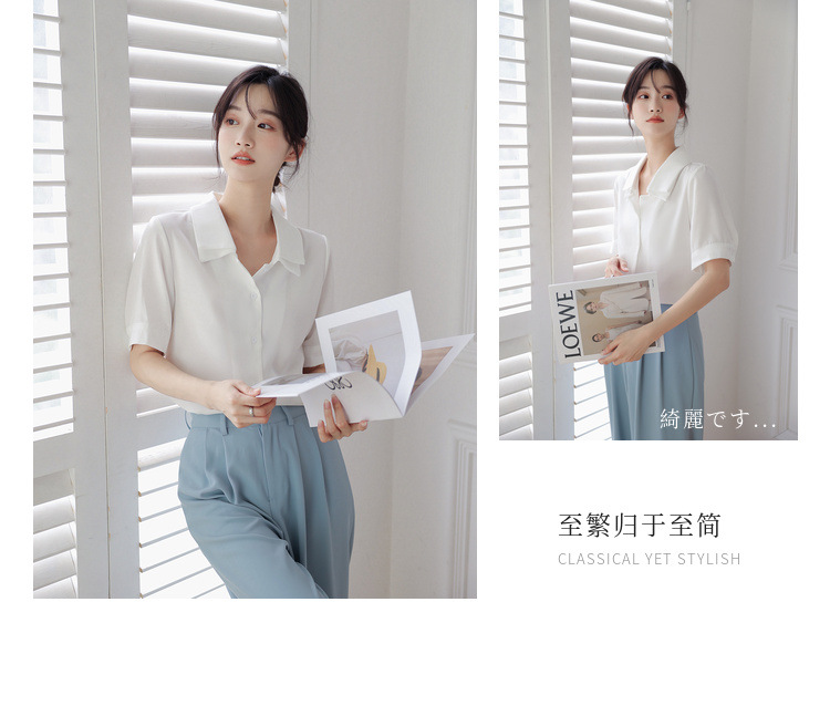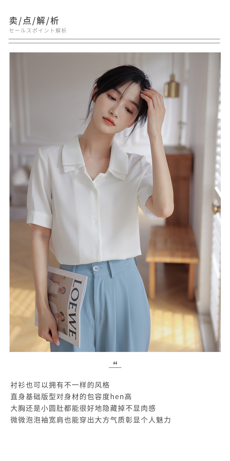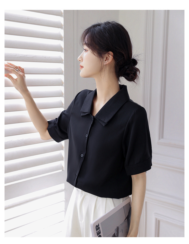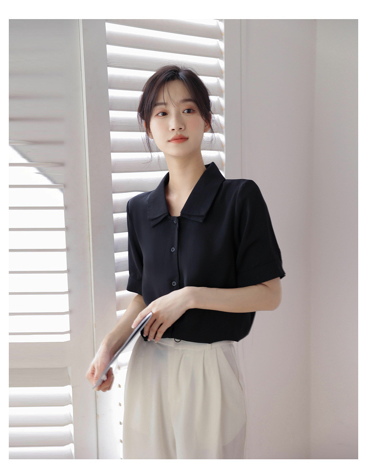 빈티지 라 세련된 우아한 슬림 핏 세련된 셔츠 디자인 틈새 여름 얇은 반팔 쉬폰 셔츠
