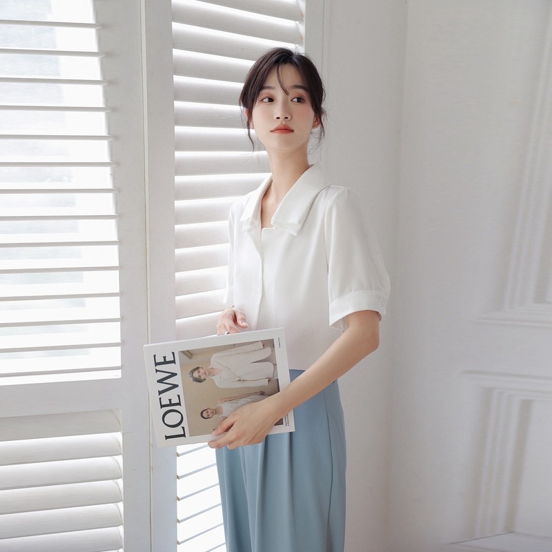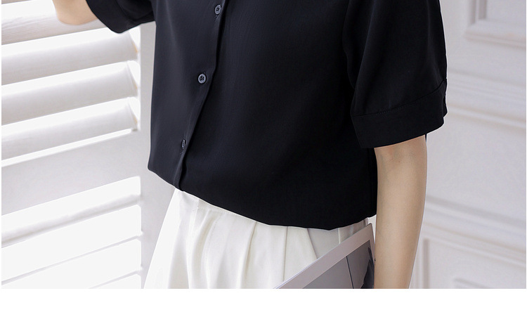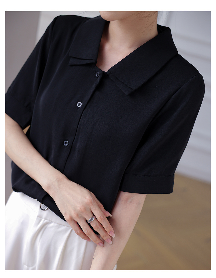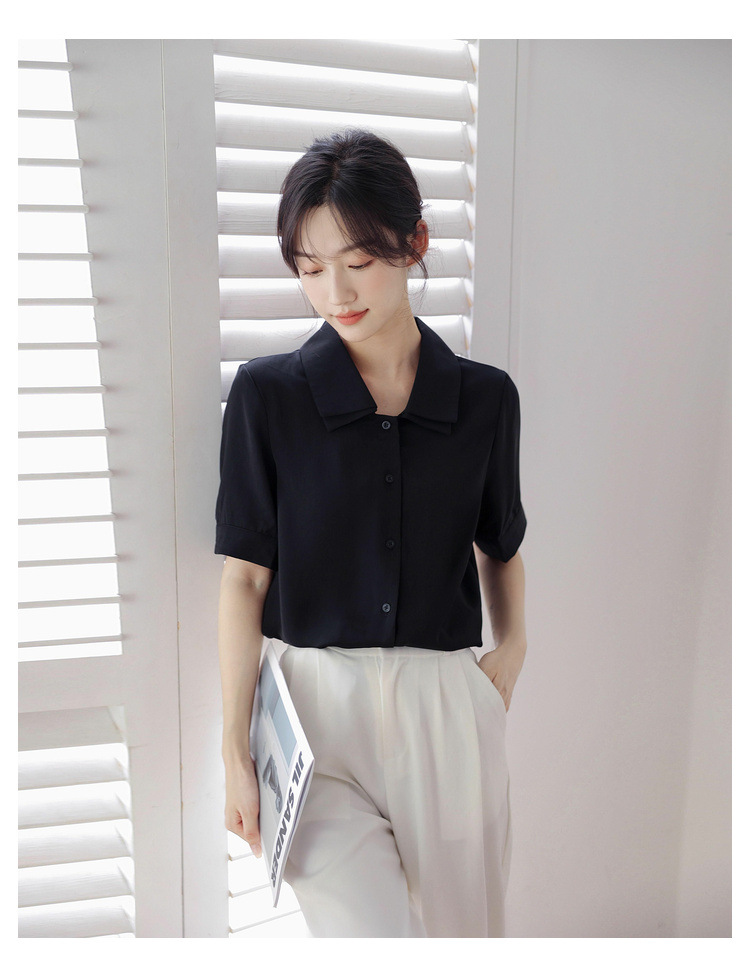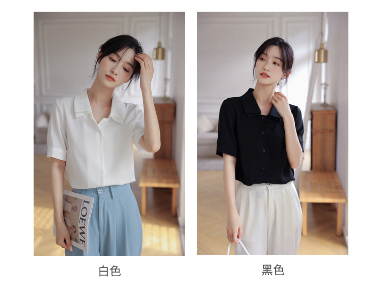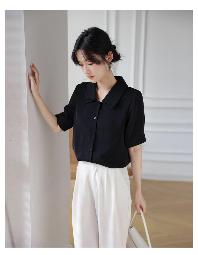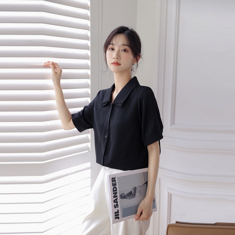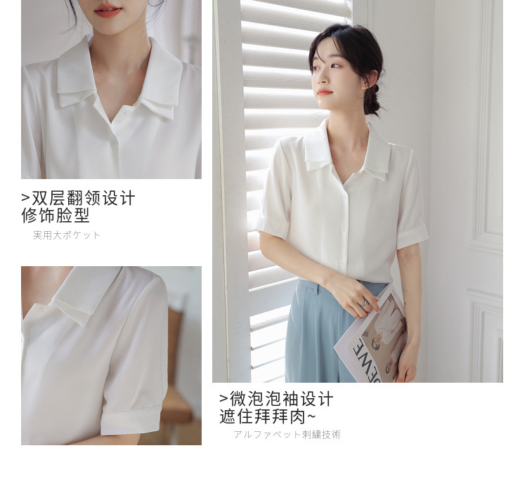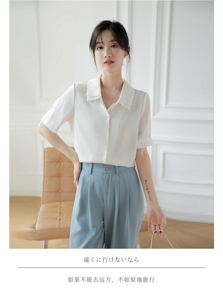 빈티지 라 세련된 우아한 슬림 핏 세련된 셔츠 디자인 틈새 여름 얇은 반팔 쉬폰 셔츠