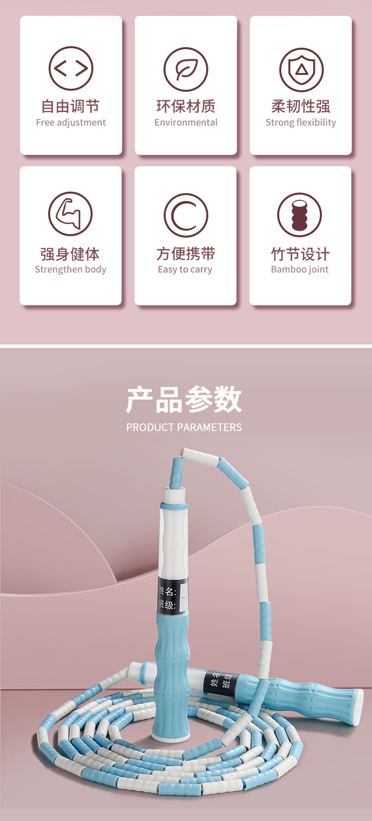새로운 대나무 밧줄 건너 뛰는 도매 어린이 초급 교육 로프 초등학교 스포츠 용품 조절 부드러운 구슬 로프 건너 뛰기