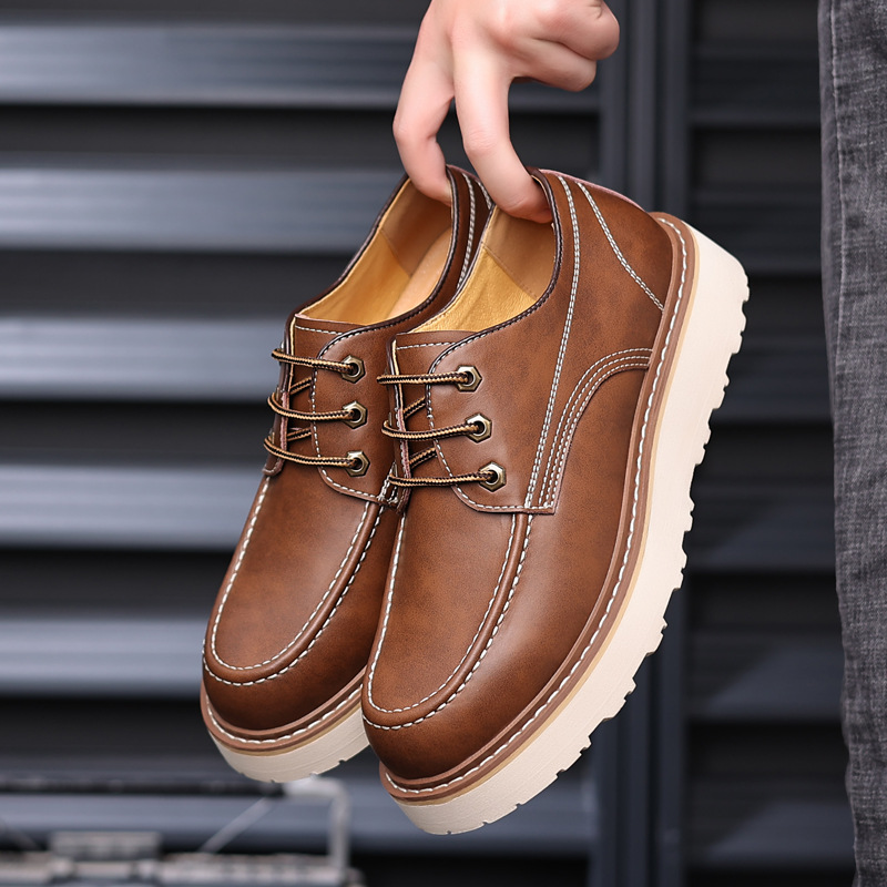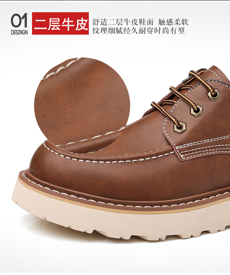 마틴 부츠 봄 2024 새로운 로우 컷 남성 신발 짧은 부츠 야외 툴링 신발 손으로 꿰매는 큰 발가락 가죽 신발