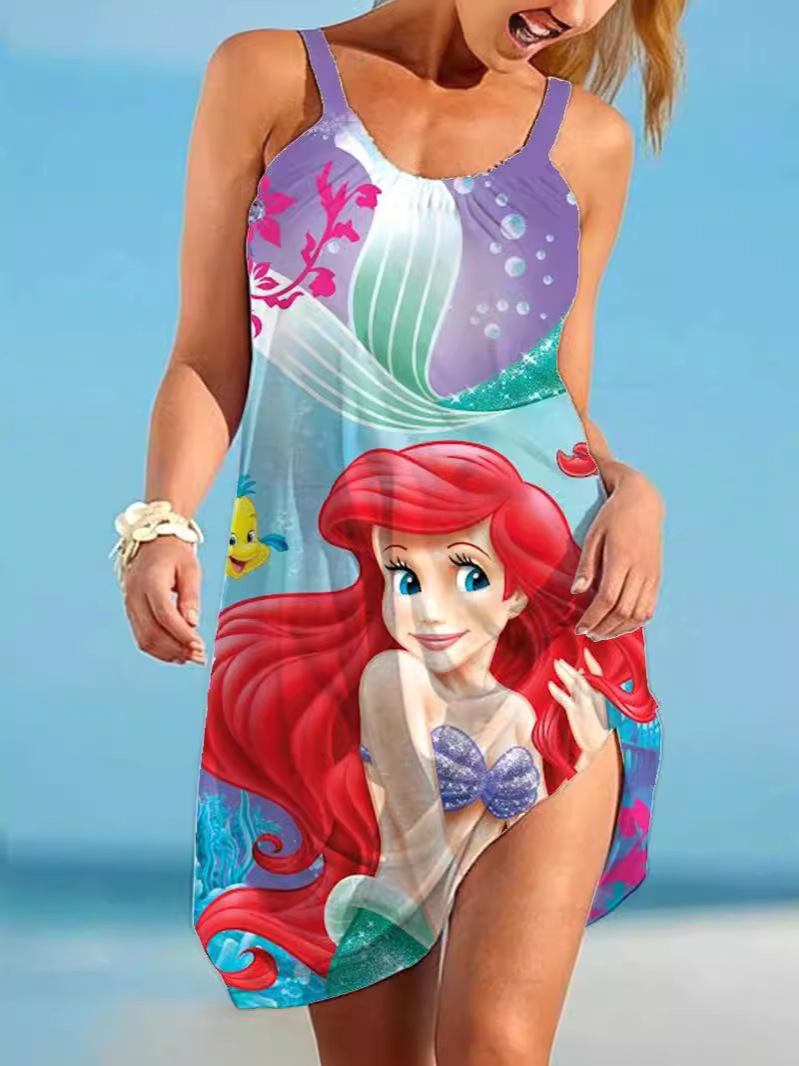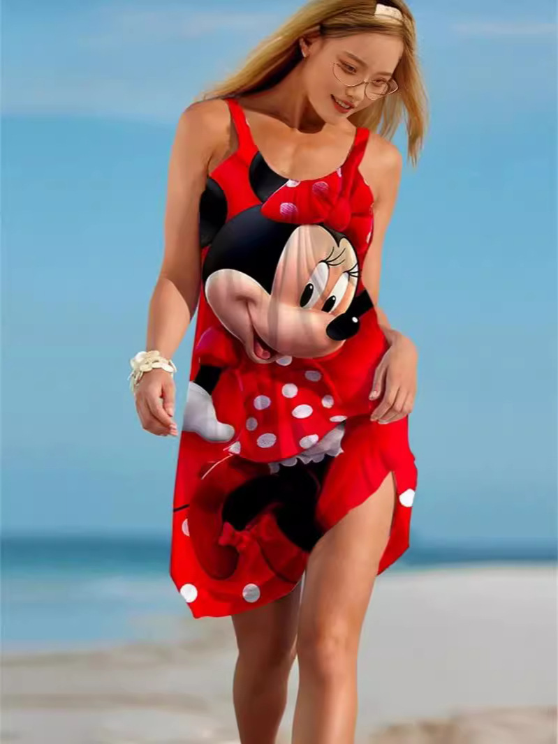 2024 여름 새로운 도시 레저 비치 원피스 슬링 3d 인쇄 원피스 여성 대외 무역 유럽과 미국 국경