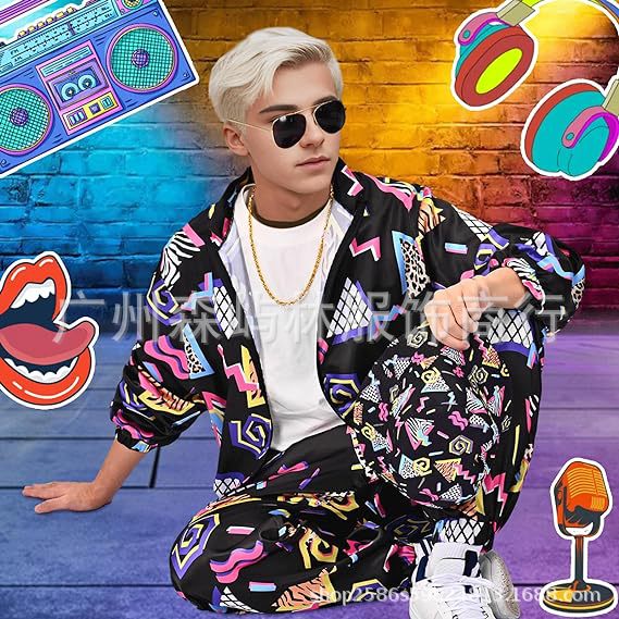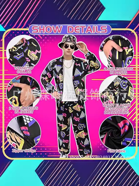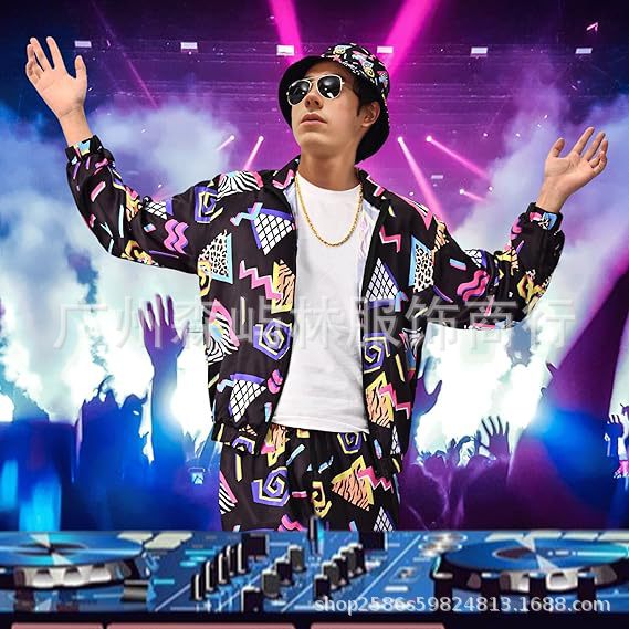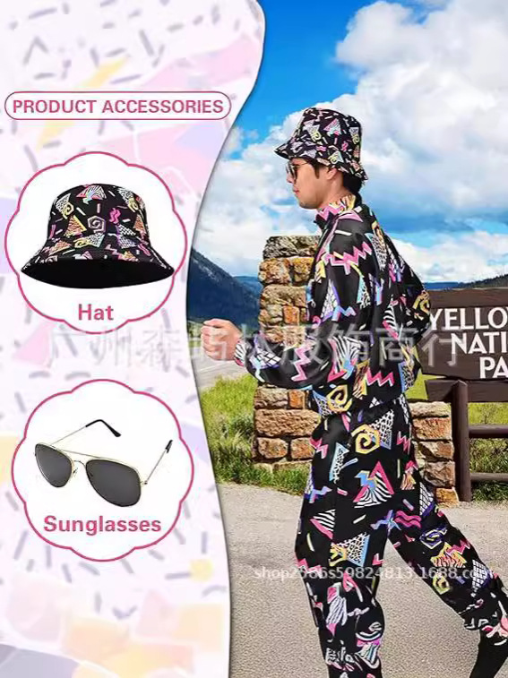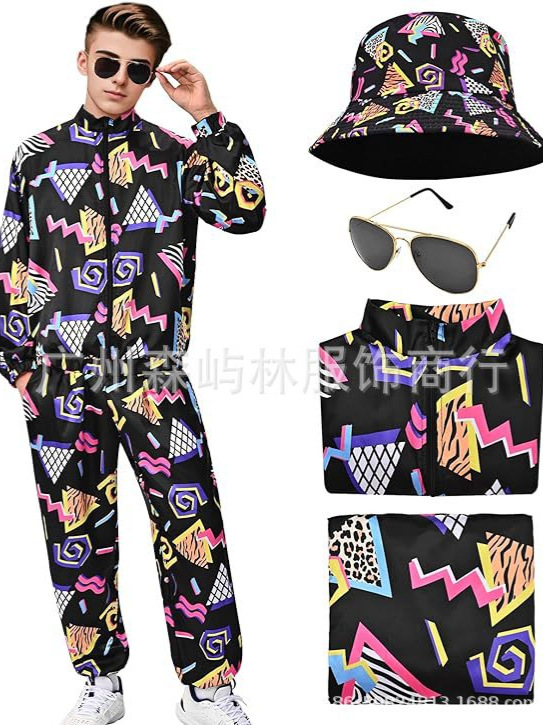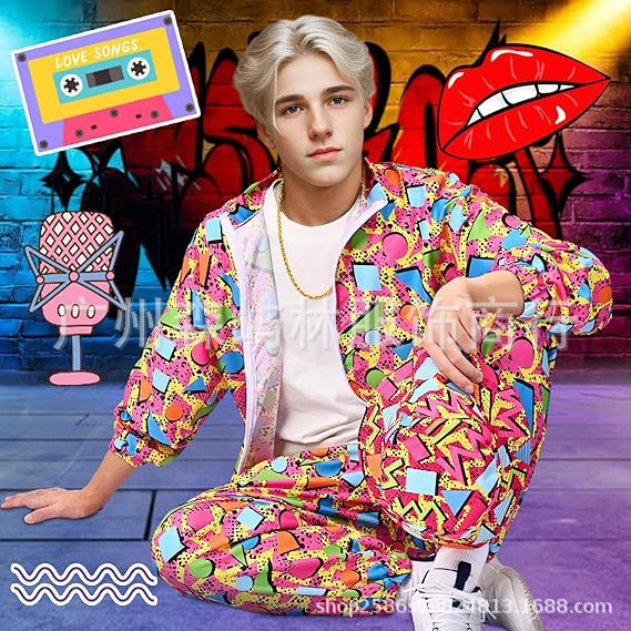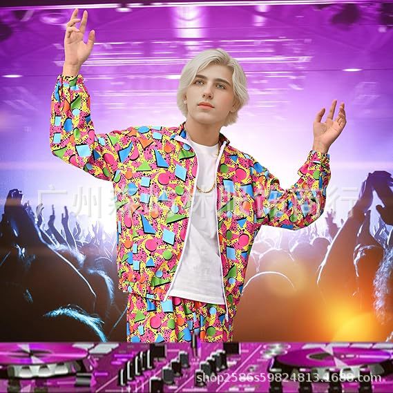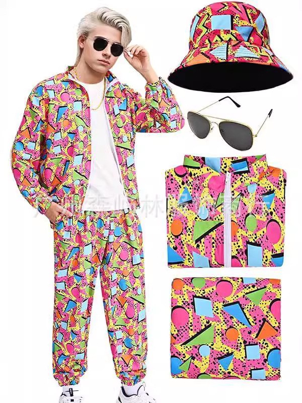 남성 8090 년대 빈티지 세트 판타지 스포츠 세트 빈티지 비치 디스코 파티 의상