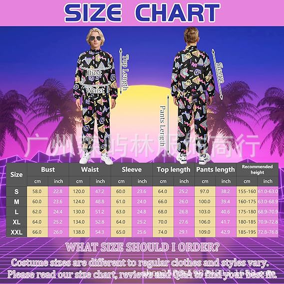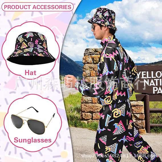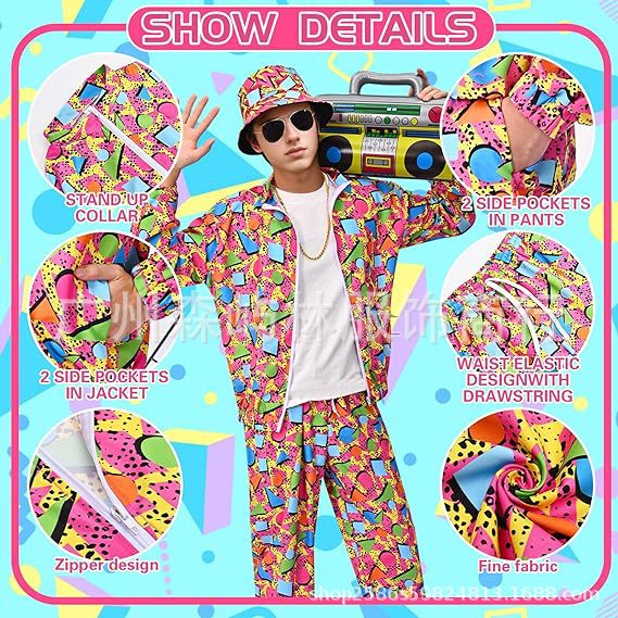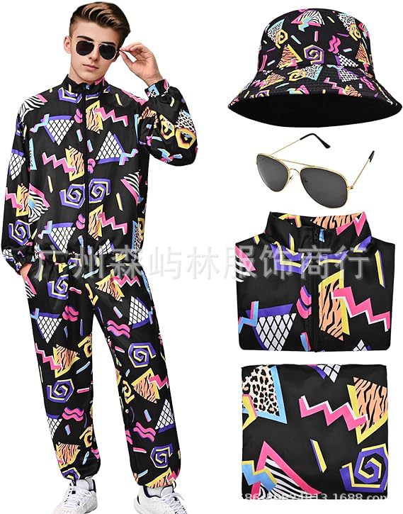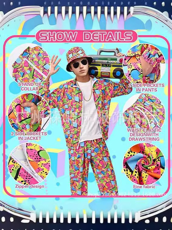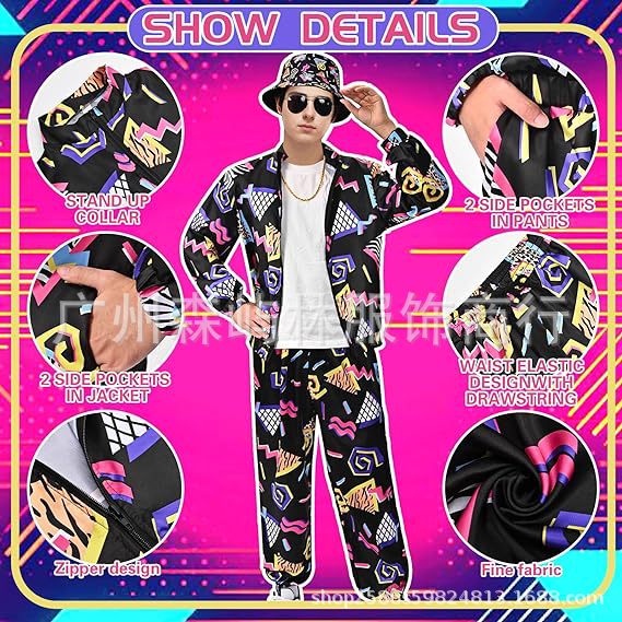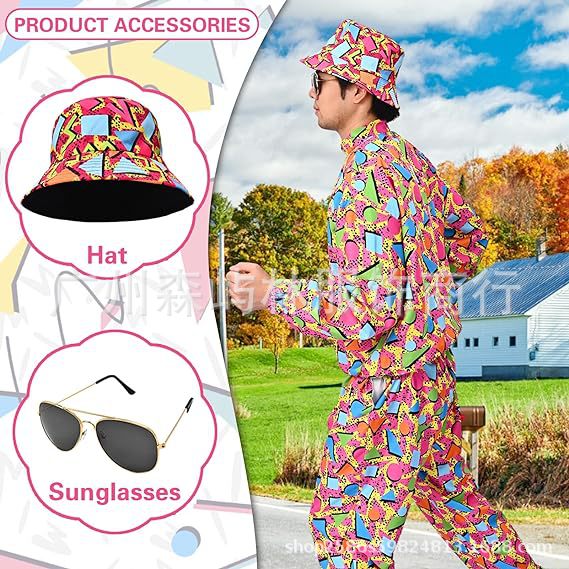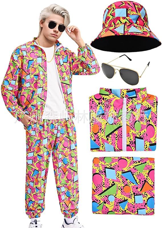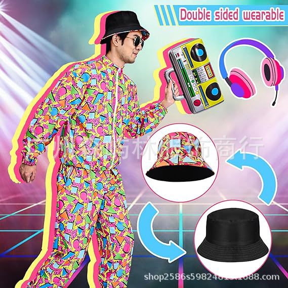 남성 8090 년대 빈티지 세트 판타지 스포츠 세트 빈티지 비치 디스코 파티 의상