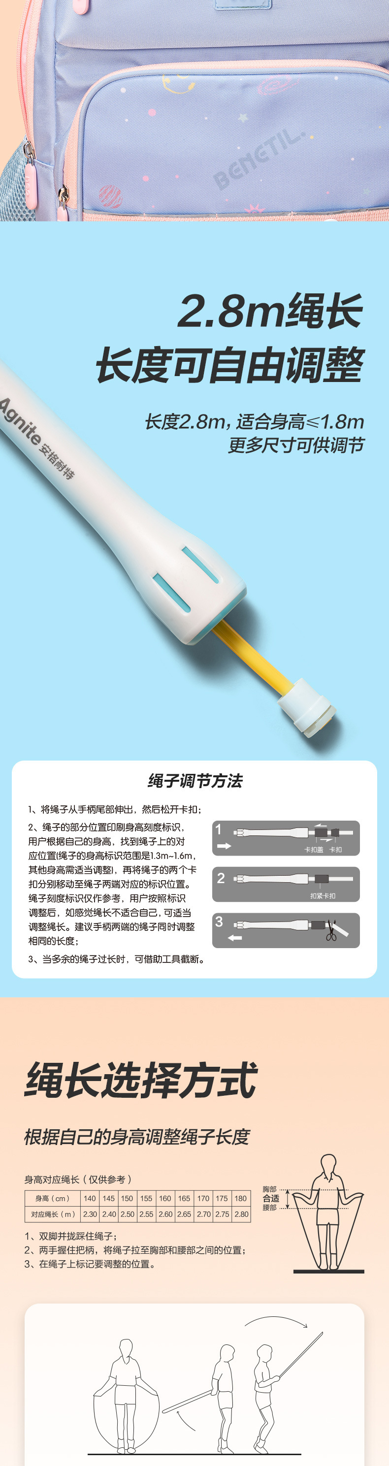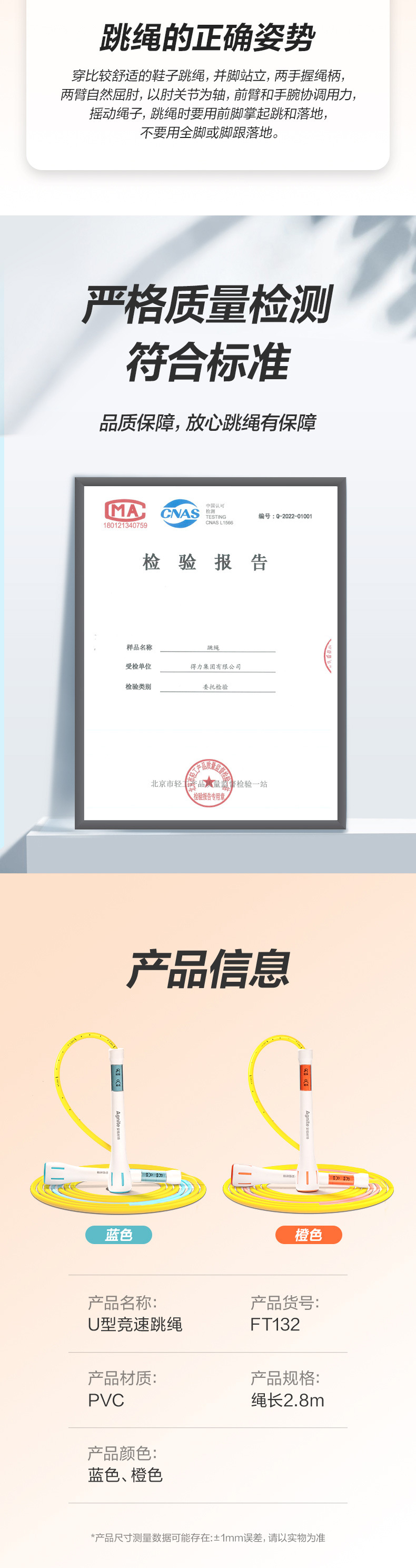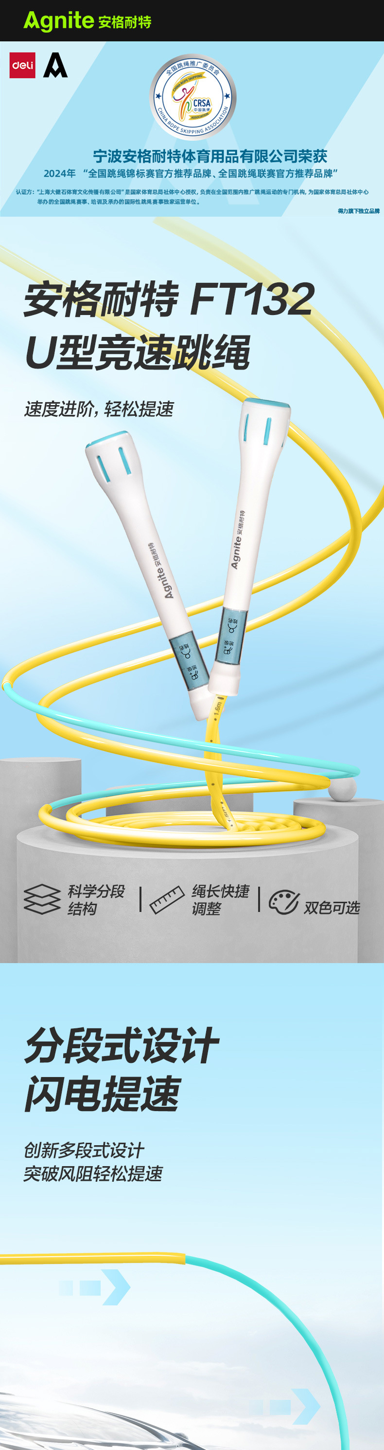 Deli Anguette FT132_U 레이싱 로프 건너 뛰기 길이 조정 가능한 신체 훈련 체중 감량 로프 건너 뛰기