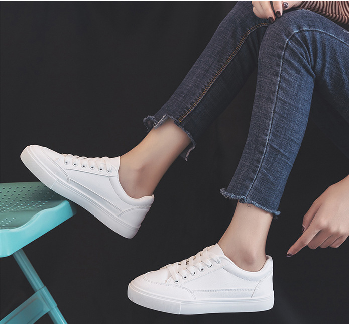 인기있는 흰색 신발 2024 여성 미끄럼 방지 두꺼운 밑창 흰색 신발 유행 간단한 여성 둥근 발가락 새로운 다목적 두꺼운 밑창 캠퍼스 스타일
