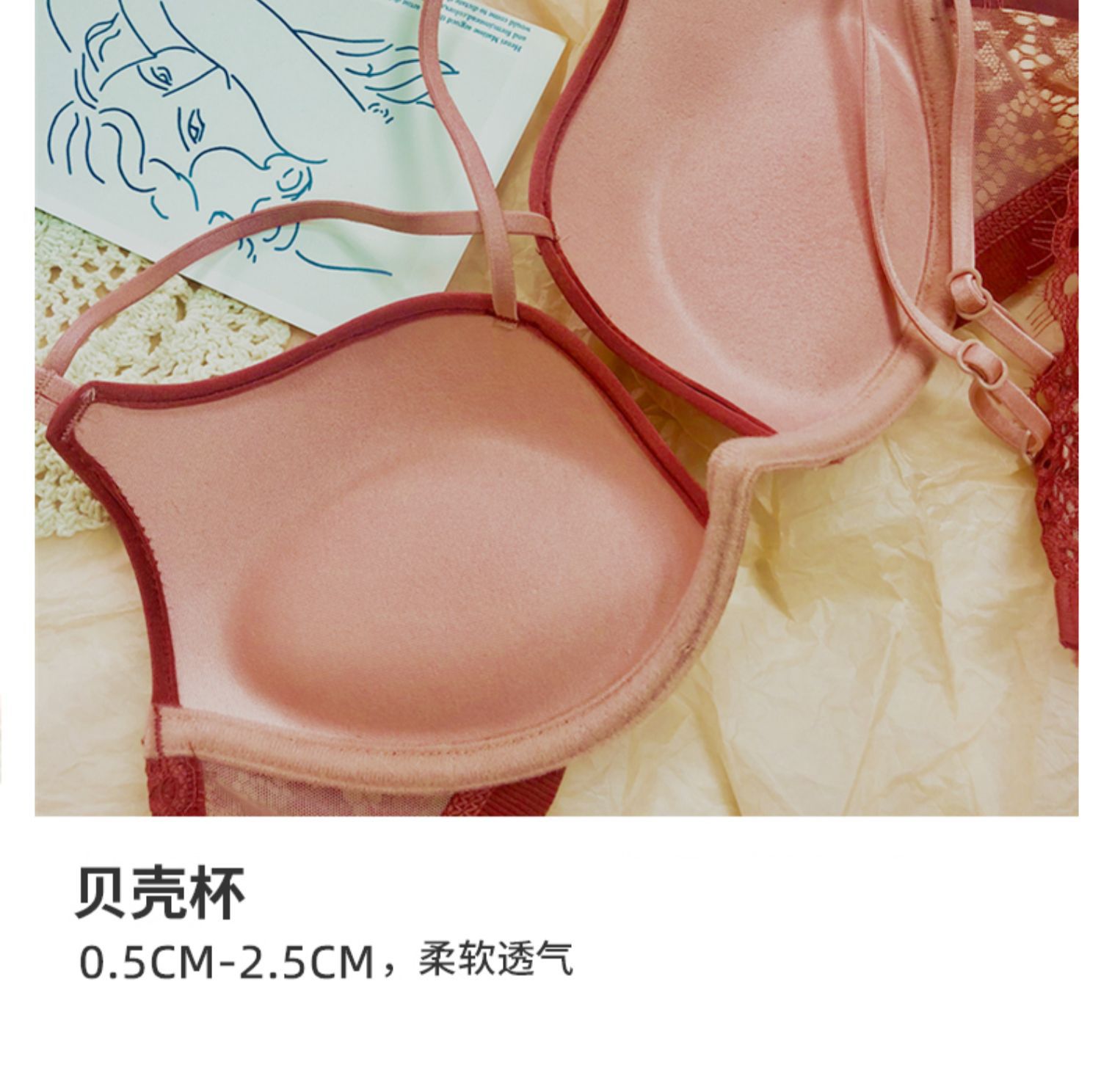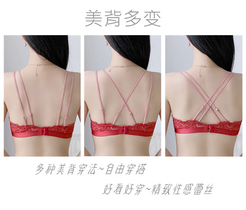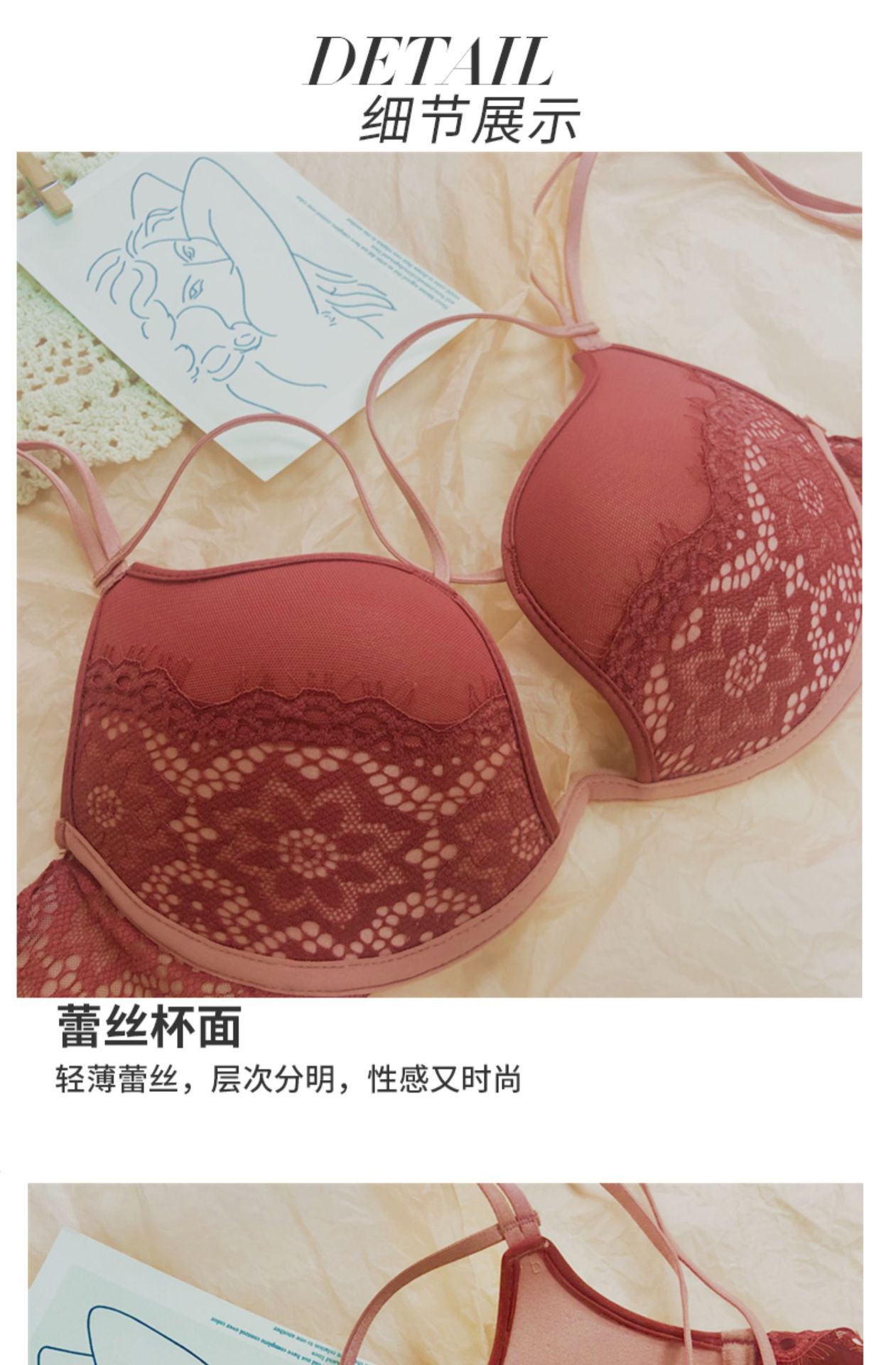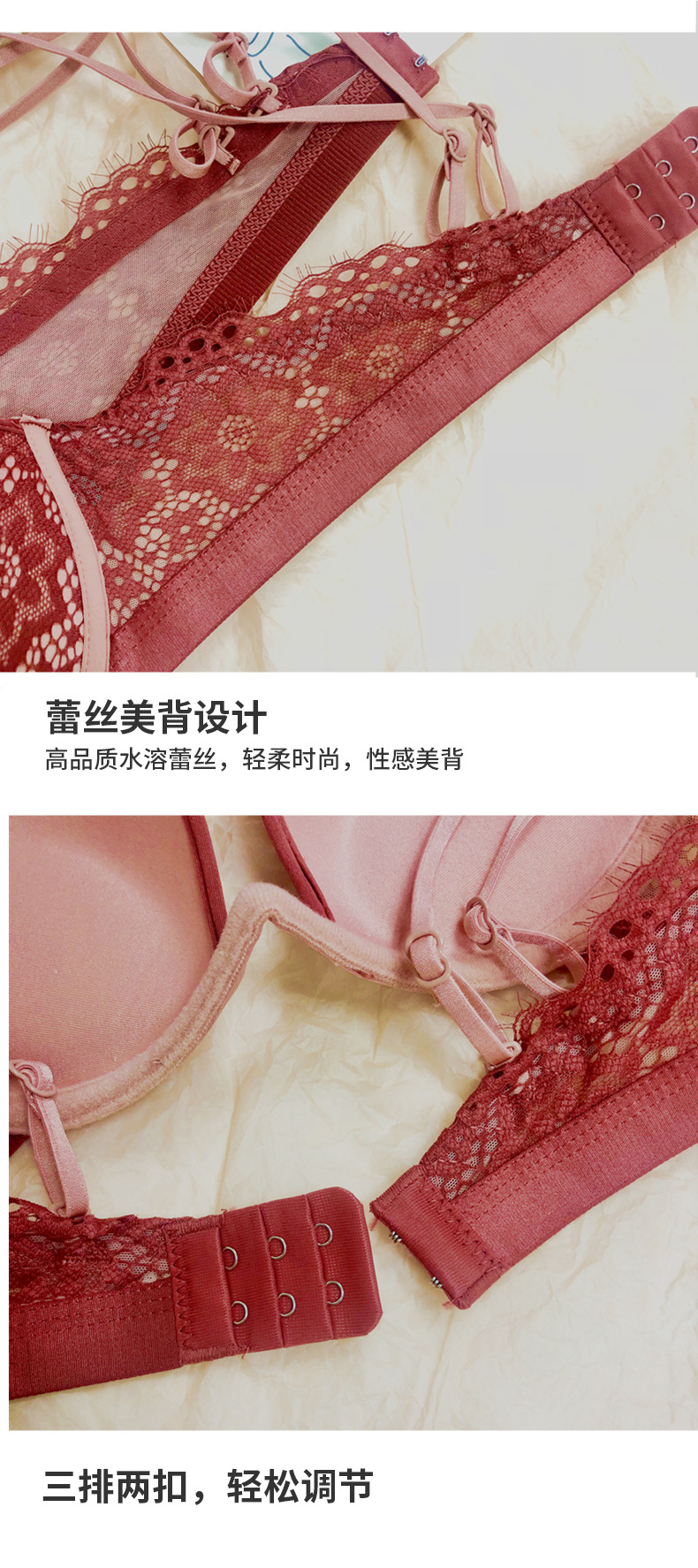 内衣女少女红色性感美背文胸聚拢上托防下垂甜美蕾丝内衣套装