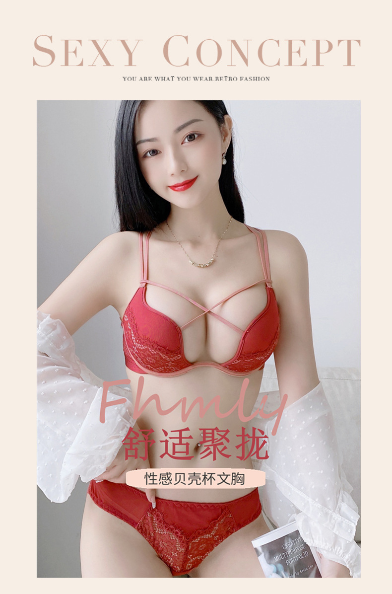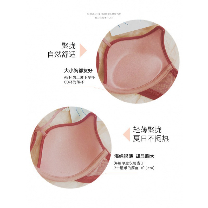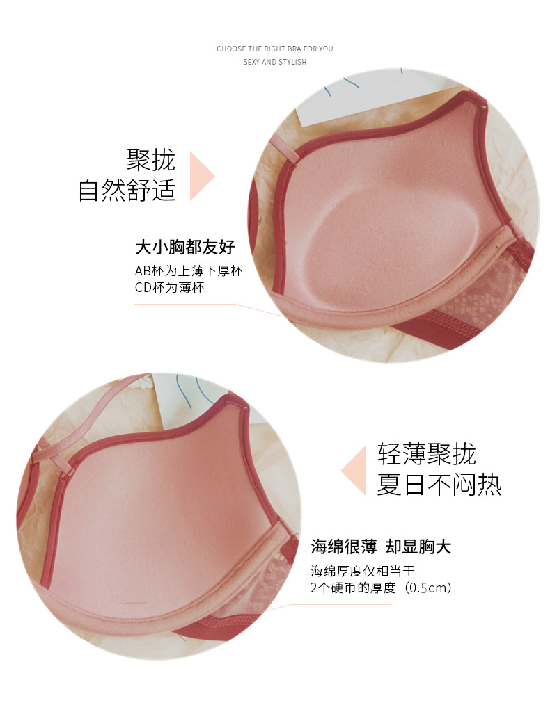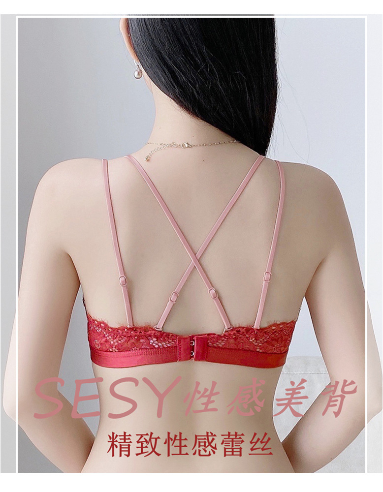 内衣女少女红色性感美背文胸聚拢上托防下垂甜美蕾丝内衣套装