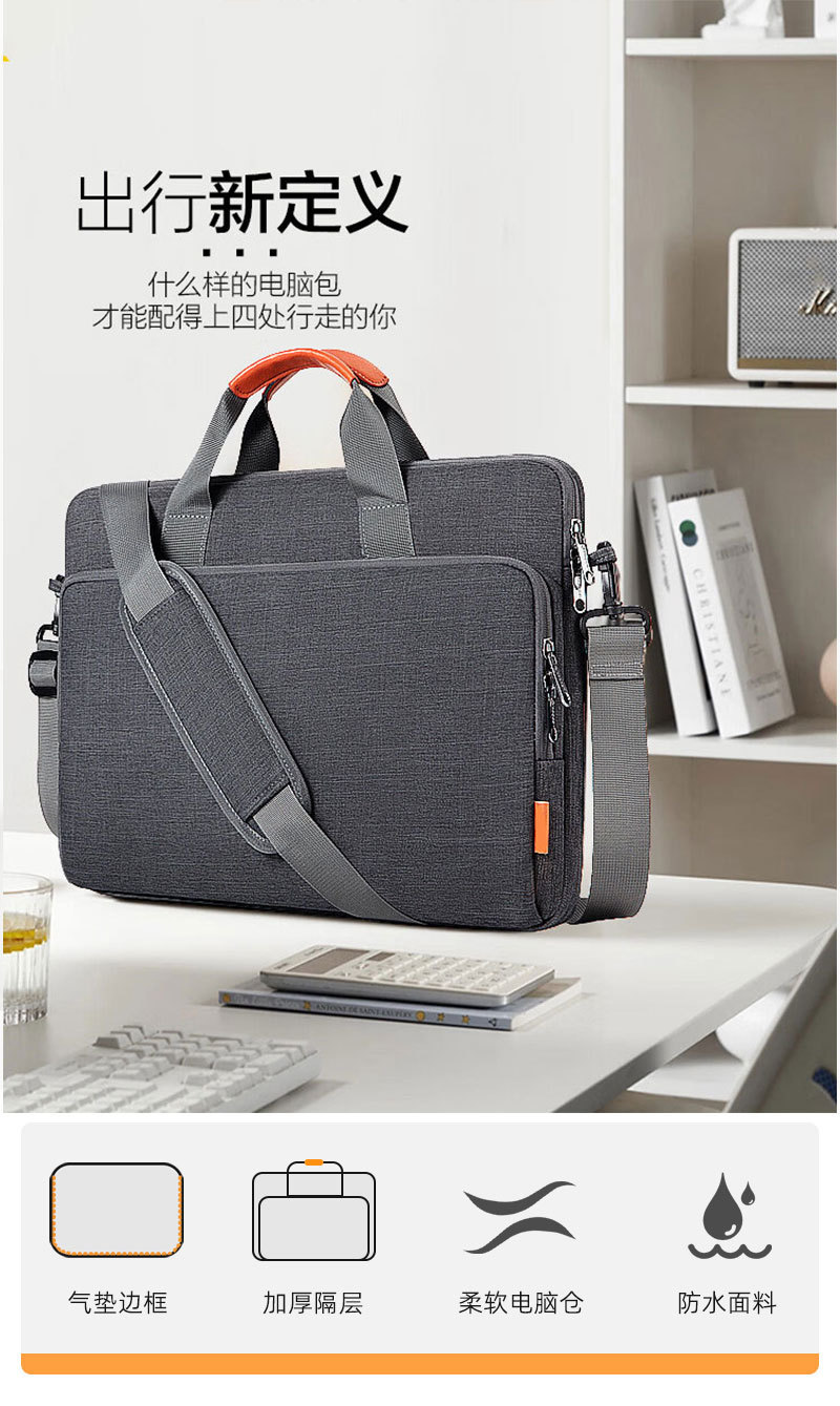 비즈니스 숄더형 노트북 가방, 고급스러운 느낌, 14.7inch 낙하 방지 및 충격 방지 에어백 컴퓨터 내장 가방