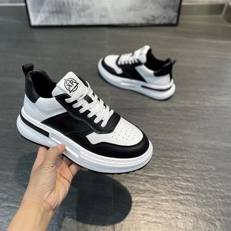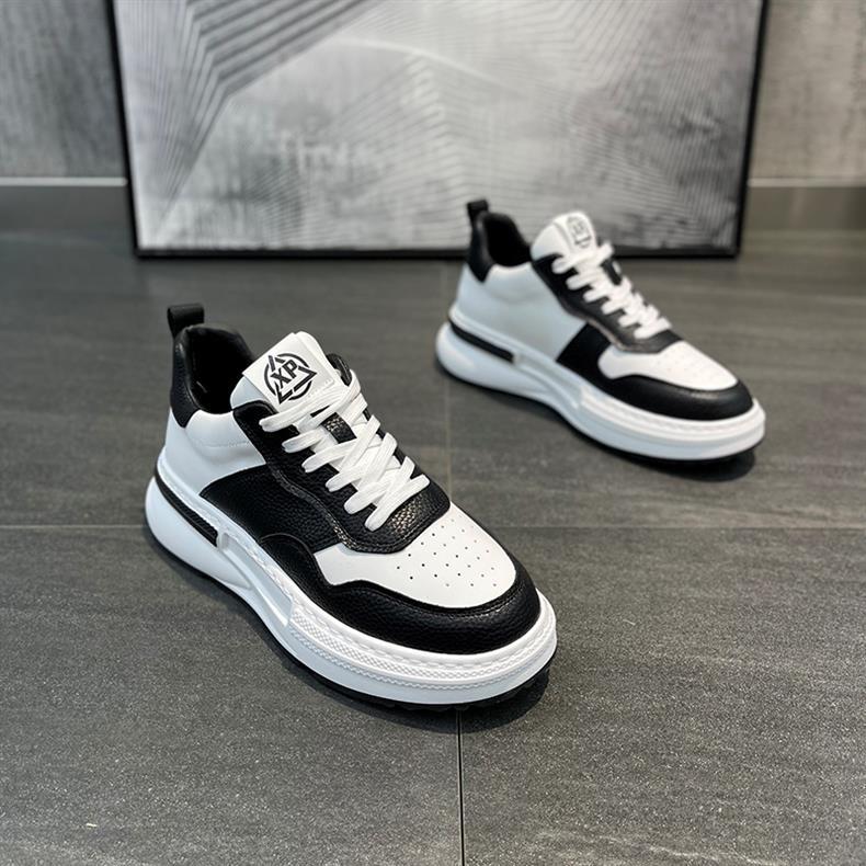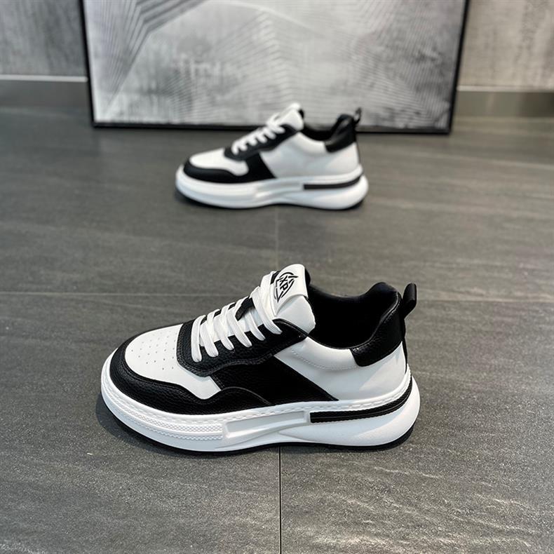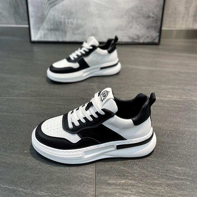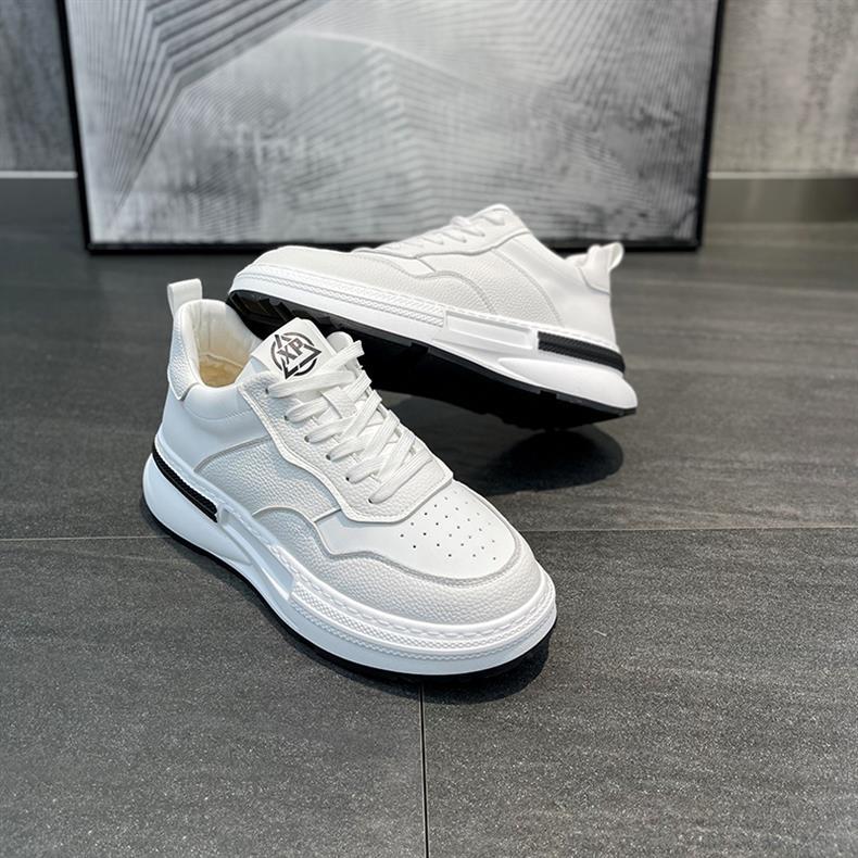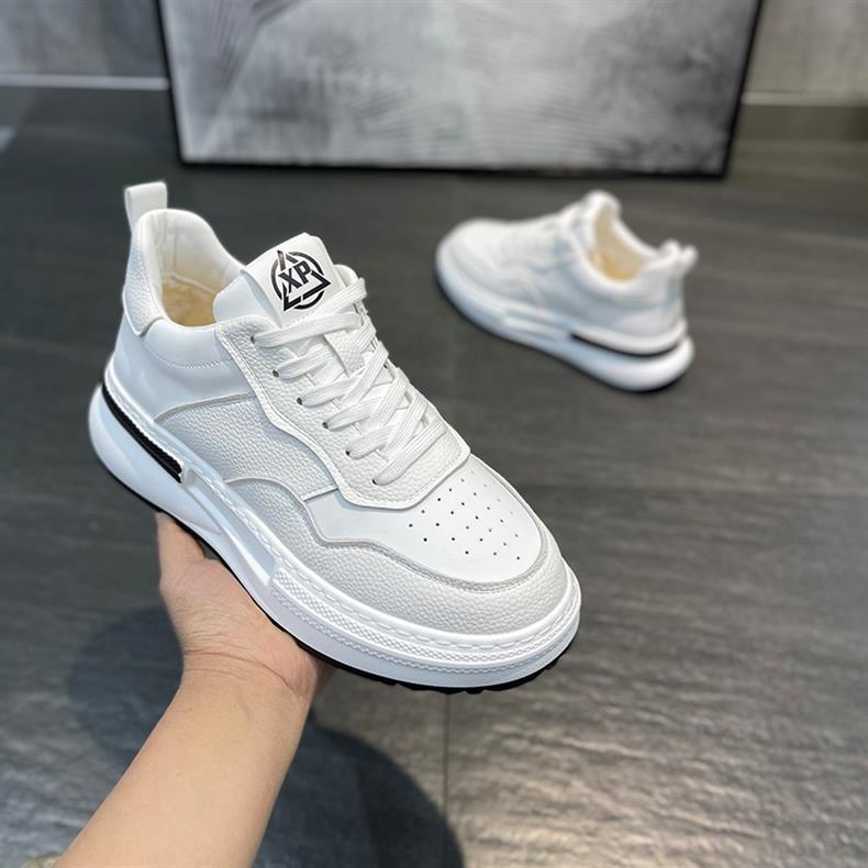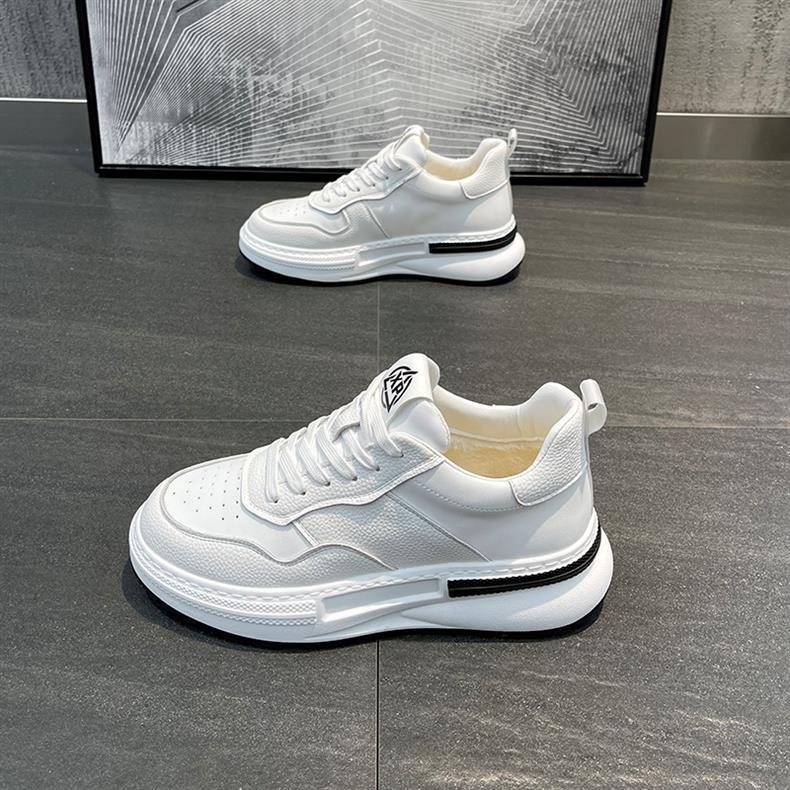 2024 봄 신상 가죽 경량 운동화 두꺼운 밑창 다용도 남성 신발 남성 편안한 흰색 신발 캐주얼 신발 qs