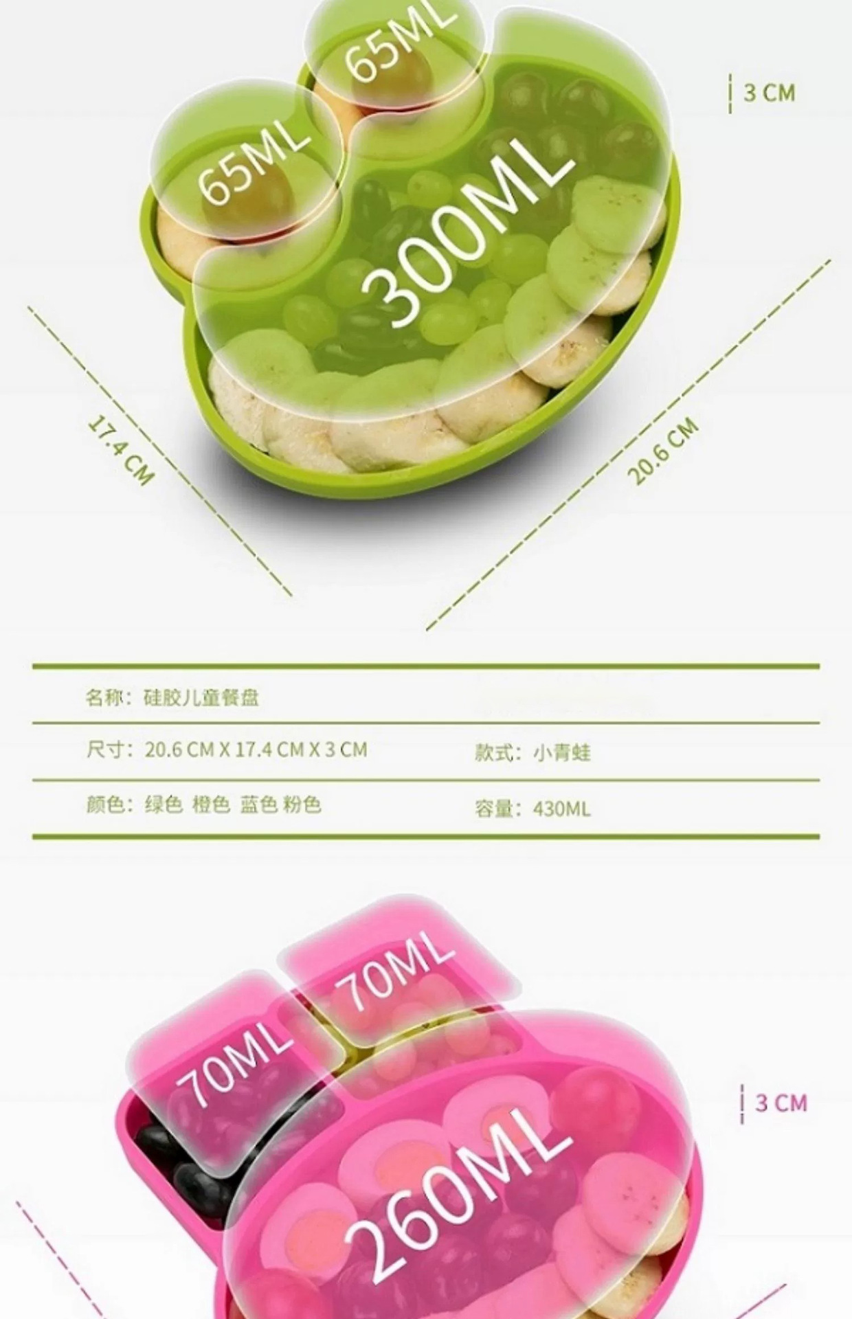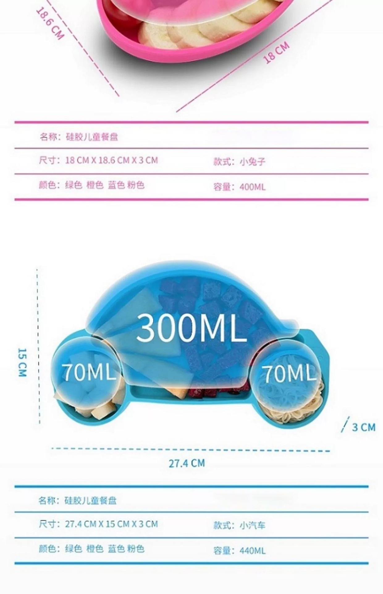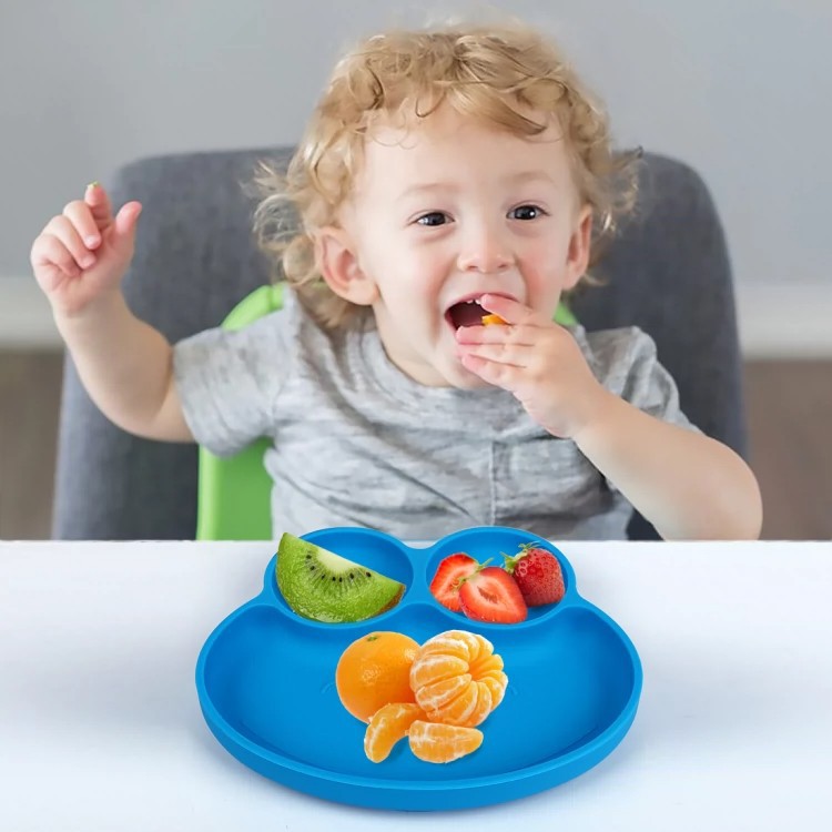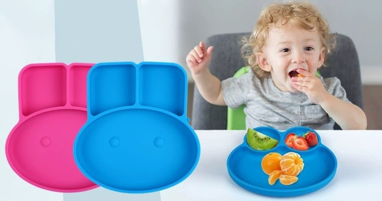 어린이 실리콘 분할 디너 플레이트 식품 학년 만화 음식 그릇 훈련 아기는 별도의 식기를 먹습니다.