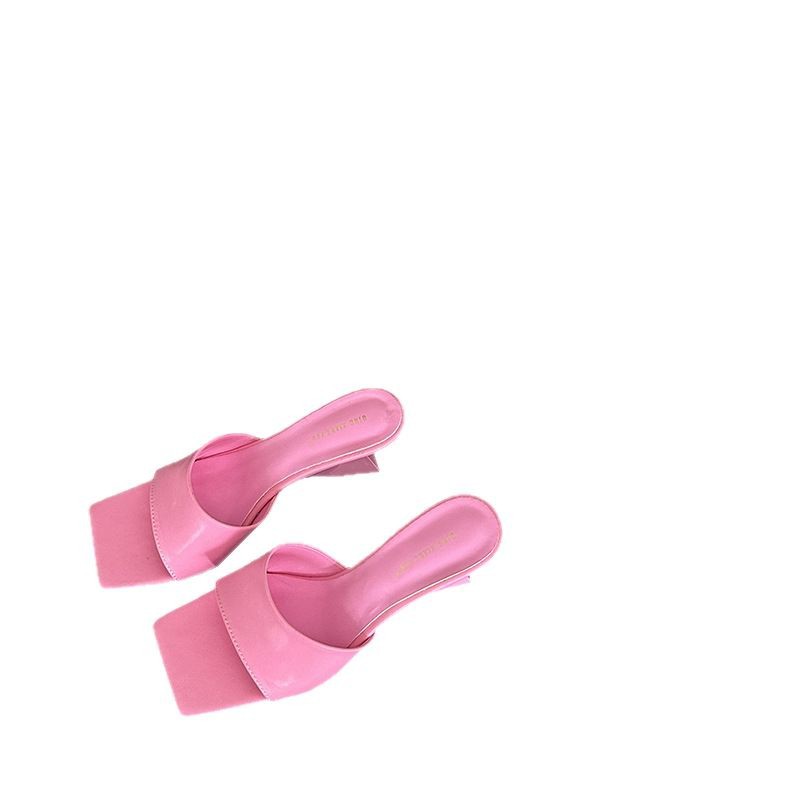 여성용 페어리 스타일 스퀘어토 오픈토 하이힐 슬리퍼 2026 여름 웨지힐 원스트랩 핑크 하이힐 샌들 슬리퍼