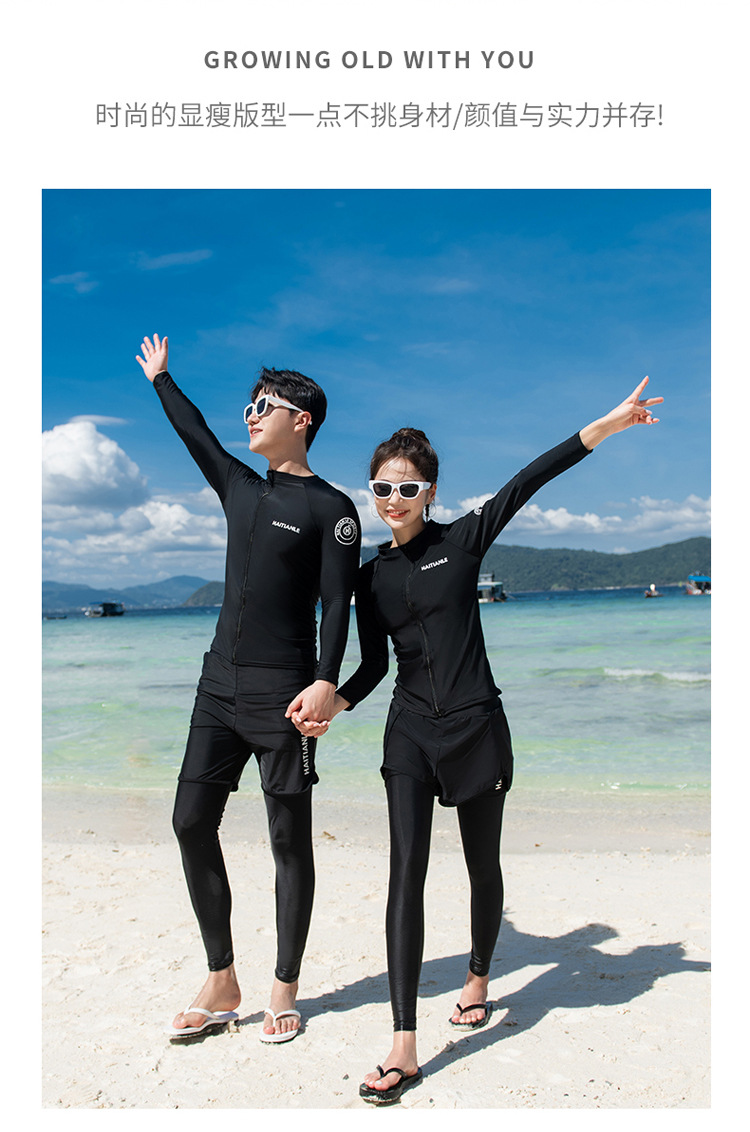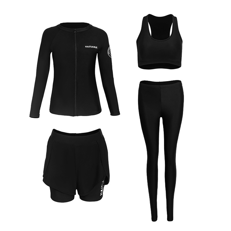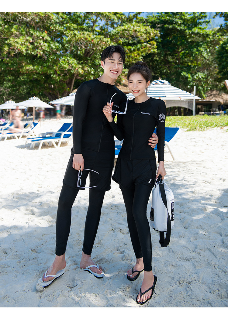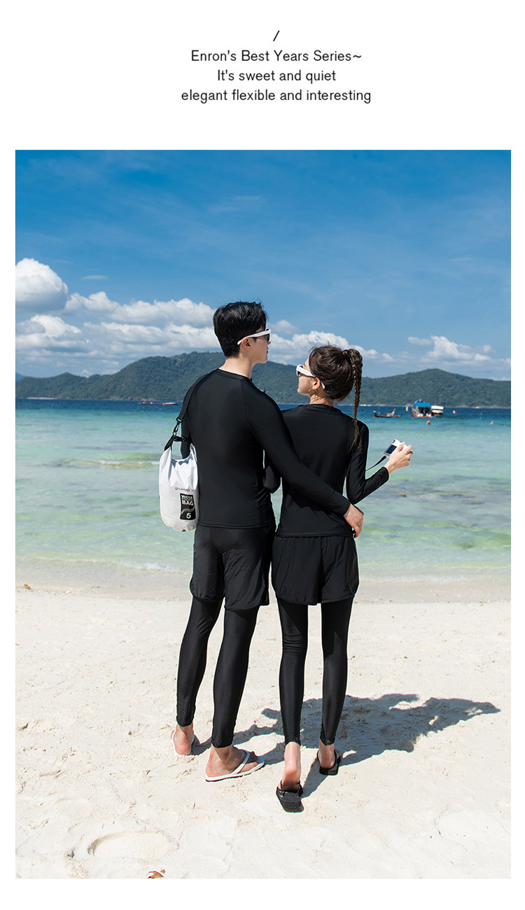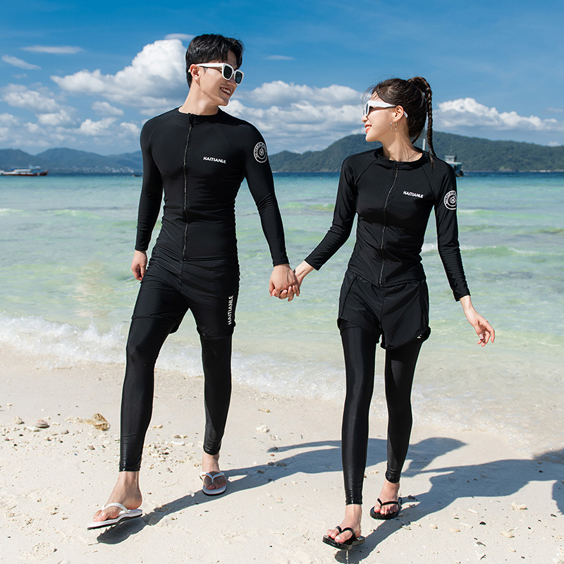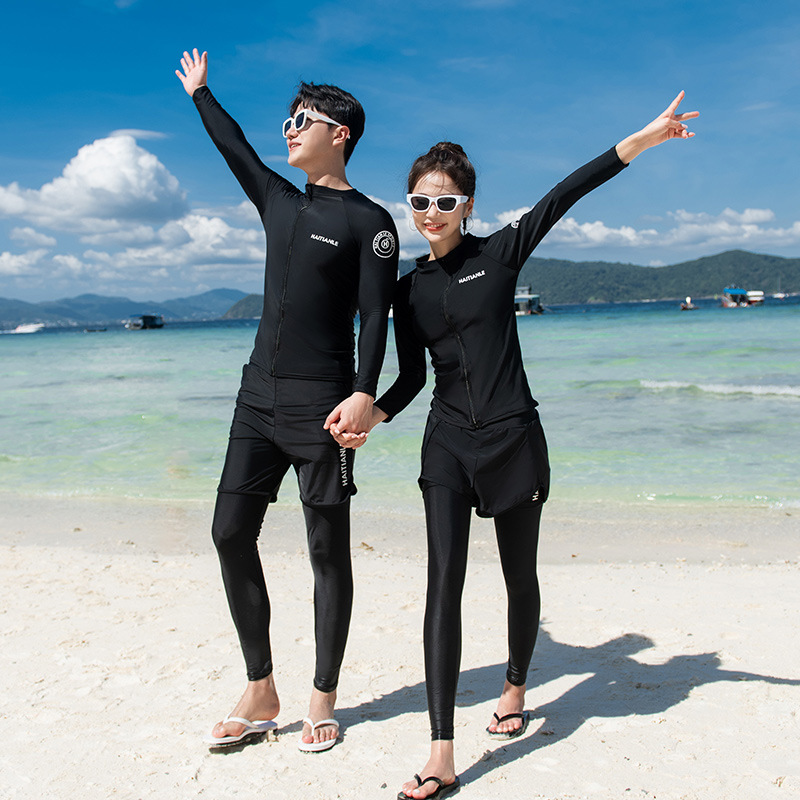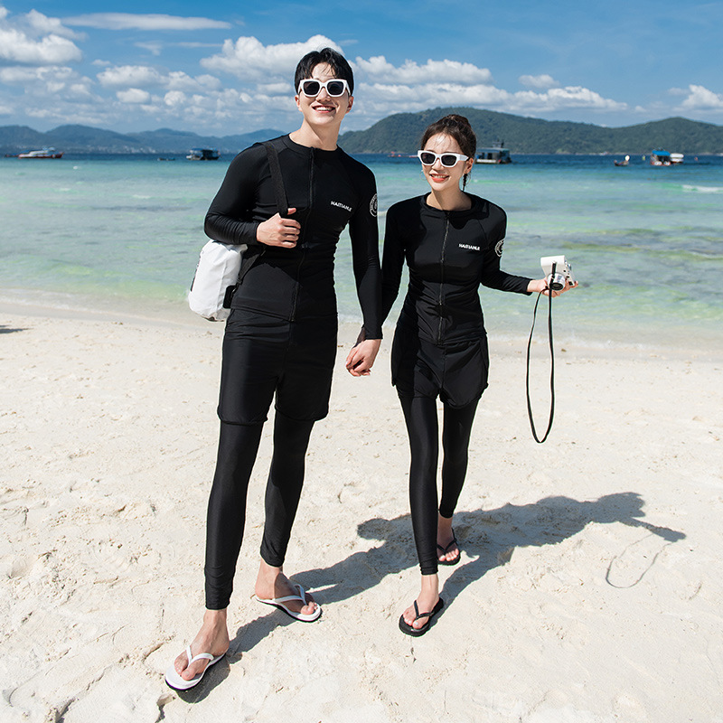 남녀 수영복 세대는 긴 소매 바지를 단색 보수적 인 다이빙 세트 서핑 해변으로 세트